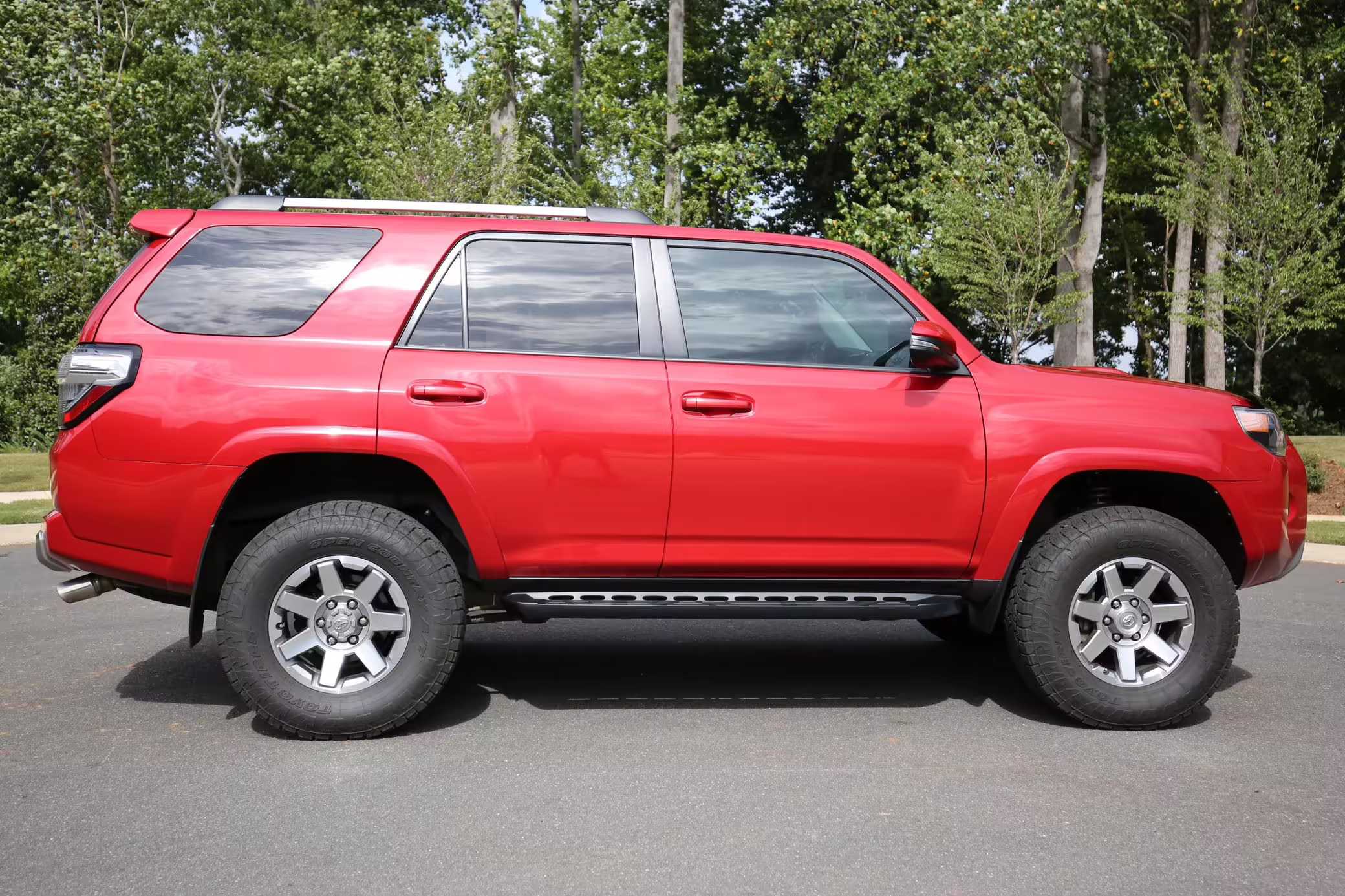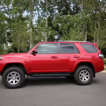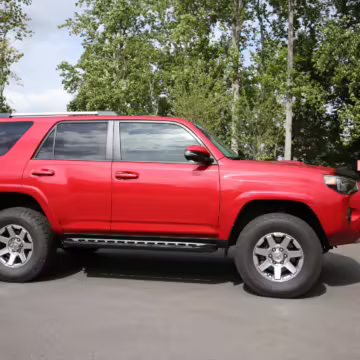 This one touts a gorgeous color called Barcelona Red – and it boasts Toyota’s great Kinetic Dynamic Suspension System, which makes it even more capable on the trail.