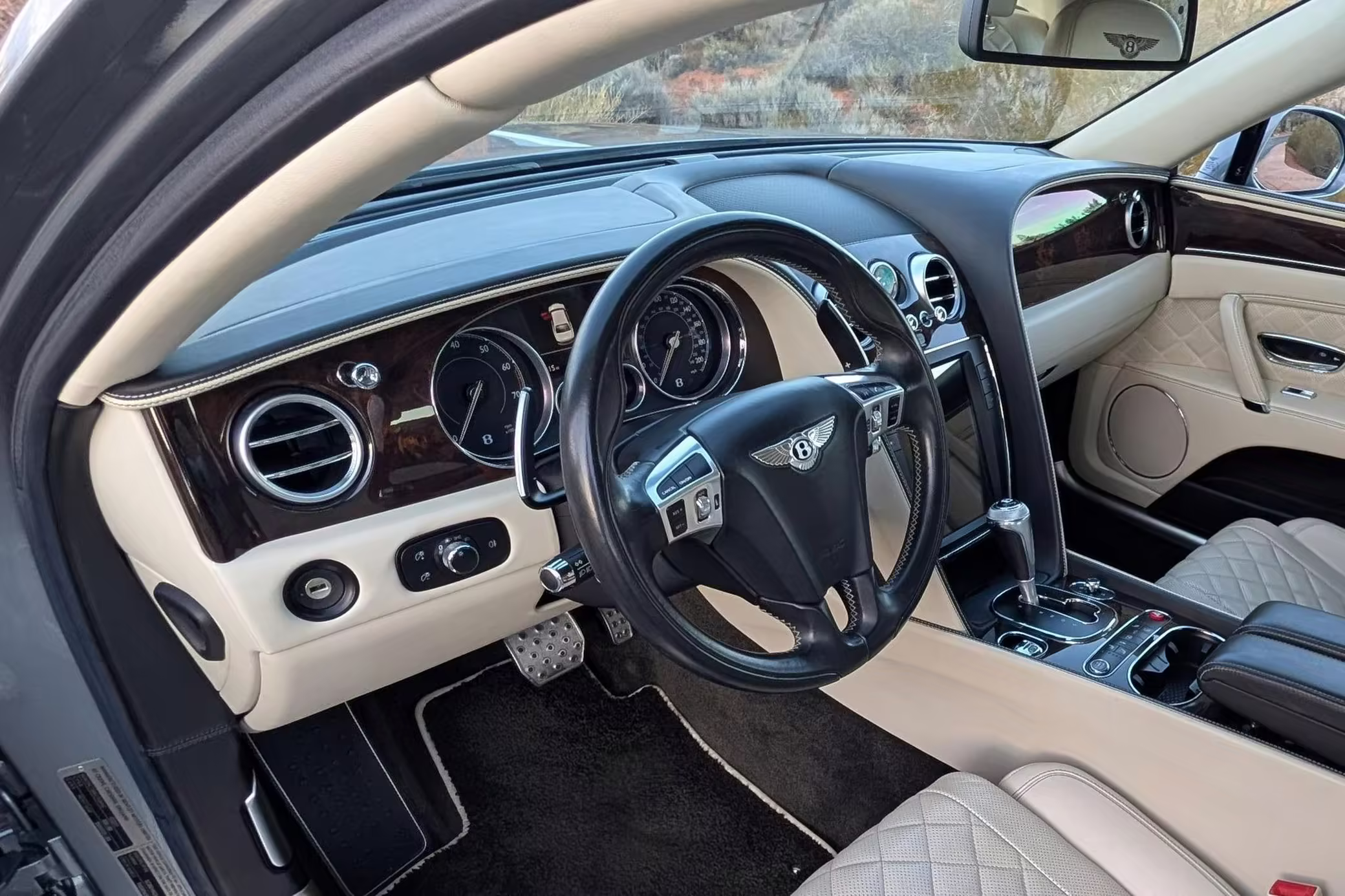 The second-generation Bentley Flying Spur is an amazing luxury sedan that offers elegant styling, a plush interior, and – in this case – a potent twin-turbocharged V8. This particular example is finished in an attractive color combination, and it’s well-equipped with the Mulliner Driving Specification, air suspension, heated and ventilated front seats, and heated rear seats.