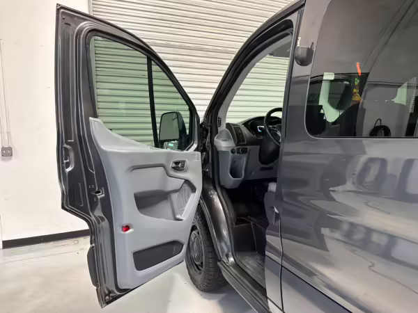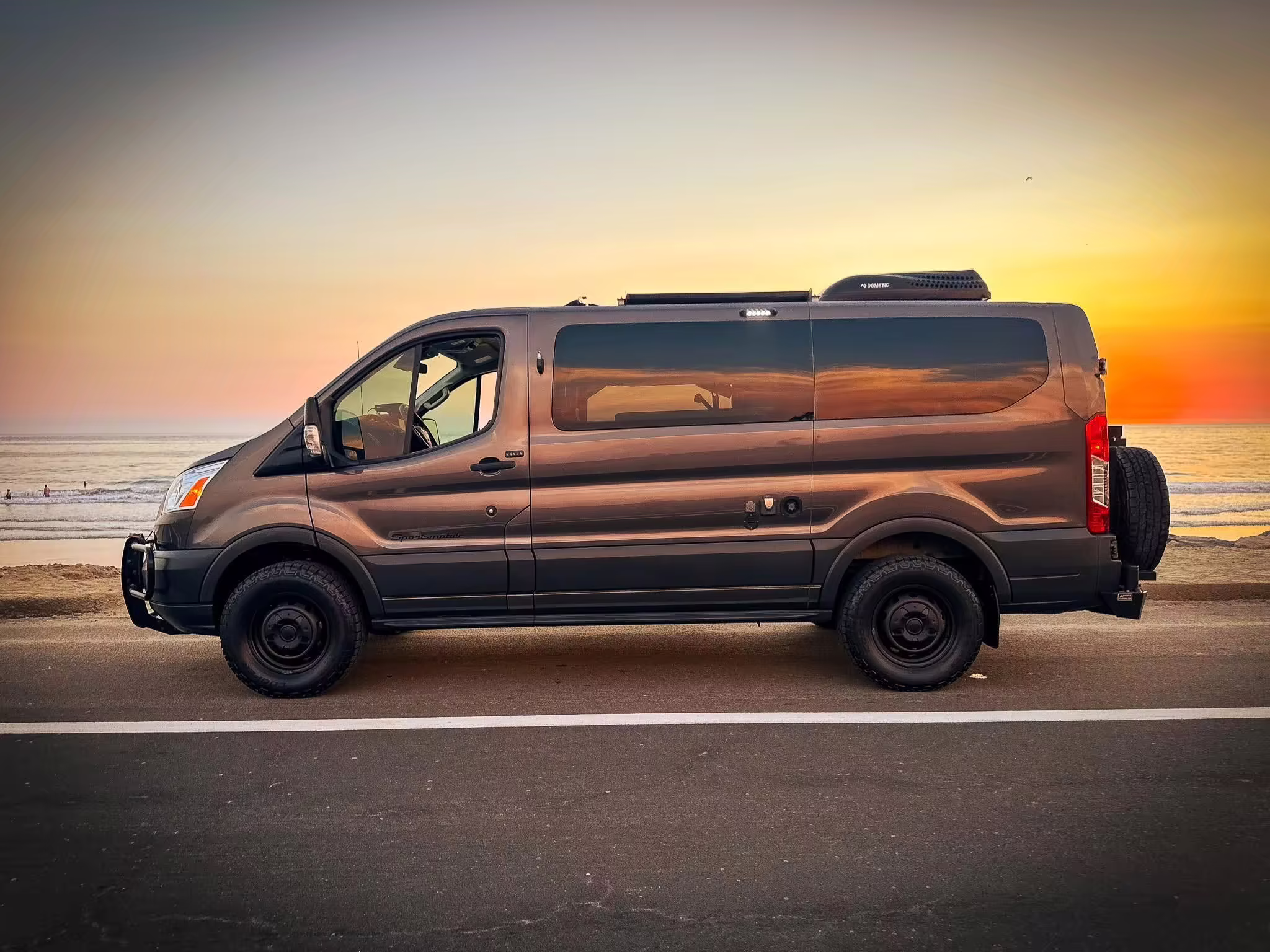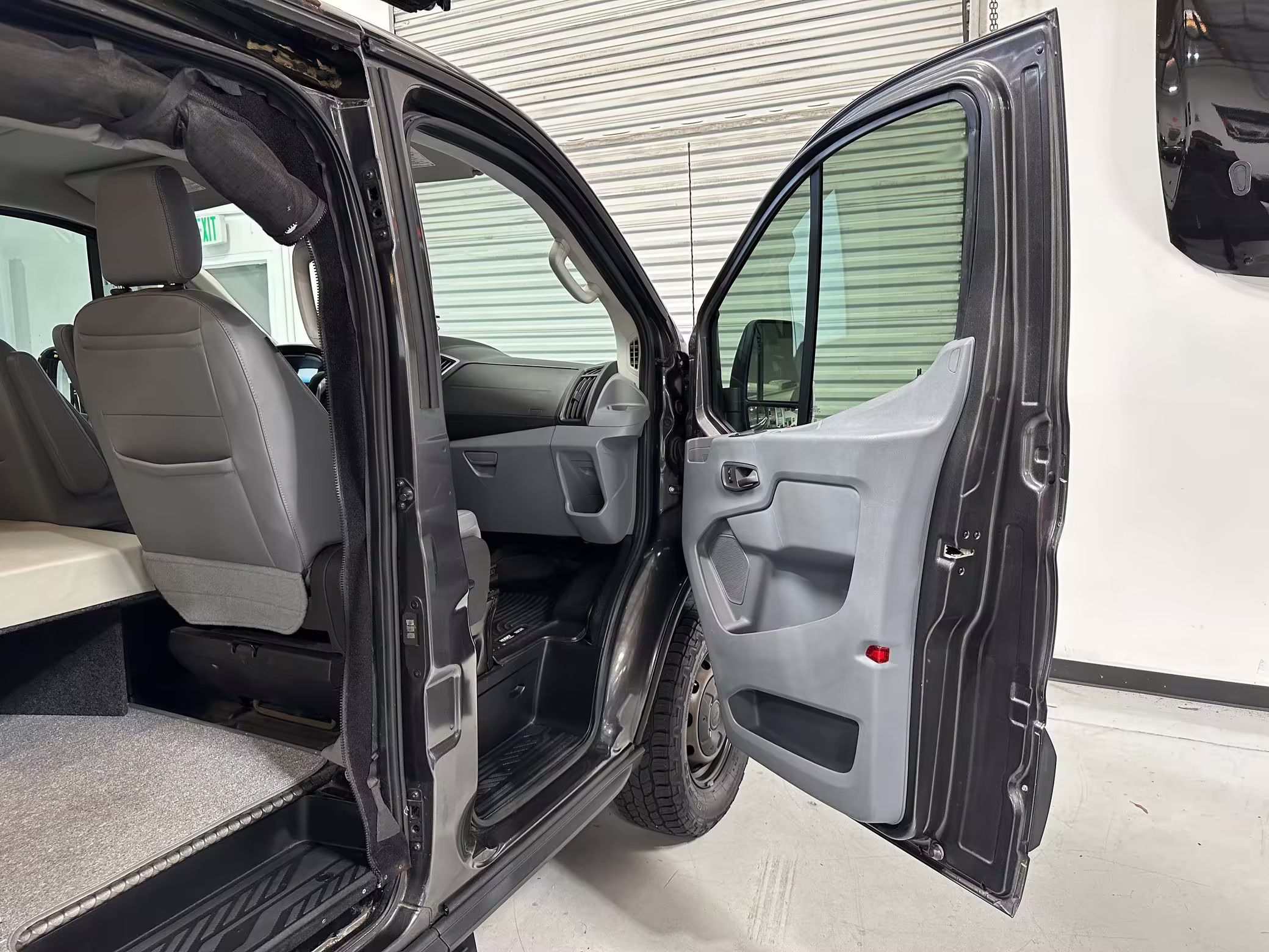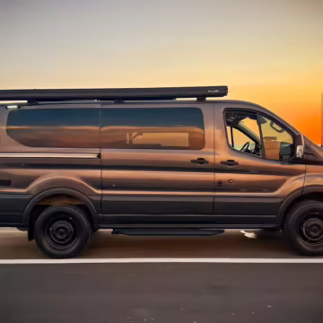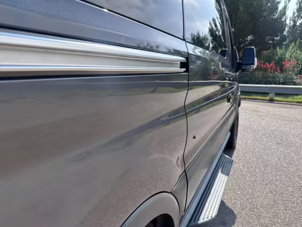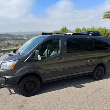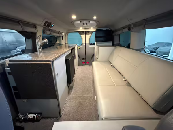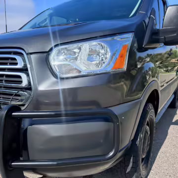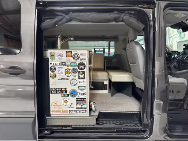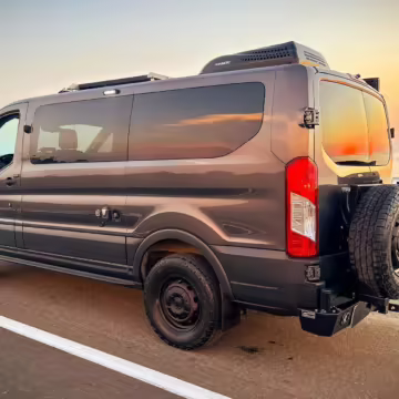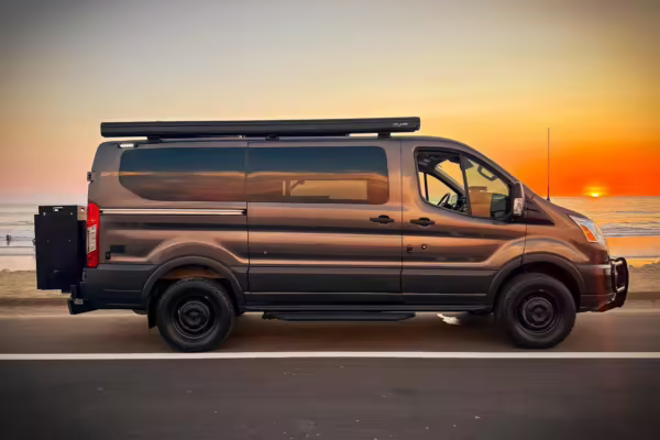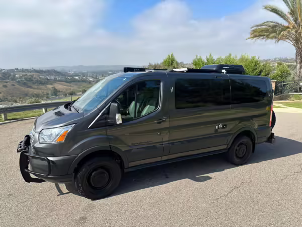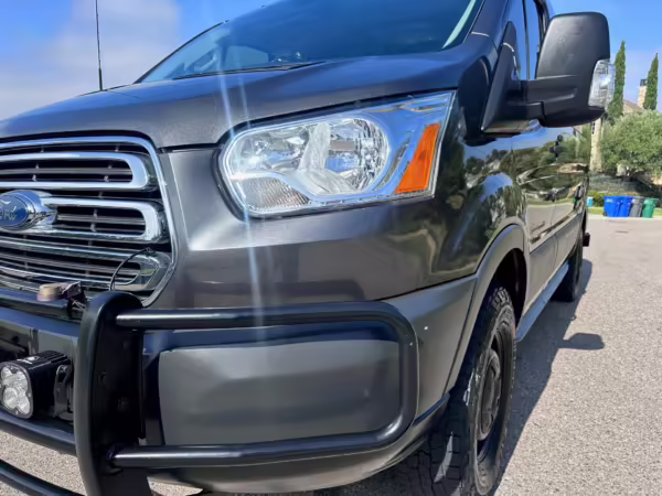 2017 Ford Transit 150 Sportsmobile 4×4, finished in Magnetic with a Pewter interior.