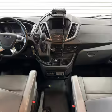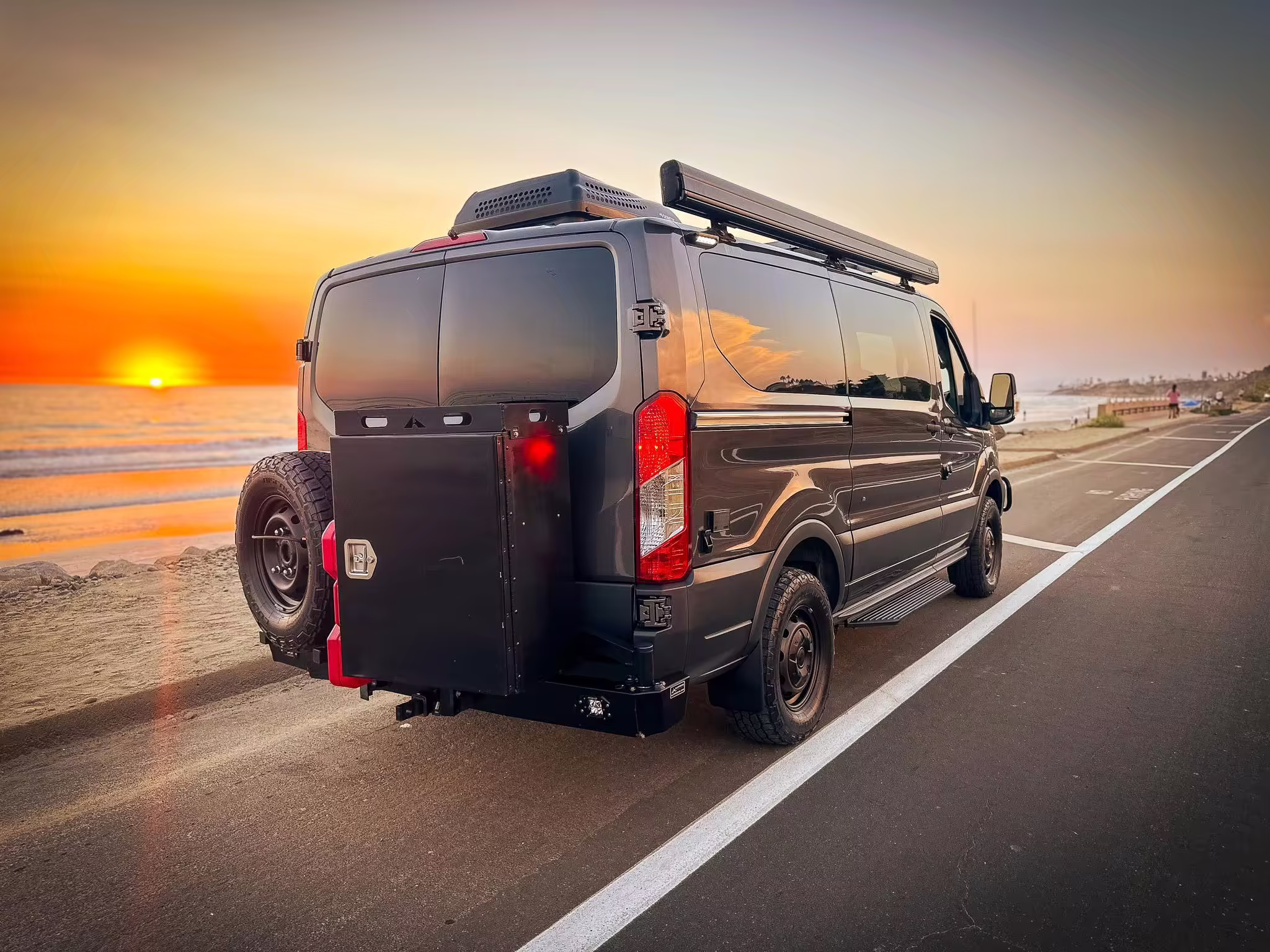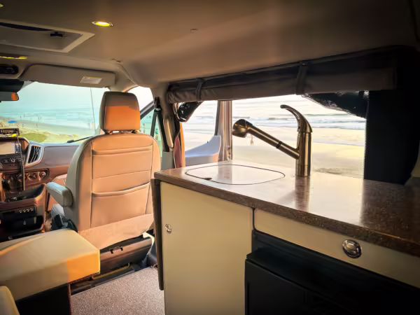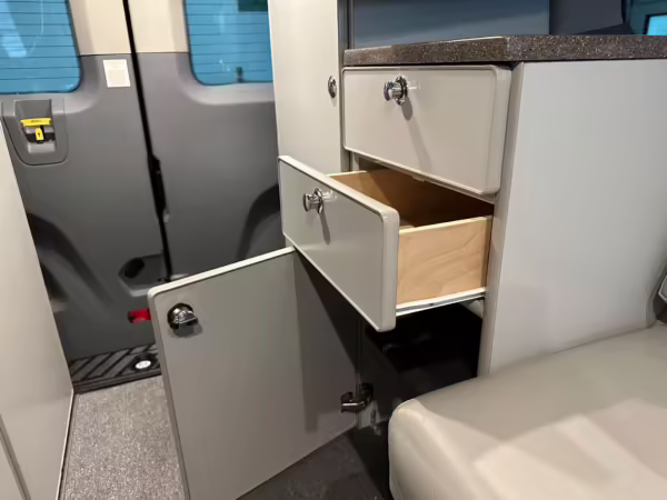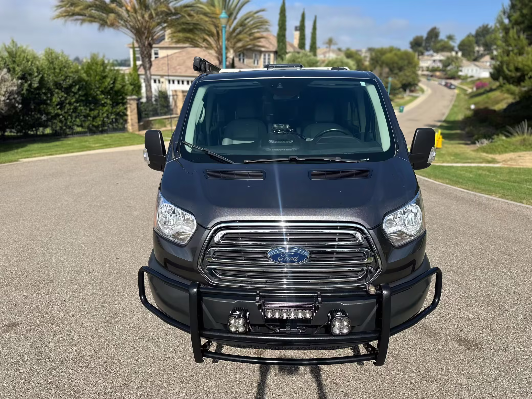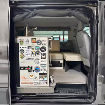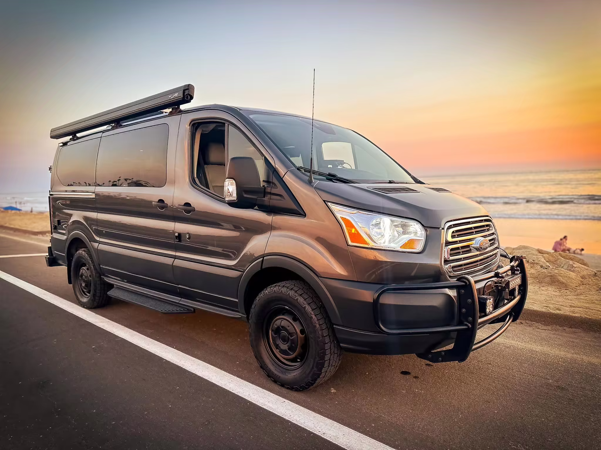 2017 Ford Transit 150 Sportsmobile 4×4, finished in Magnetic with a Pewter interior.