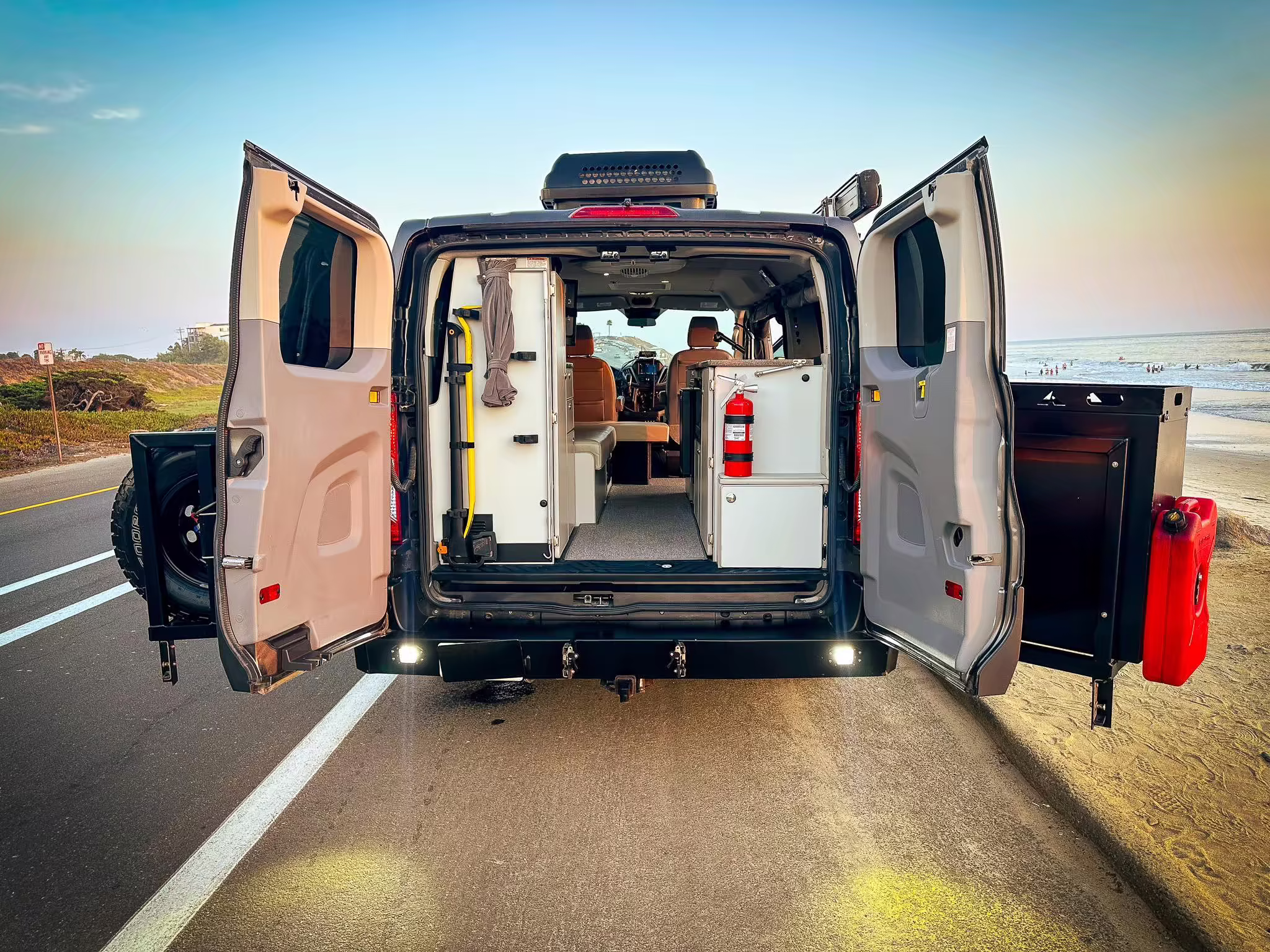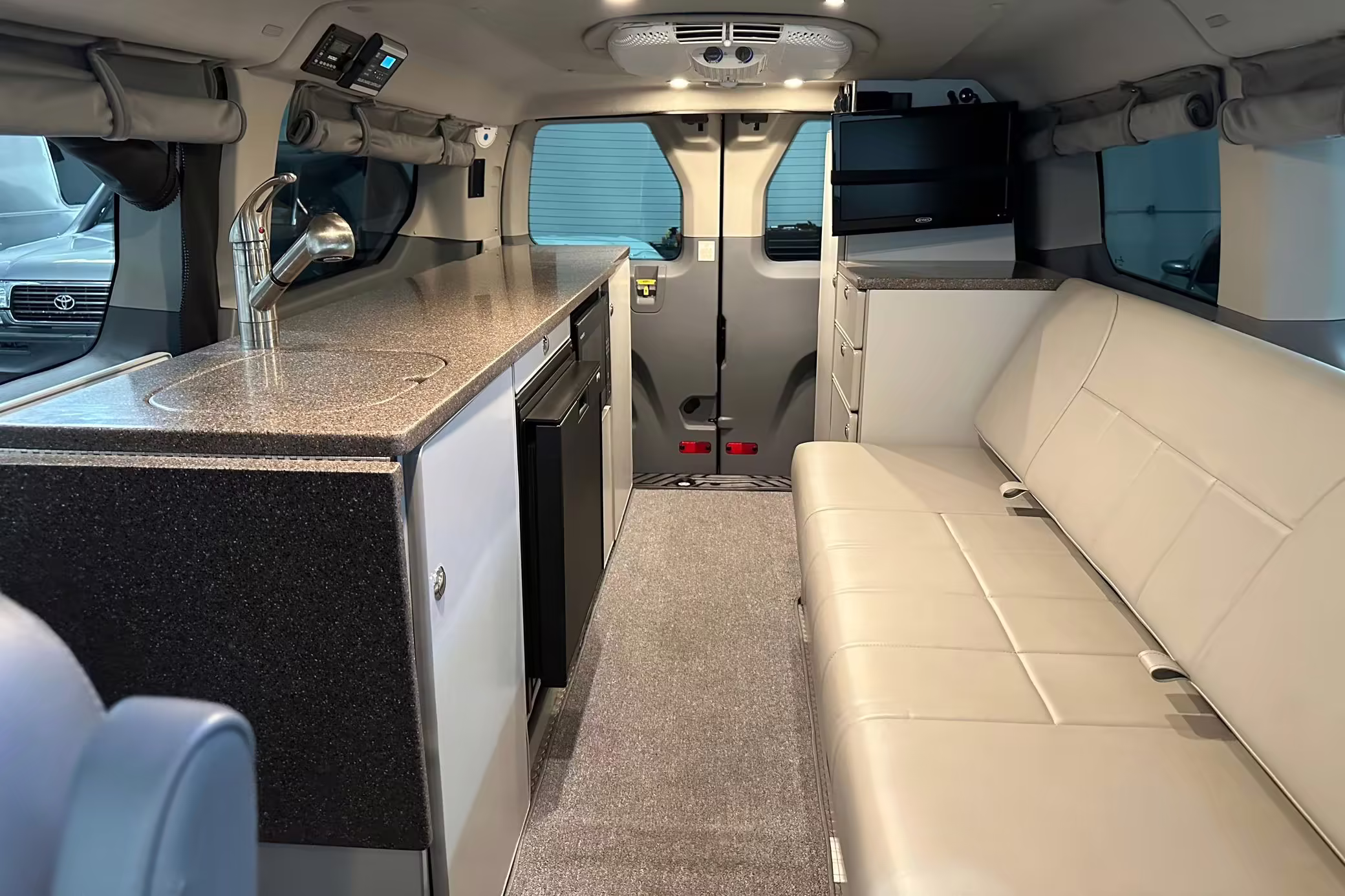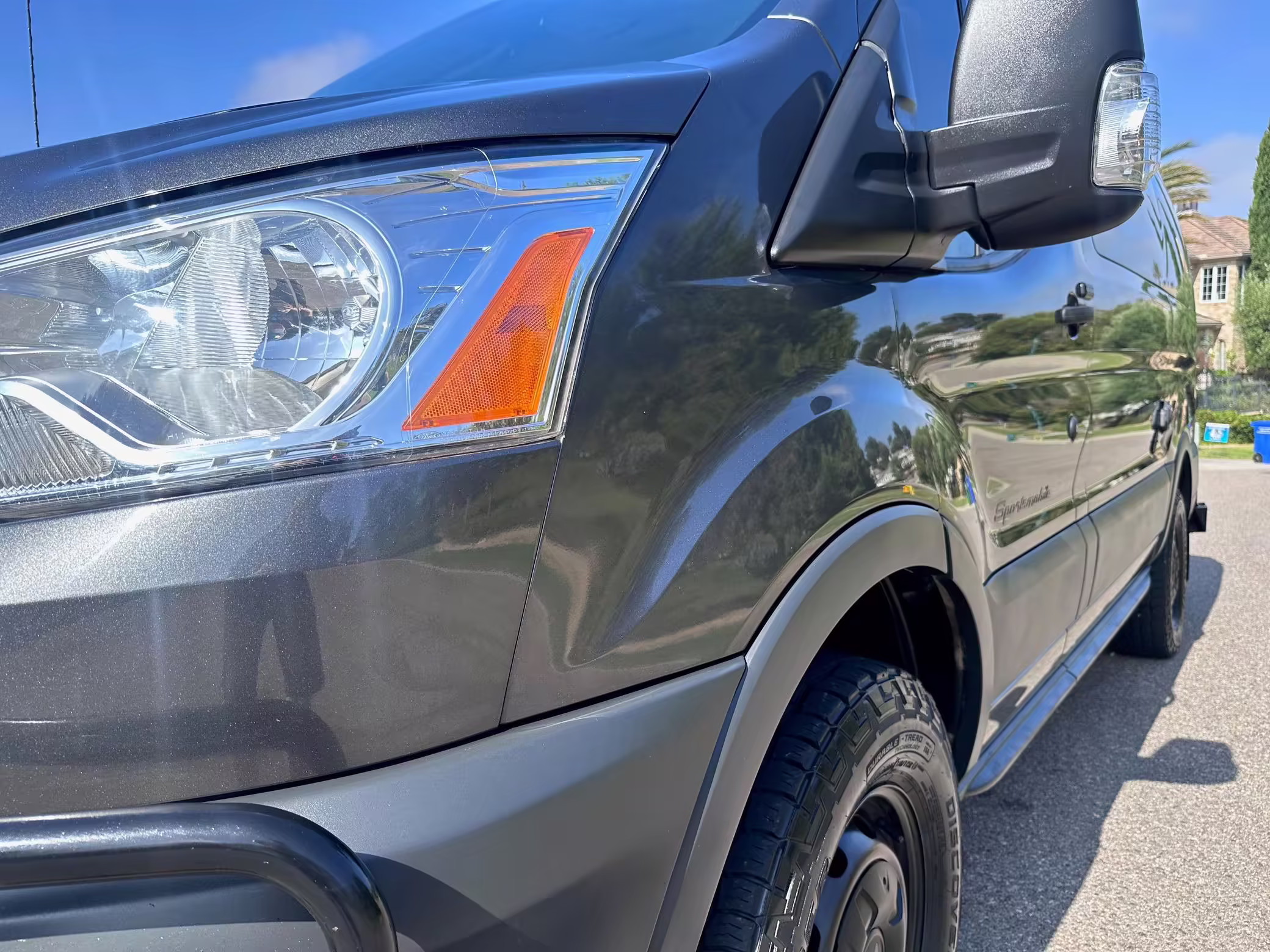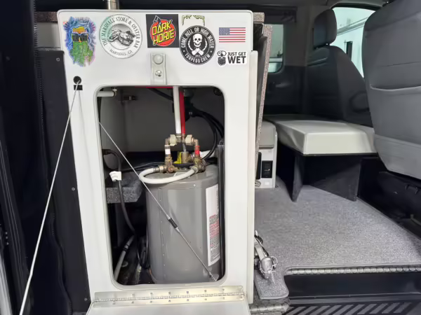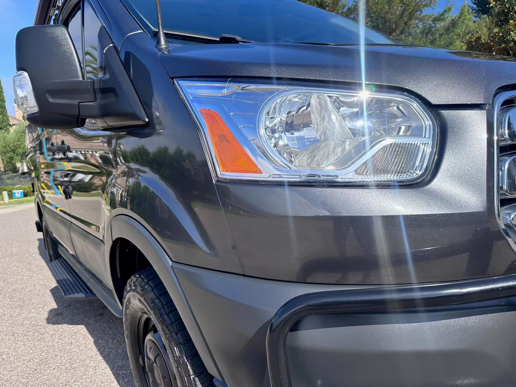 2017 Ford Transit 150 Sportsmobile 4×4, finished in Magnetic with a Pewter interior.