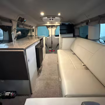 If you’re looking for a cool camper to explore the country, you’ve just found it. This Ford Transit is powered by a potent 3.5-liter twin-turbocharged V6 – the most powerful engine available for 2017 – and it boasts a Quigley part-time four-wheel-drive conversion kit, making it especially capable. This Transit also touts everything you need to live on the road, including a refrigerator, a bed, a toilet, and much more.