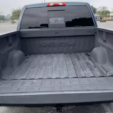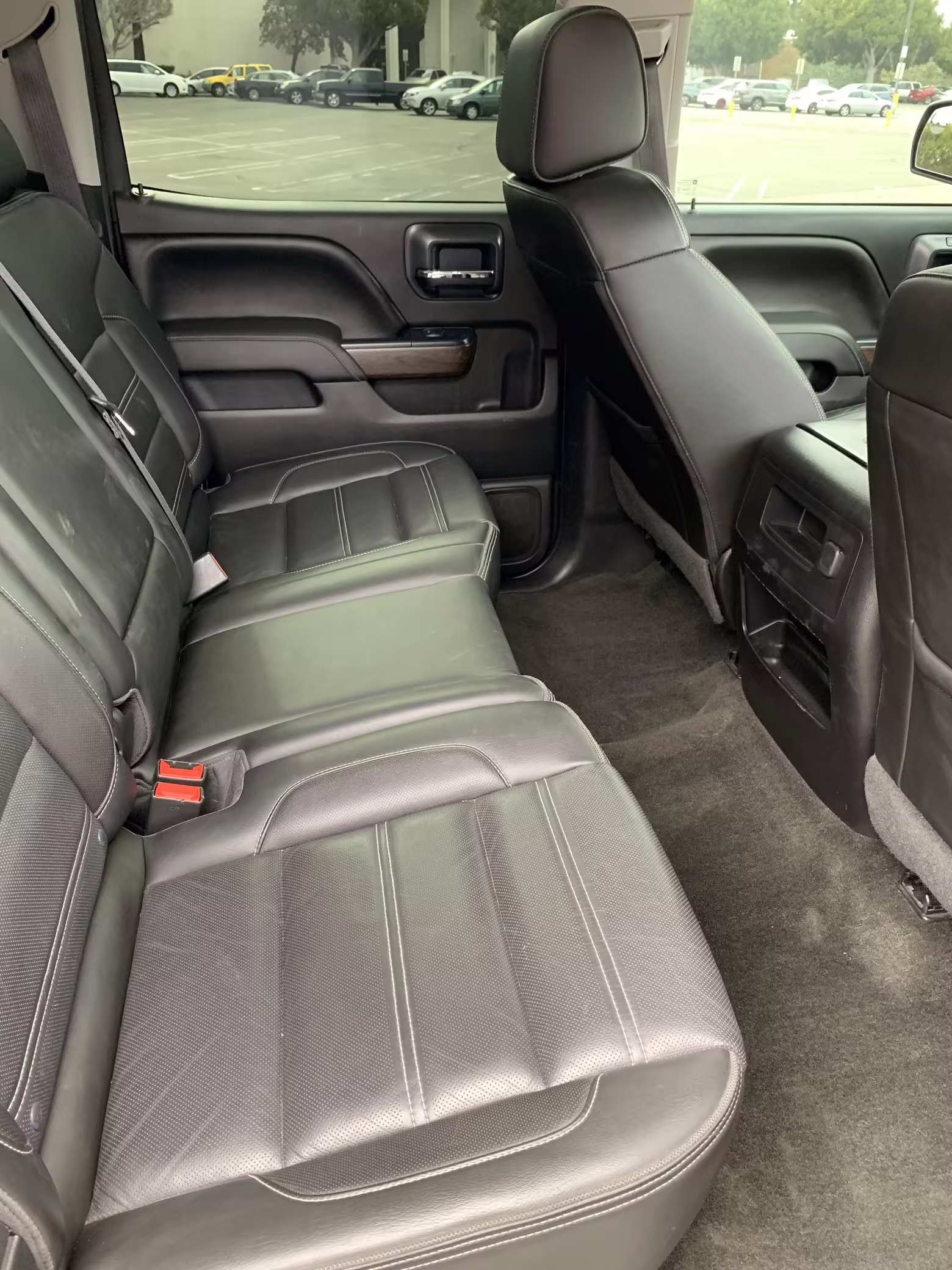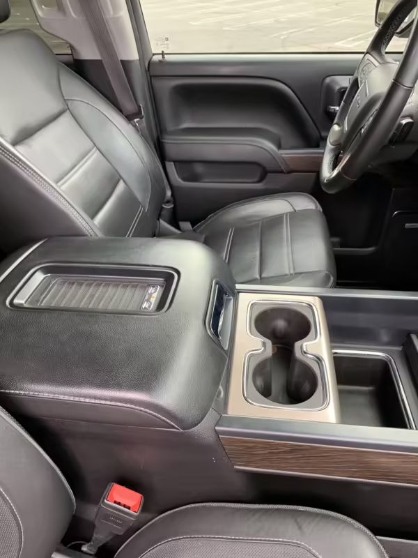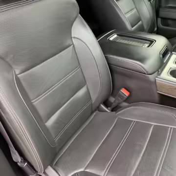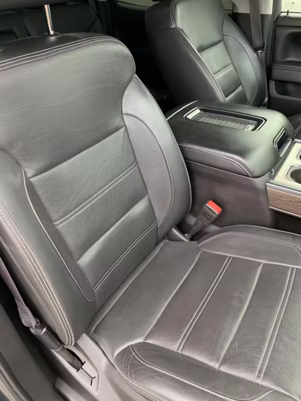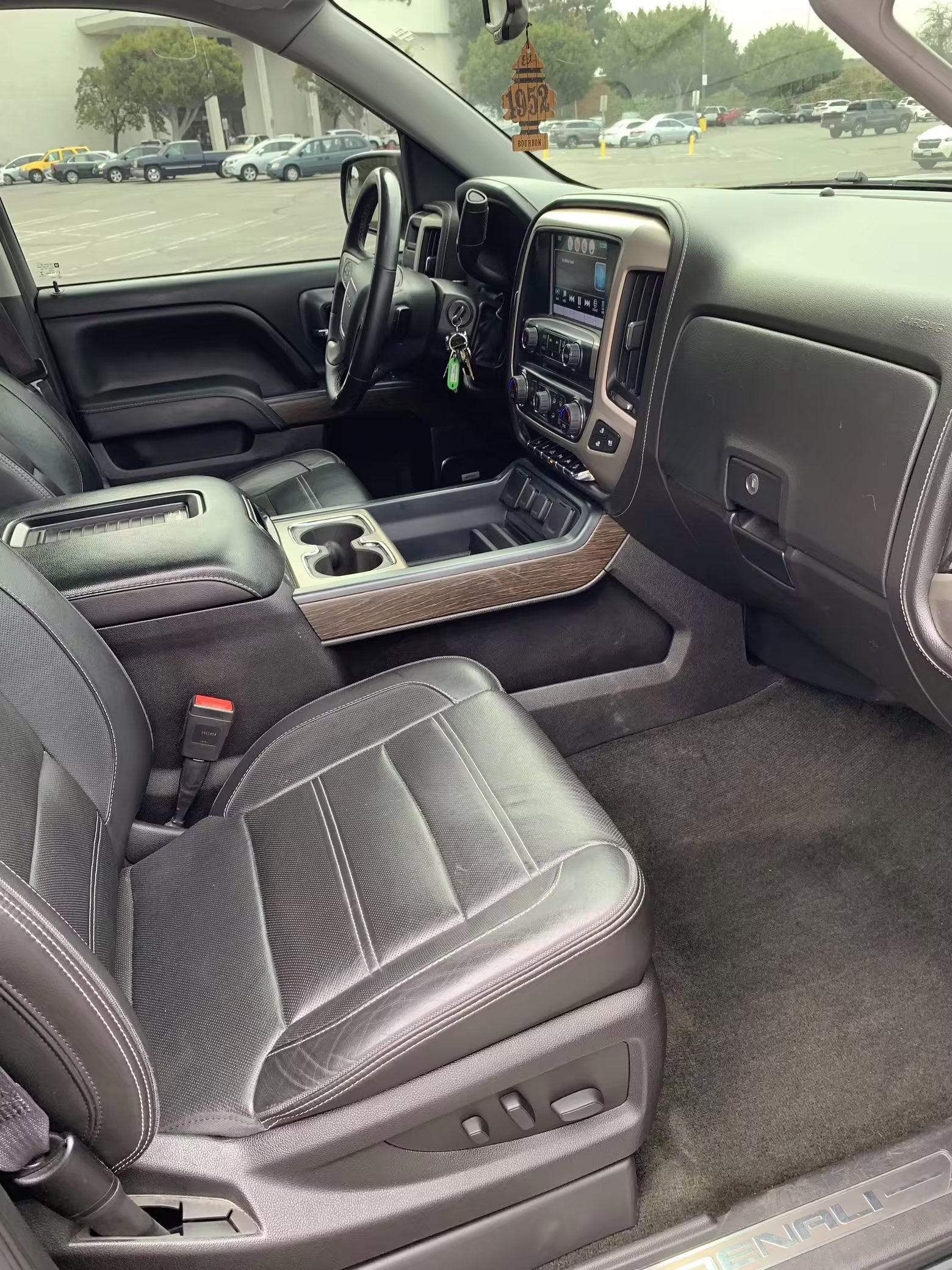 Factory equipment includes Magnetic Ride Control suspension, LED headlights, LED taillights, Denali-specific chrome grille, a spray-on bed liner, leather upholstery, power-adjustable heated and cooled front seats, a heated steering wheel, an 8-inch MyLink infotainment system with Apple CarPlay and Android Auto, a navigation system, and more as listed below.