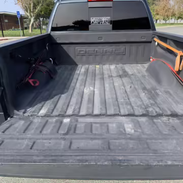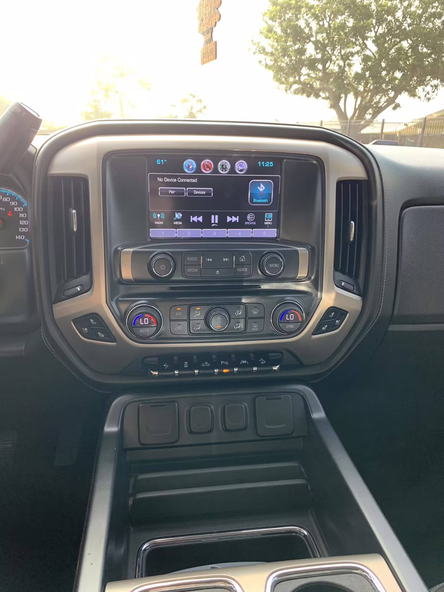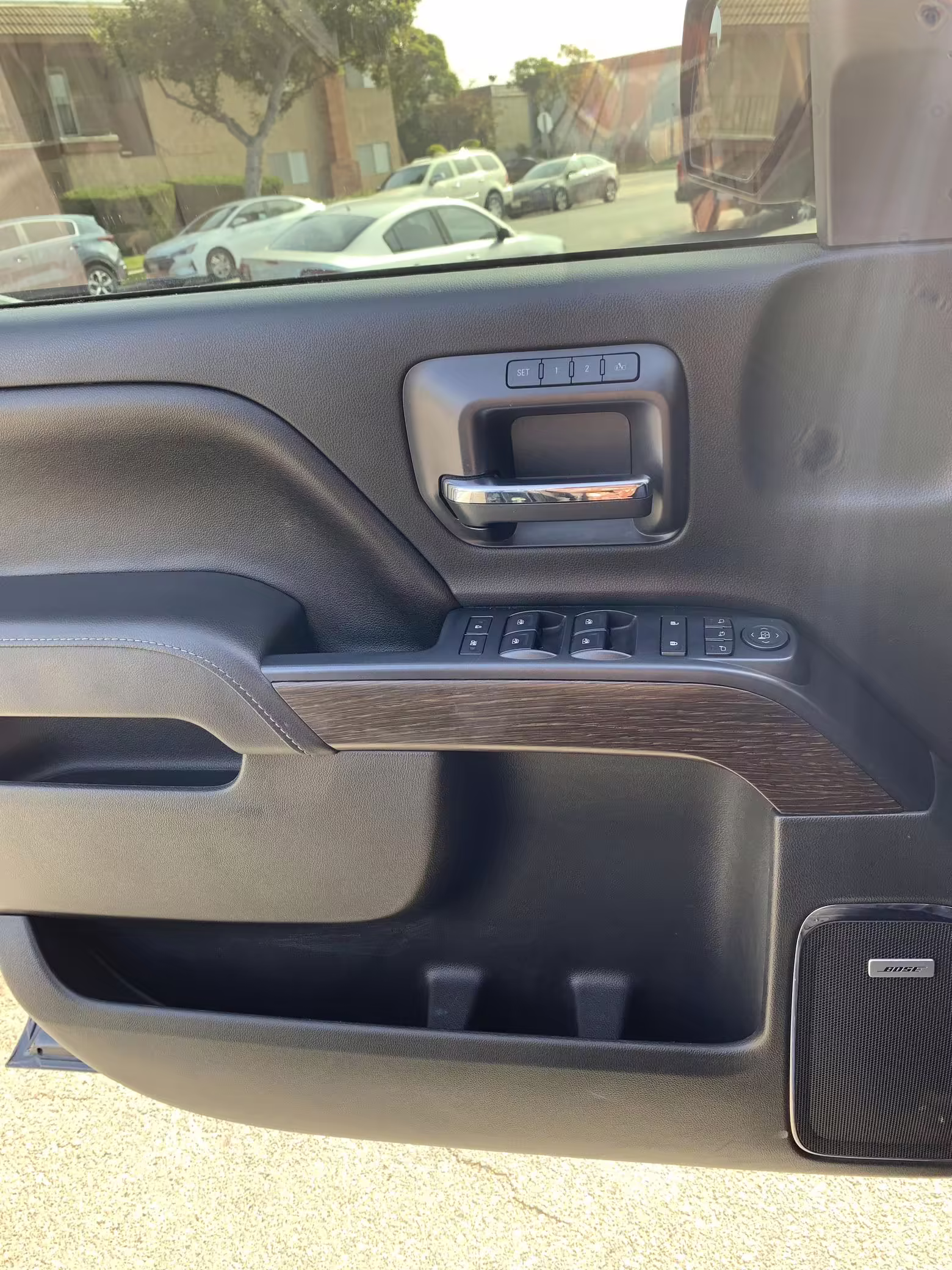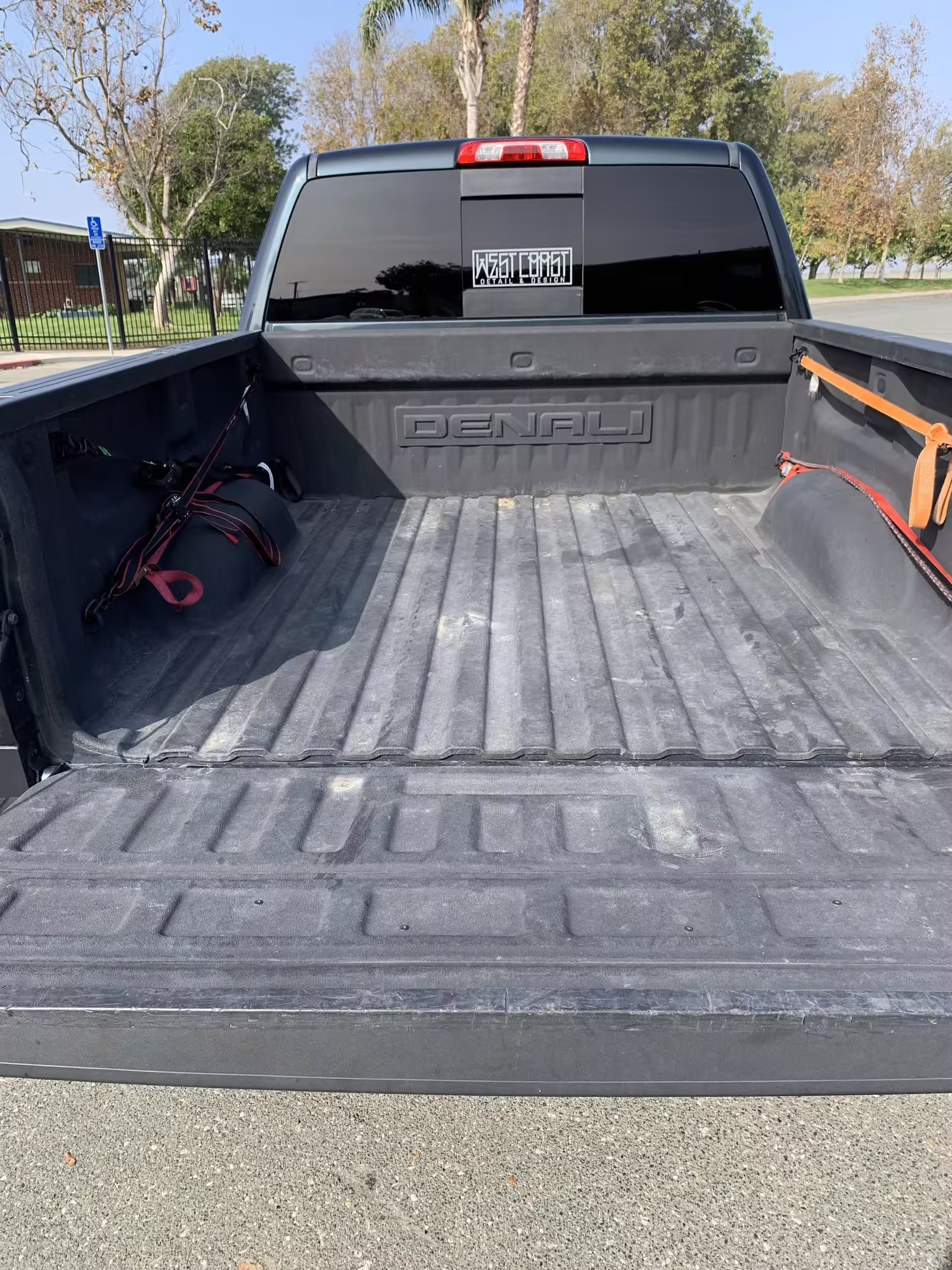 Factory equipment includes Magnetic Ride Control suspension, LED headlights, LED taillights, Denali-specific chrome grille, a spray-on bed liner, leather upholstery, power-adjustable heated and cooled front seats, a heated steering wheel, an 8-inch MyLink infotainment system with Apple CarPlay and Android Auto, a navigation system, and more as listed below.