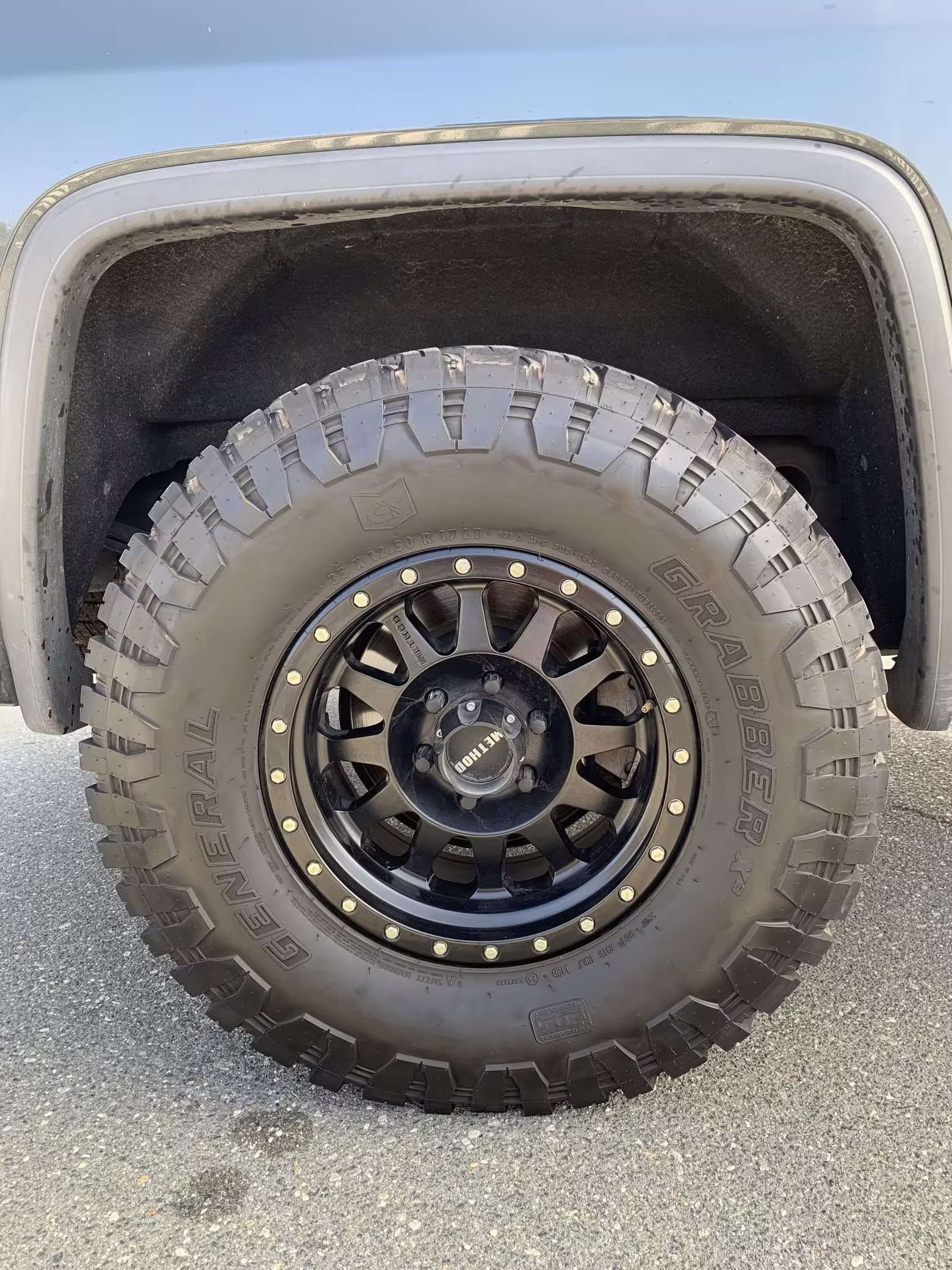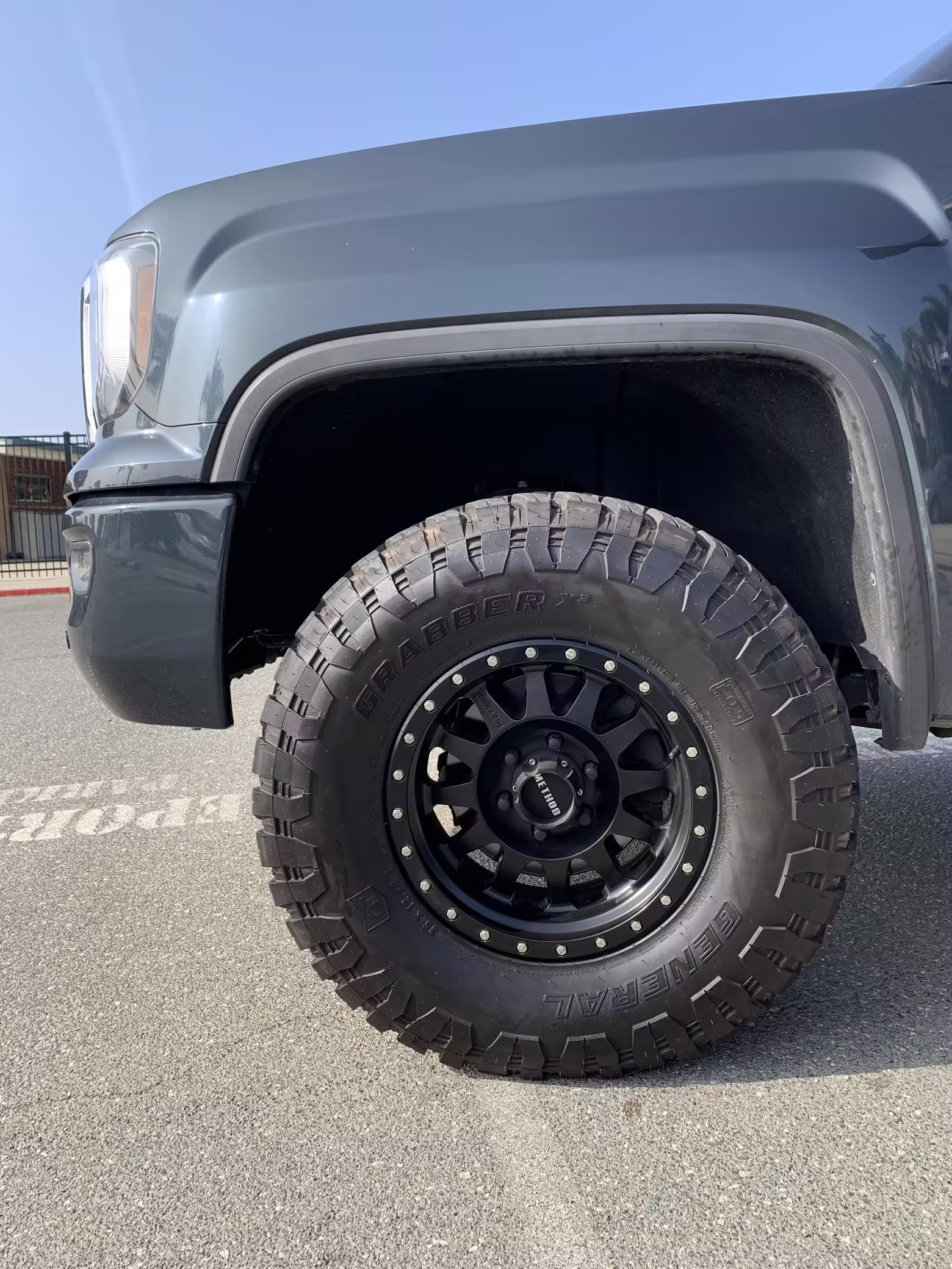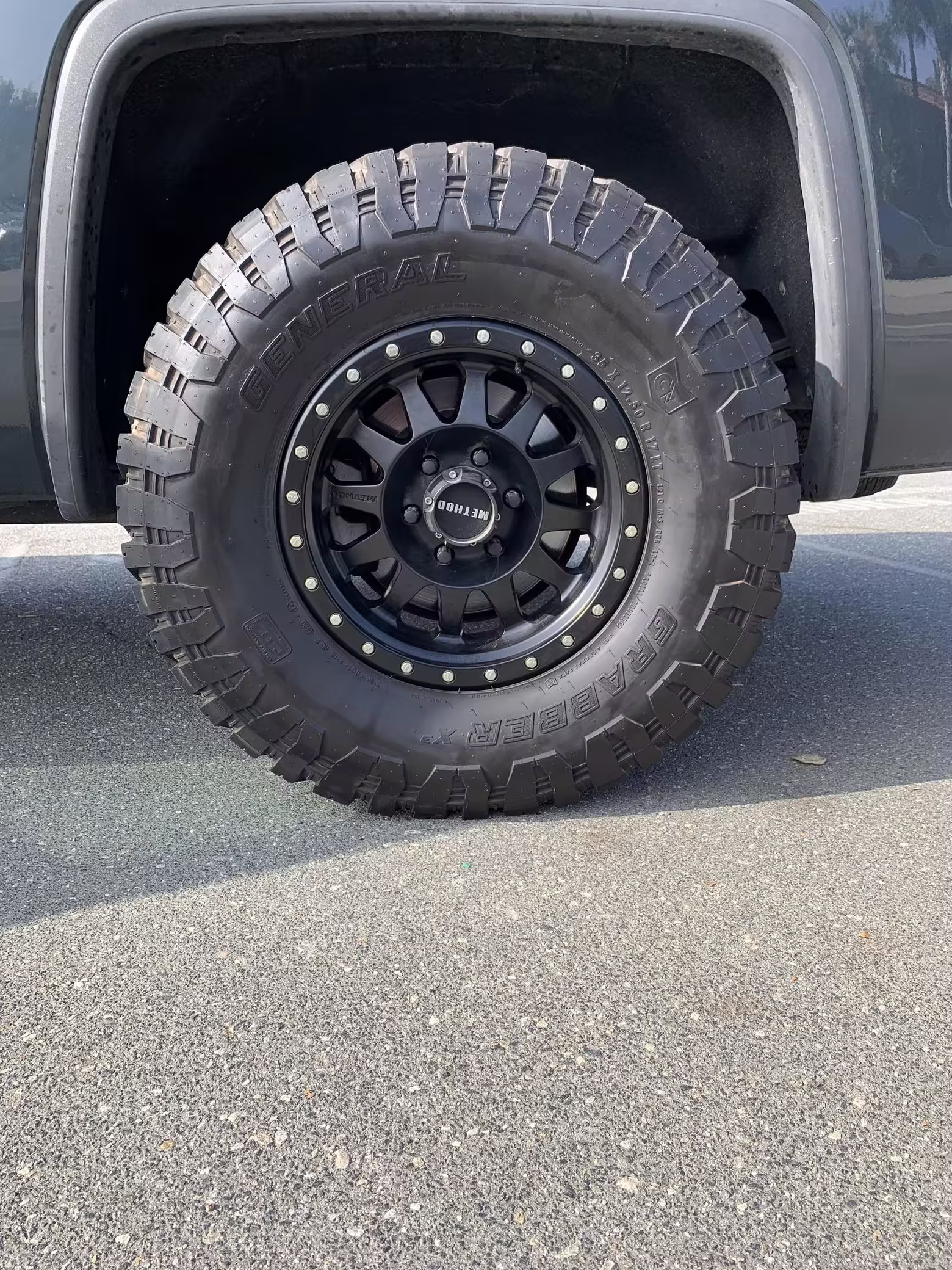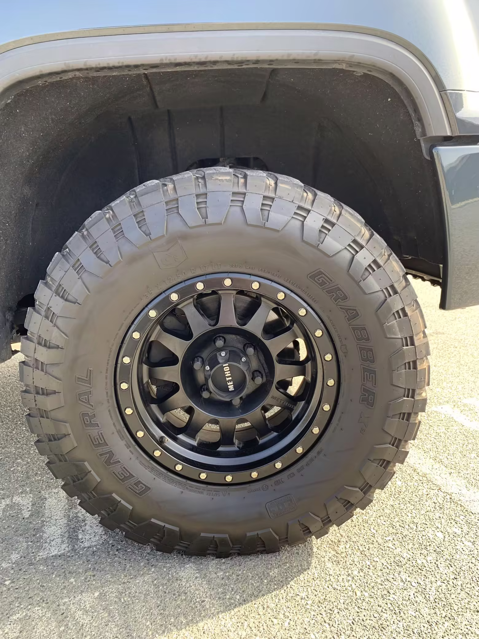 Modifications reported by the seller include a set of 17-inch Method Race wheels shod with 35-inch General Grabber tires, a front suspension leveling kit, the rear suspension blocks removed, and more, as detailed below.
