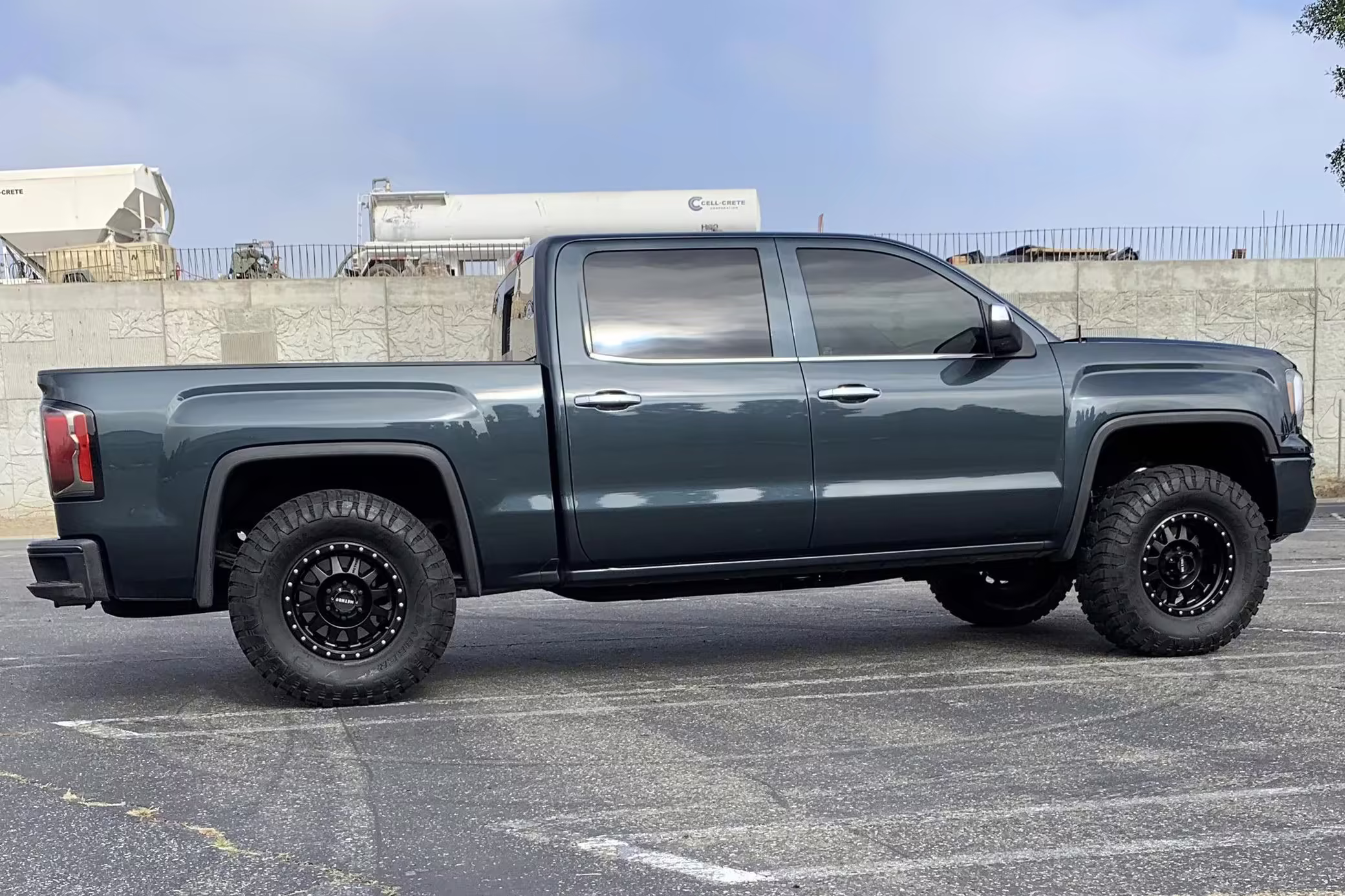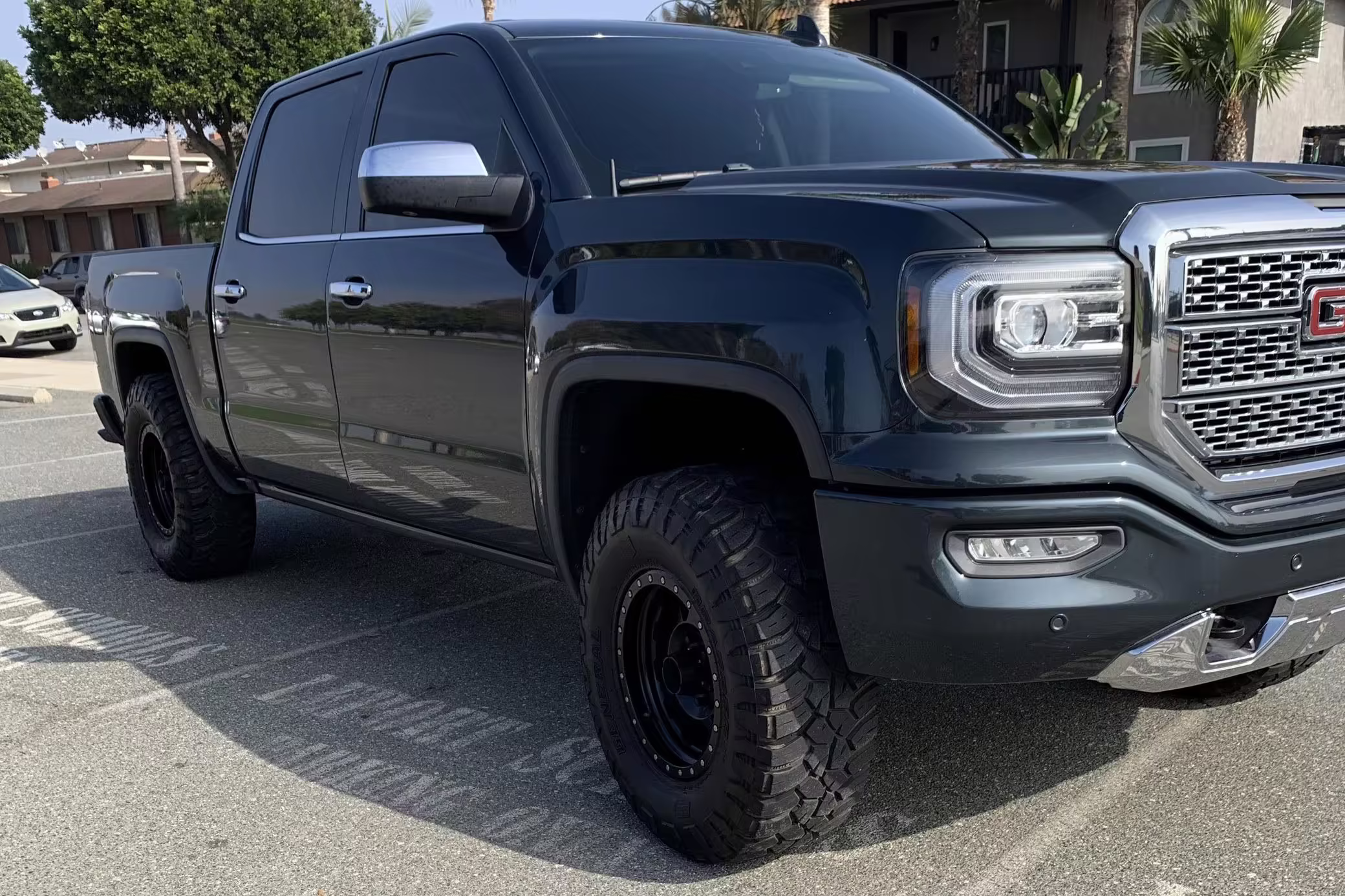 The Sierra Denali is an impressive pickup that comes loaded from the factory, making it a true luxury truck. This 2017 model has a lot of great things going for it, including heated and cooled front seats and a long list of driver-assistance systems. It also boasts some desirable modifications like Method wheels and larger off-road tires, a leveling kit, and a Flowmaster exhaust.