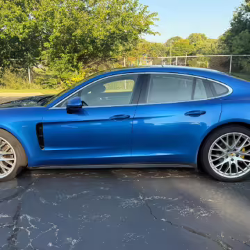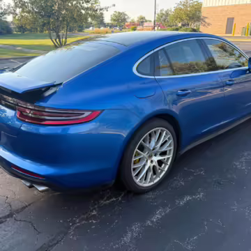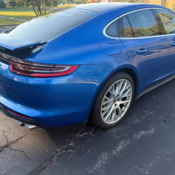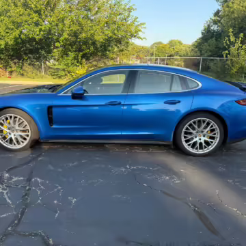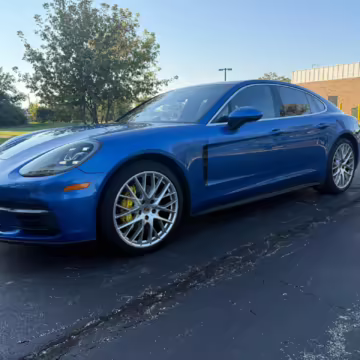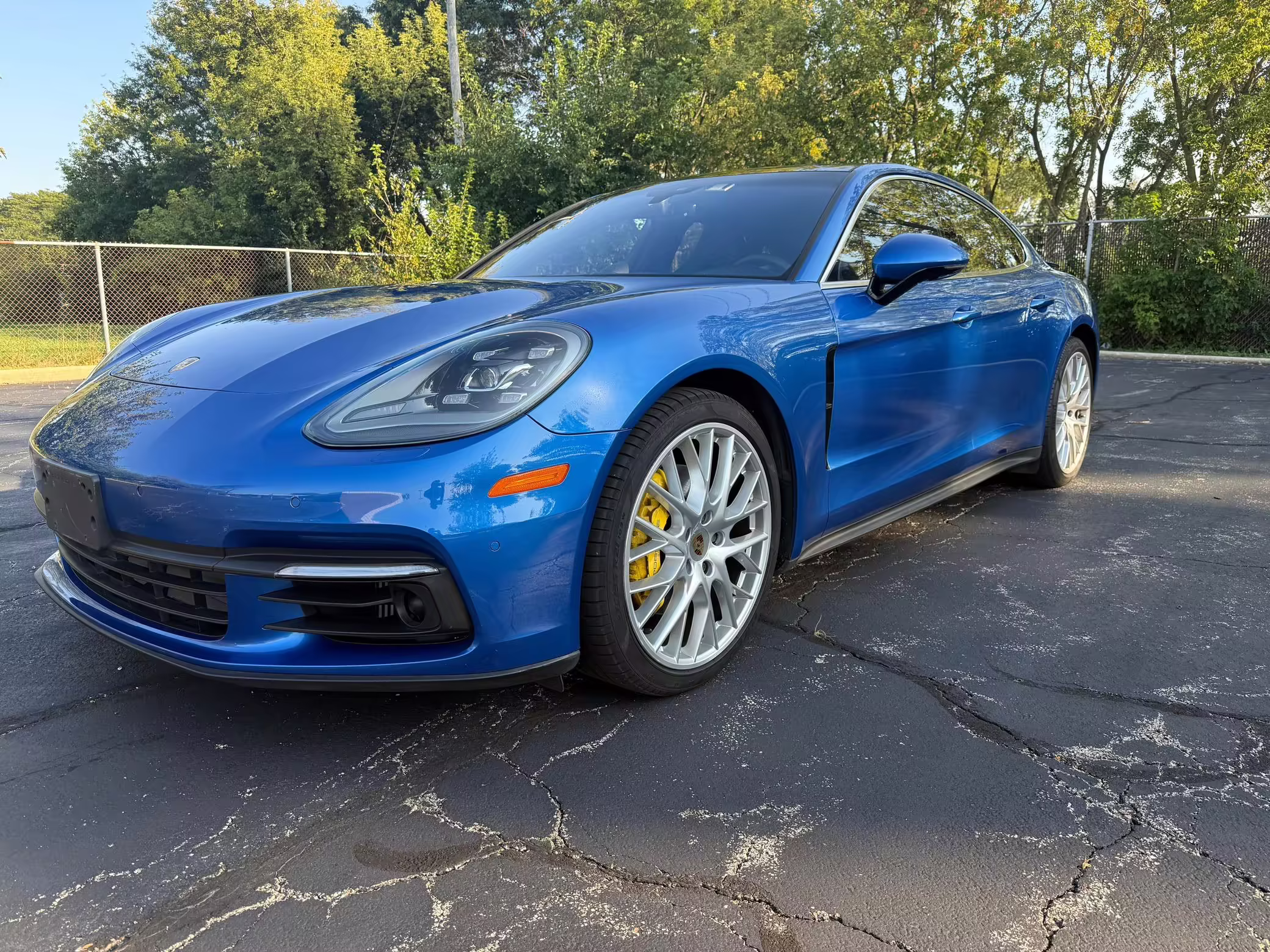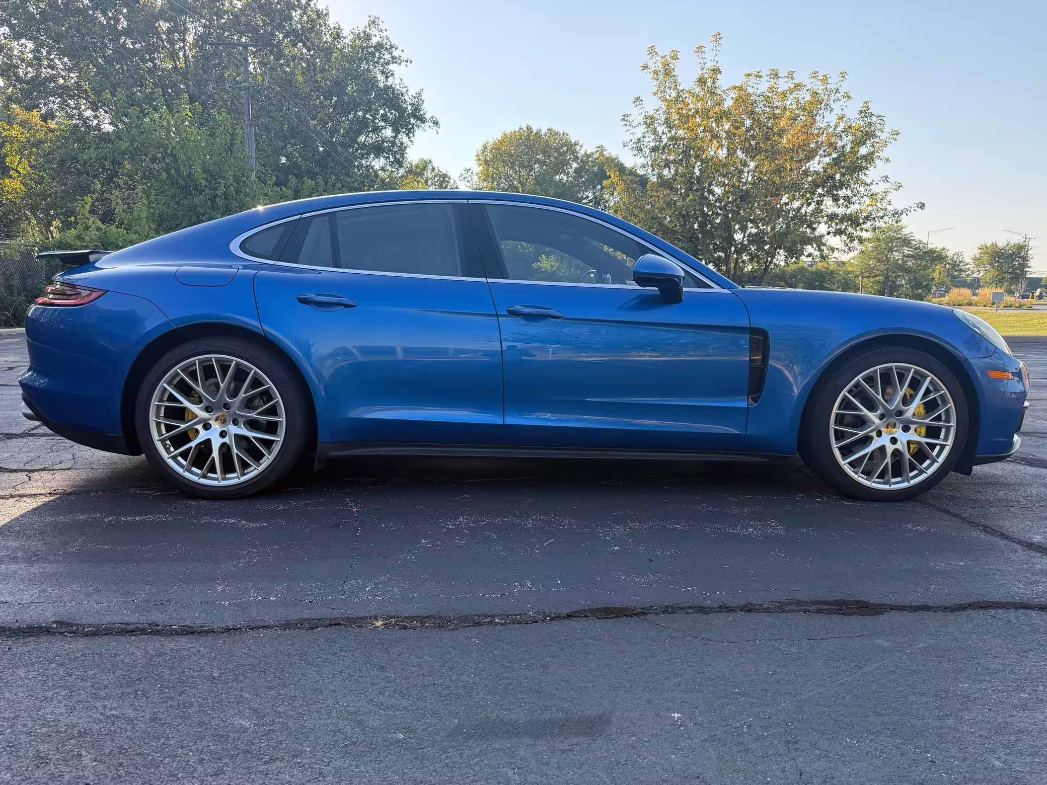 2017 Porsche Panamera 4S, finished in Sapphire Blue Metallic with a black interior.