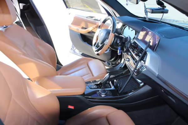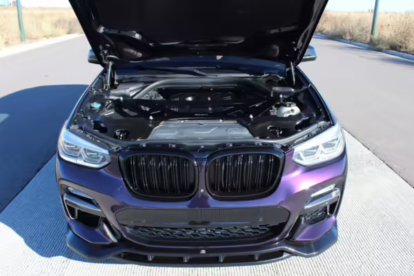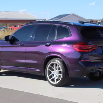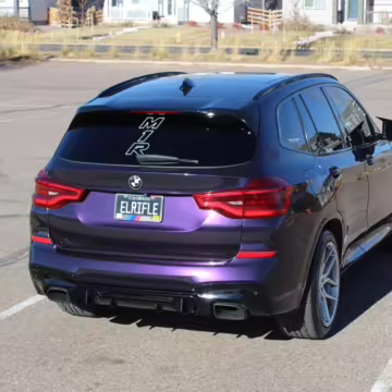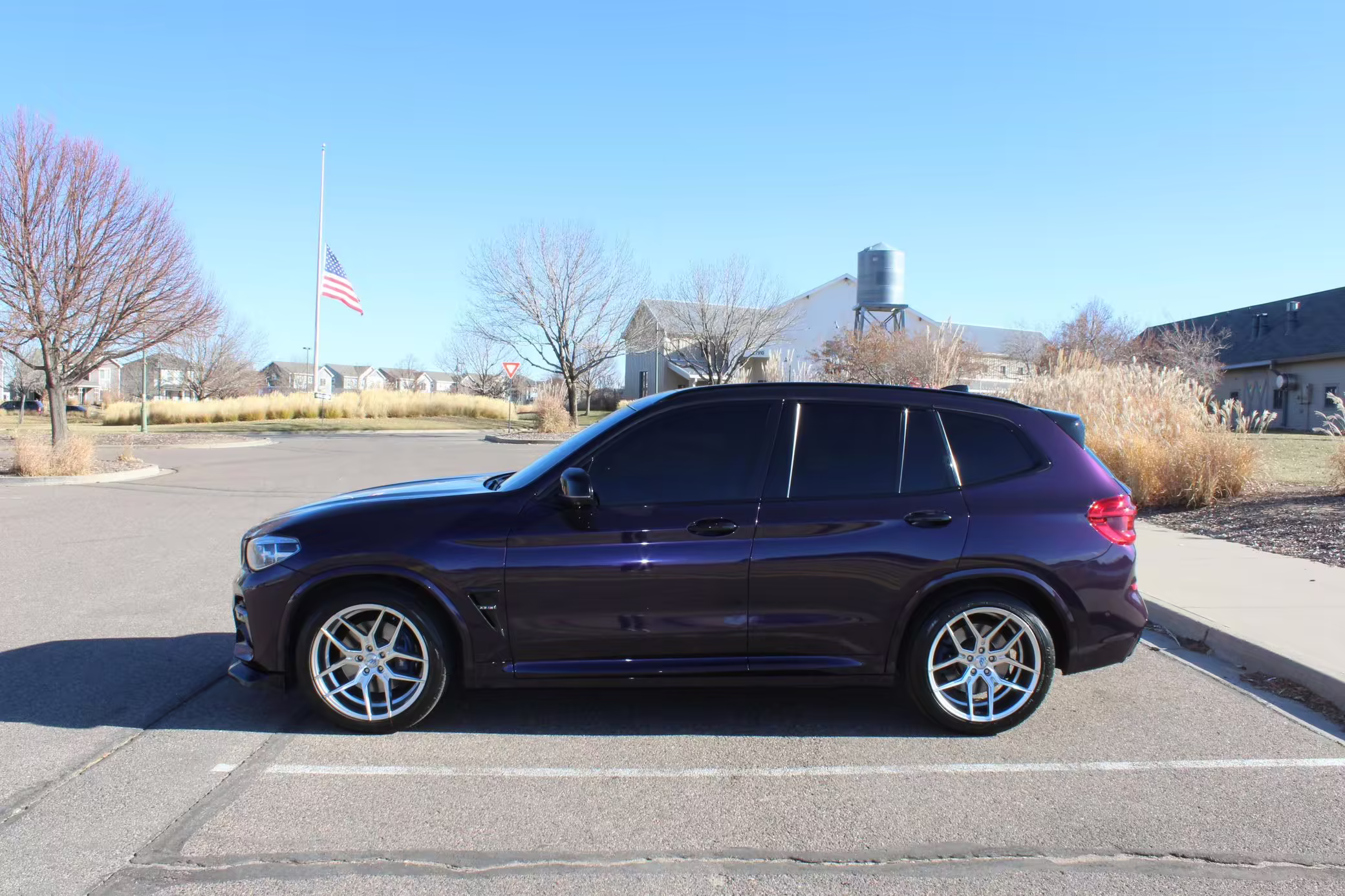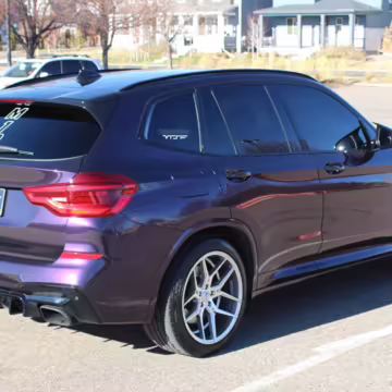 2018 BMW X3 M40i, finished in Carbon Black Metallic with a Midnight Purple exterior wrap and a Cognac interior.