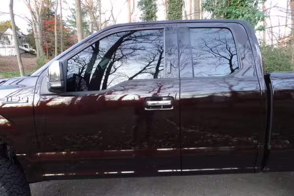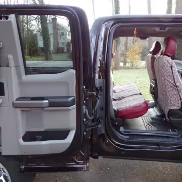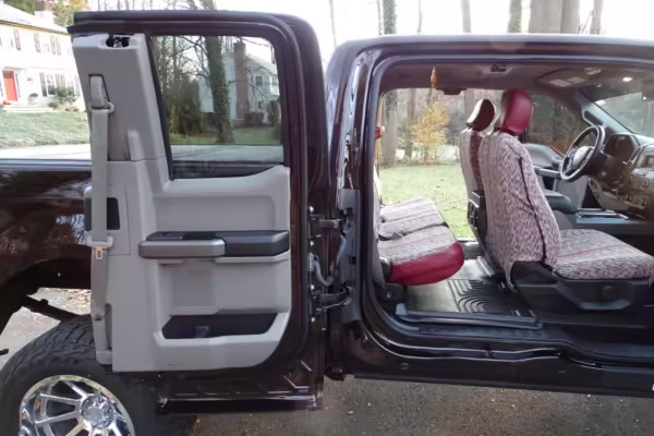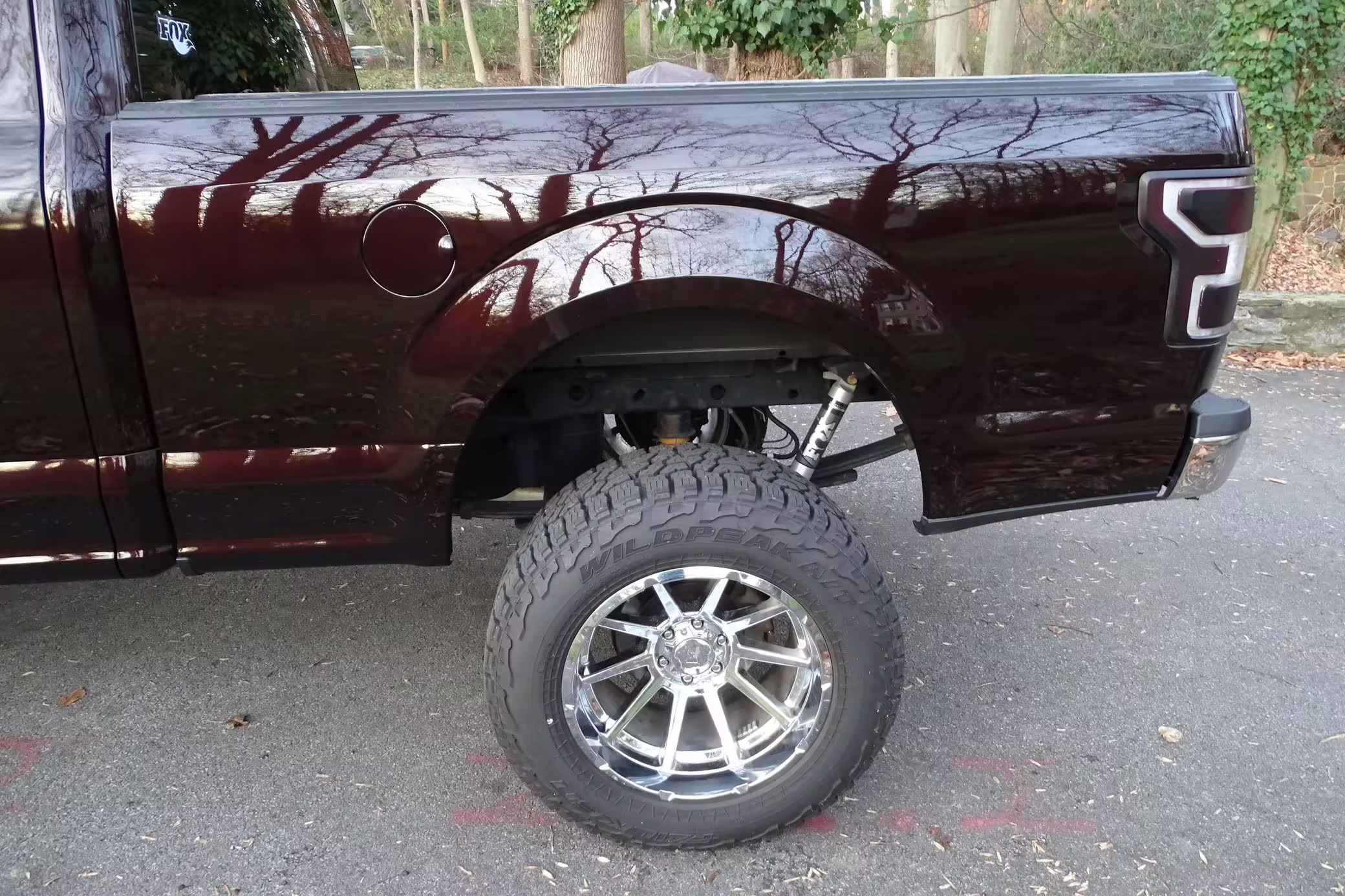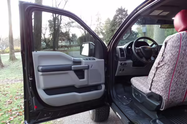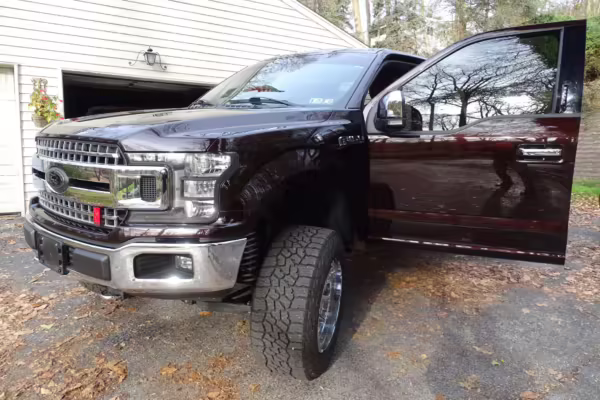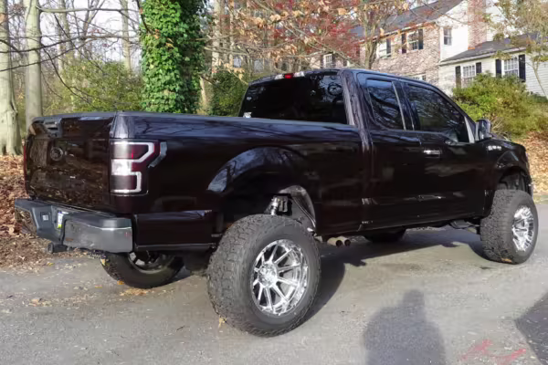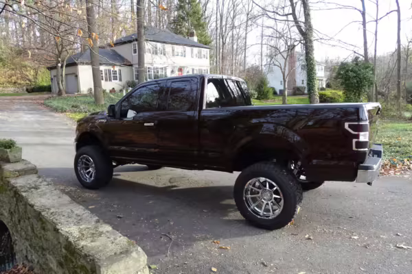 Now THIS is a head-turning F-150! It’s a well-equipped XLT model that’s finished in gorgeous and unusual Magma Red, and it’s fitted with the Trailer Tow Package and an electronic locking rear axle. This F-150 has also been extensively modified with some serious changes over a standard truck, touting a 6-inch BDS lift, Fox Racing coilovers, and a set of 20-inch V-Rock VR13 wheels with 35-inch Falken Wildpeak tires.