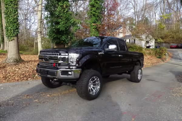Modifications to this F-150 are extensive, and the full list is detailed below. Highlights include 20-inch V-Rock VR13 wheels with 35-inch Falken Wildpeak tires, a 6-inch BDS lift kit, Fox Racing coilover suspension, Yukon Gear 4.56 gears, a Brenspeed tune, a K&N intake, a Flowmaster exhaust system, a Gator tonneau cover, tinted windows, an Oracle Rock Light kit, and RuffTuff seat covers.