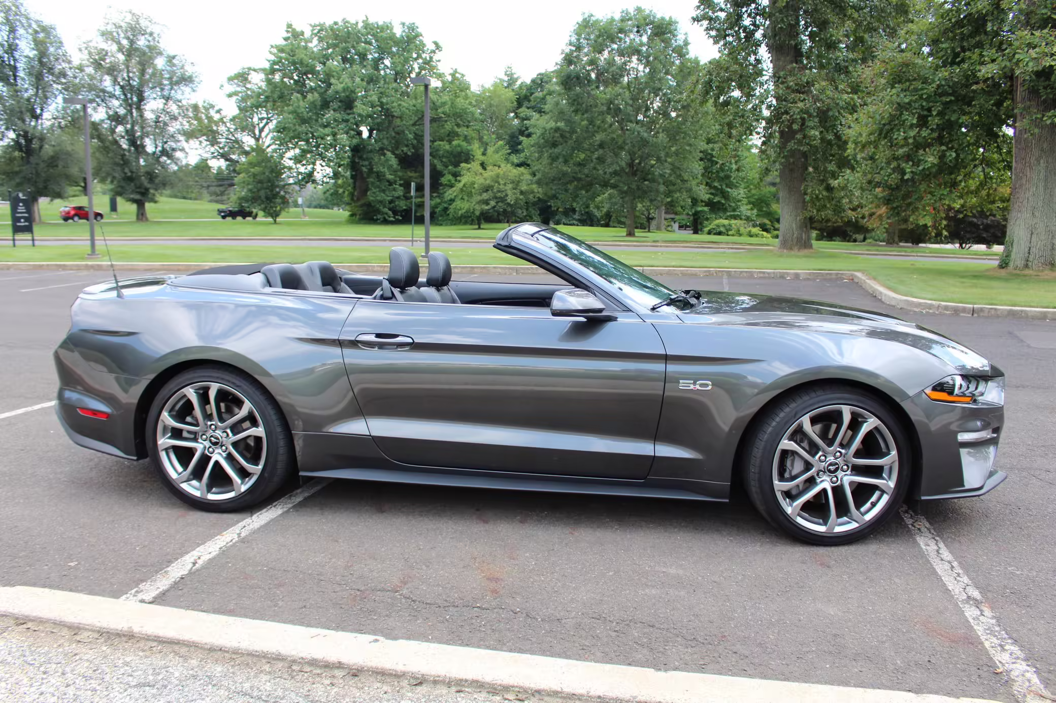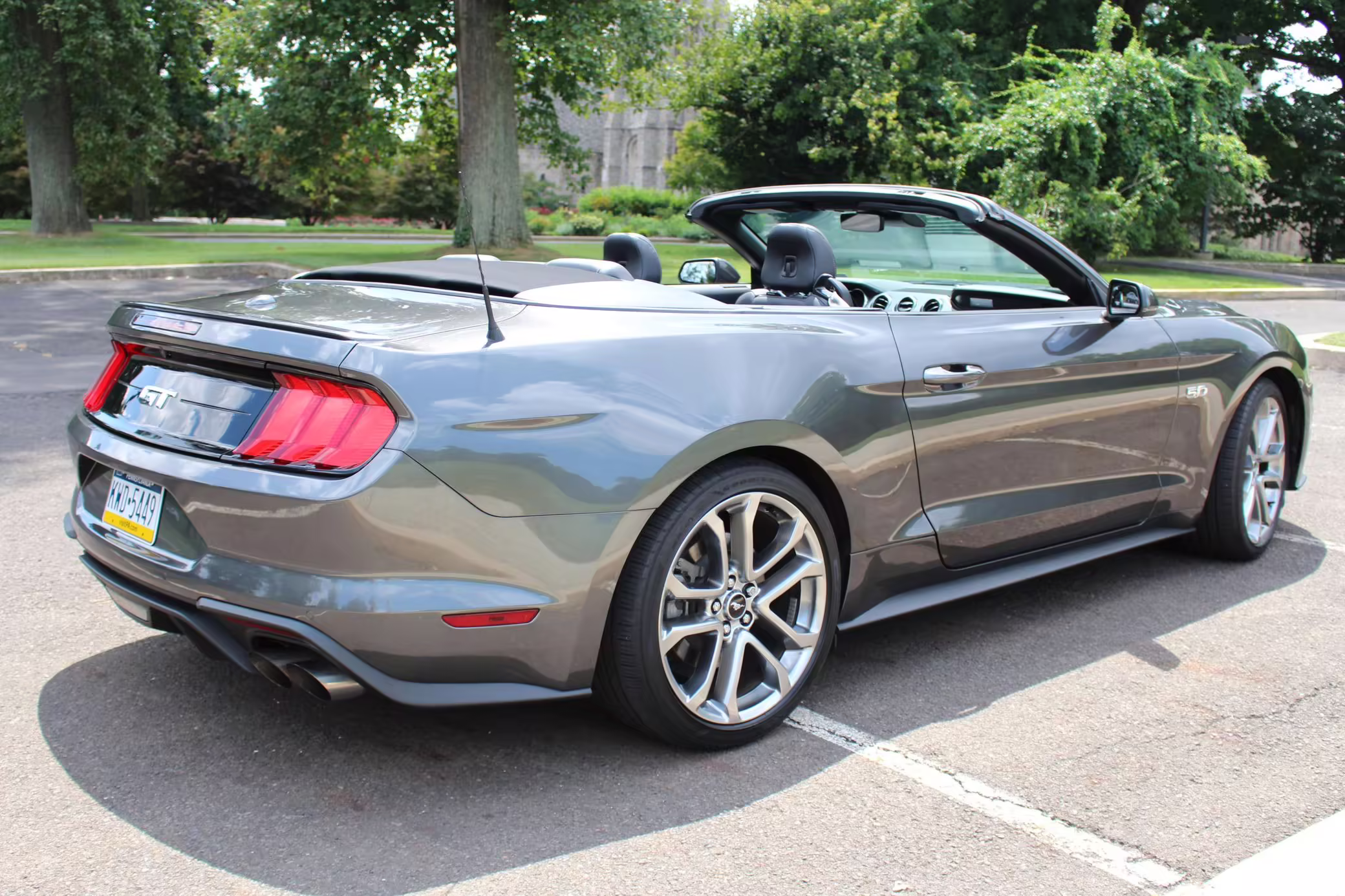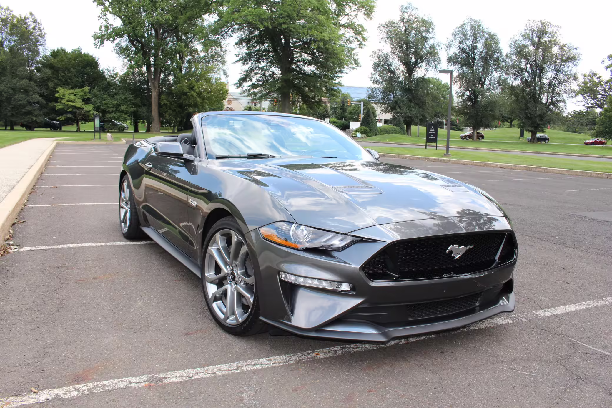 2018 Ford Mustang GT Convertible, finished in Gunmetal Grey with a black leather interior.