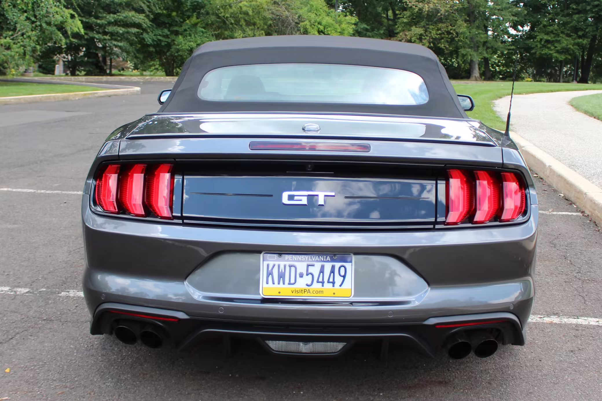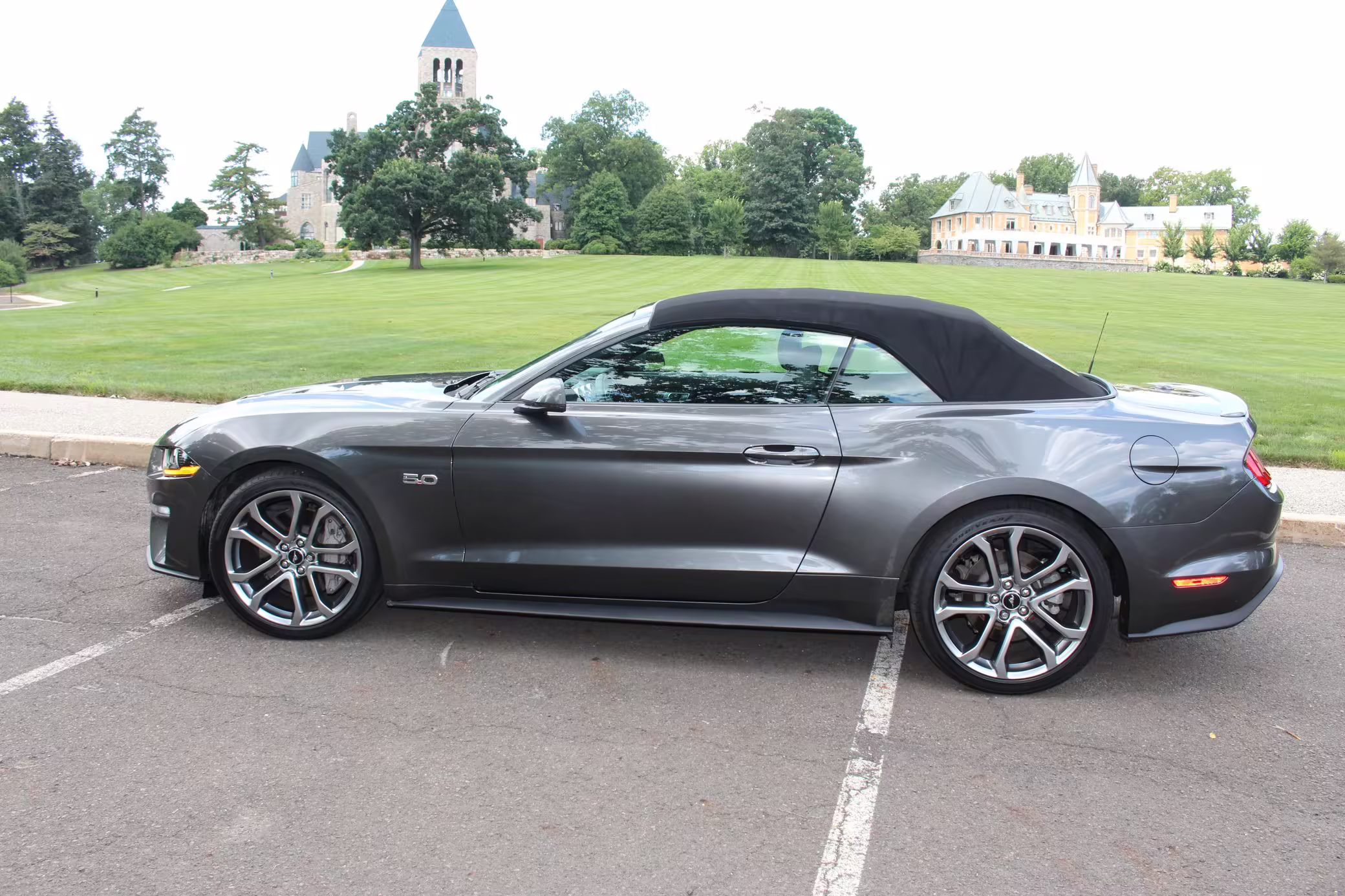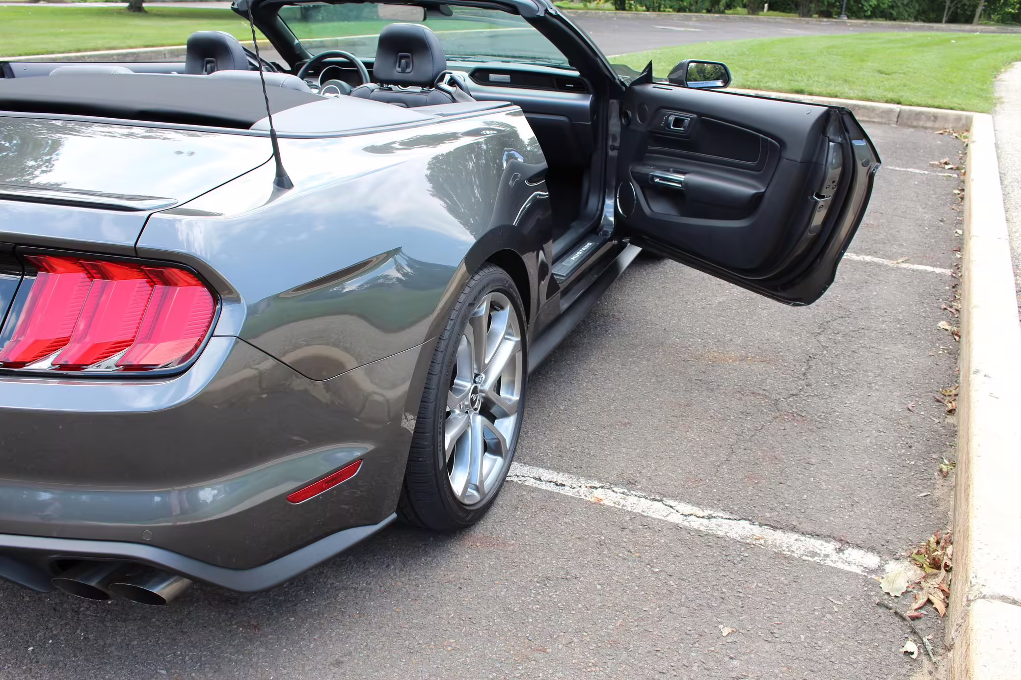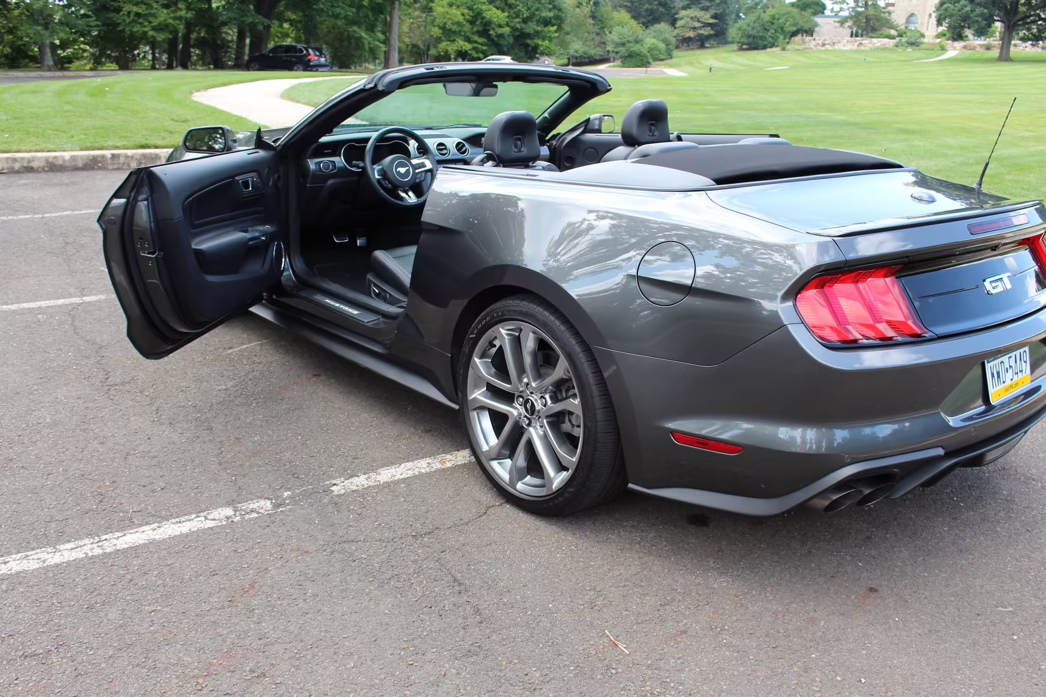 2018 Ford Mustang GT Convertible, finished in Gunmetal Grey with a black leather interior.