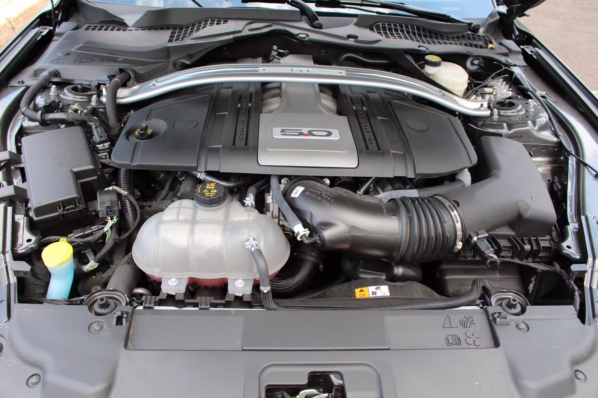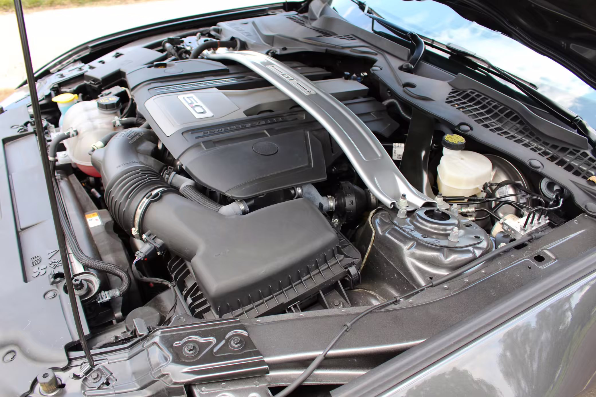 Power comes from a 5.0-liter Coyote V8, rated at 460 horsepower and 420 lb-ft of torque. Output is sent to the rear wheels through a 10-speed automatic transmission.