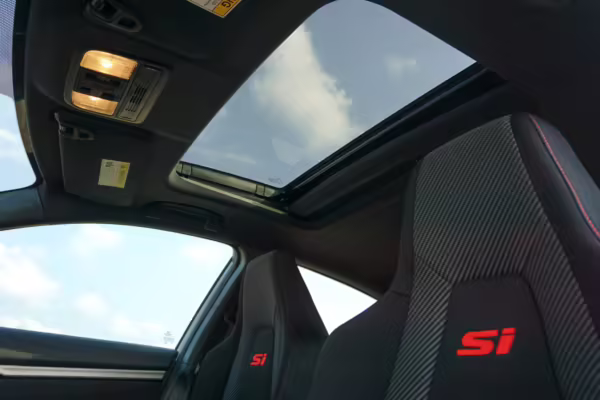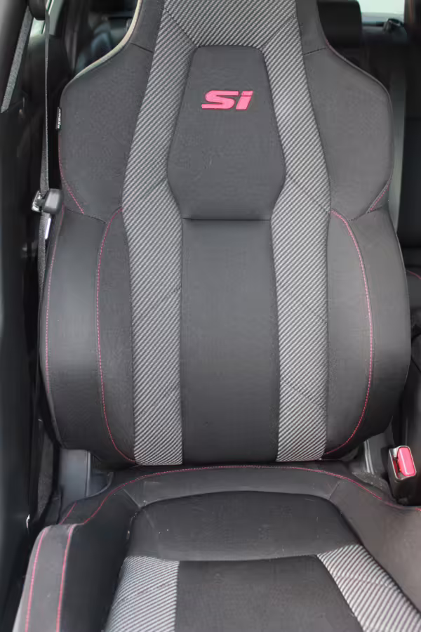 Factory equipment includes 18-inch wheels, a limited-slip differential, an Si-specific body kit, a sunroof, cloth upholstery, heated front sport seats, a 10-speaker sound system, and a 7-inch touchscreen for the infotainment system. The seller reports no modifications.