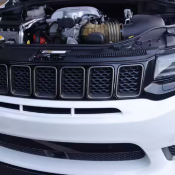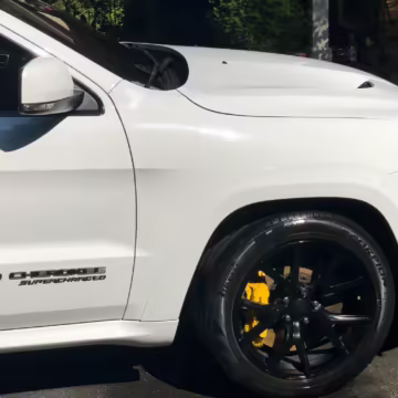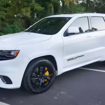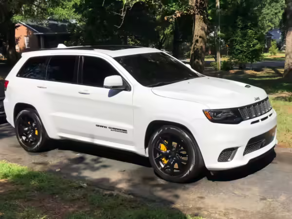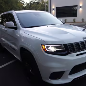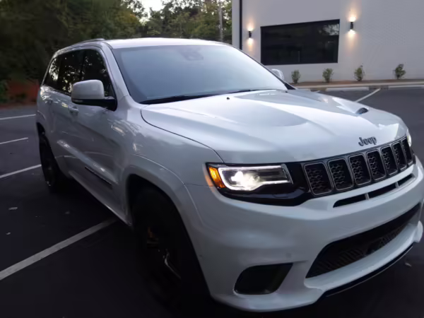 2018 Jeep Grand Cherokee Trackhawk, finished in Bright White with a black leather interior.