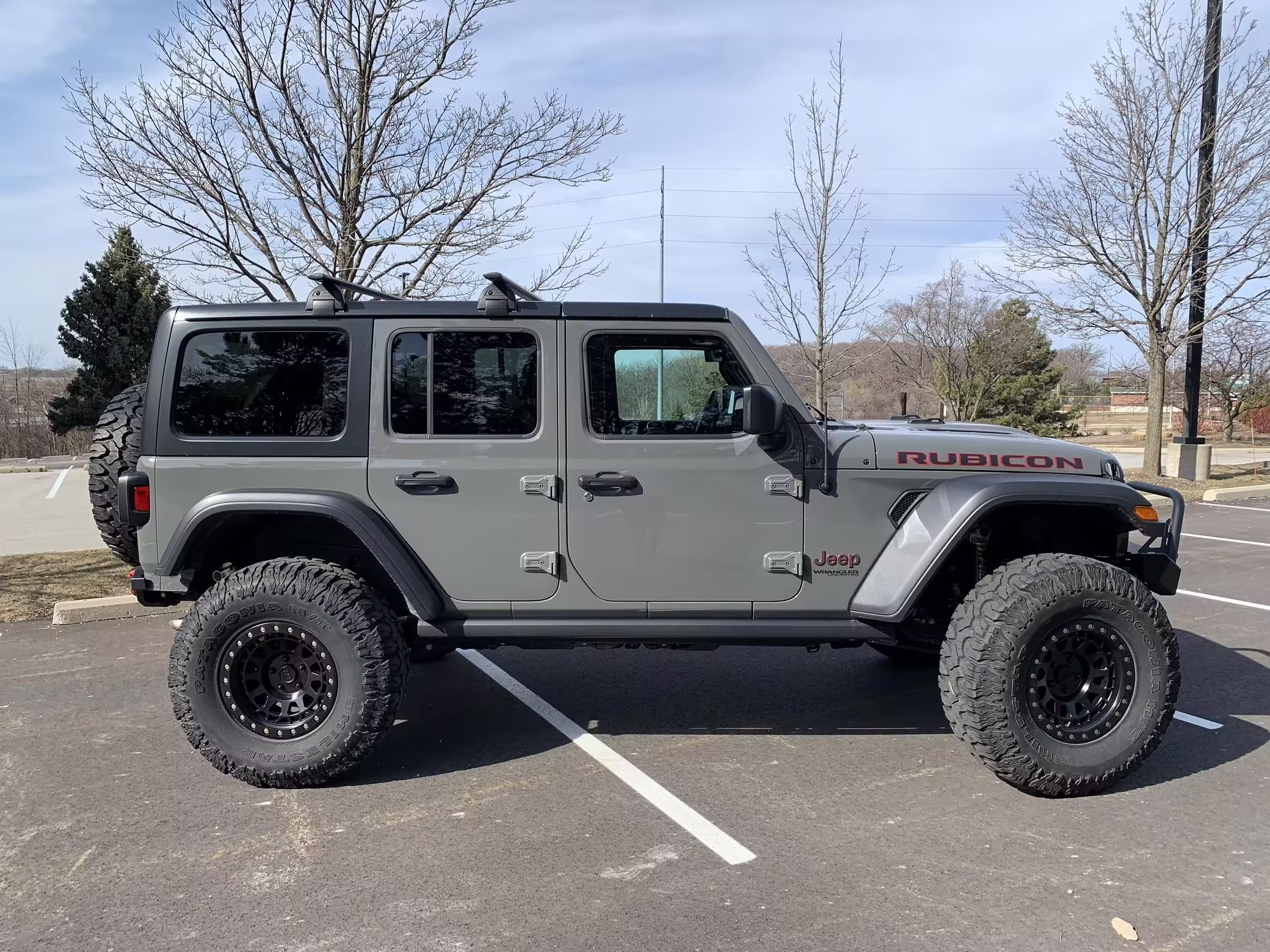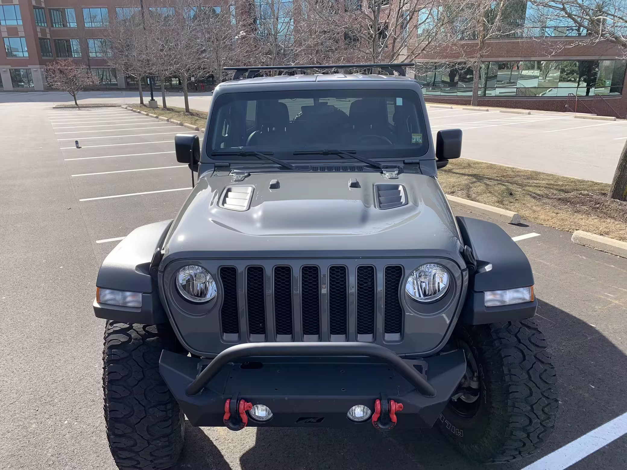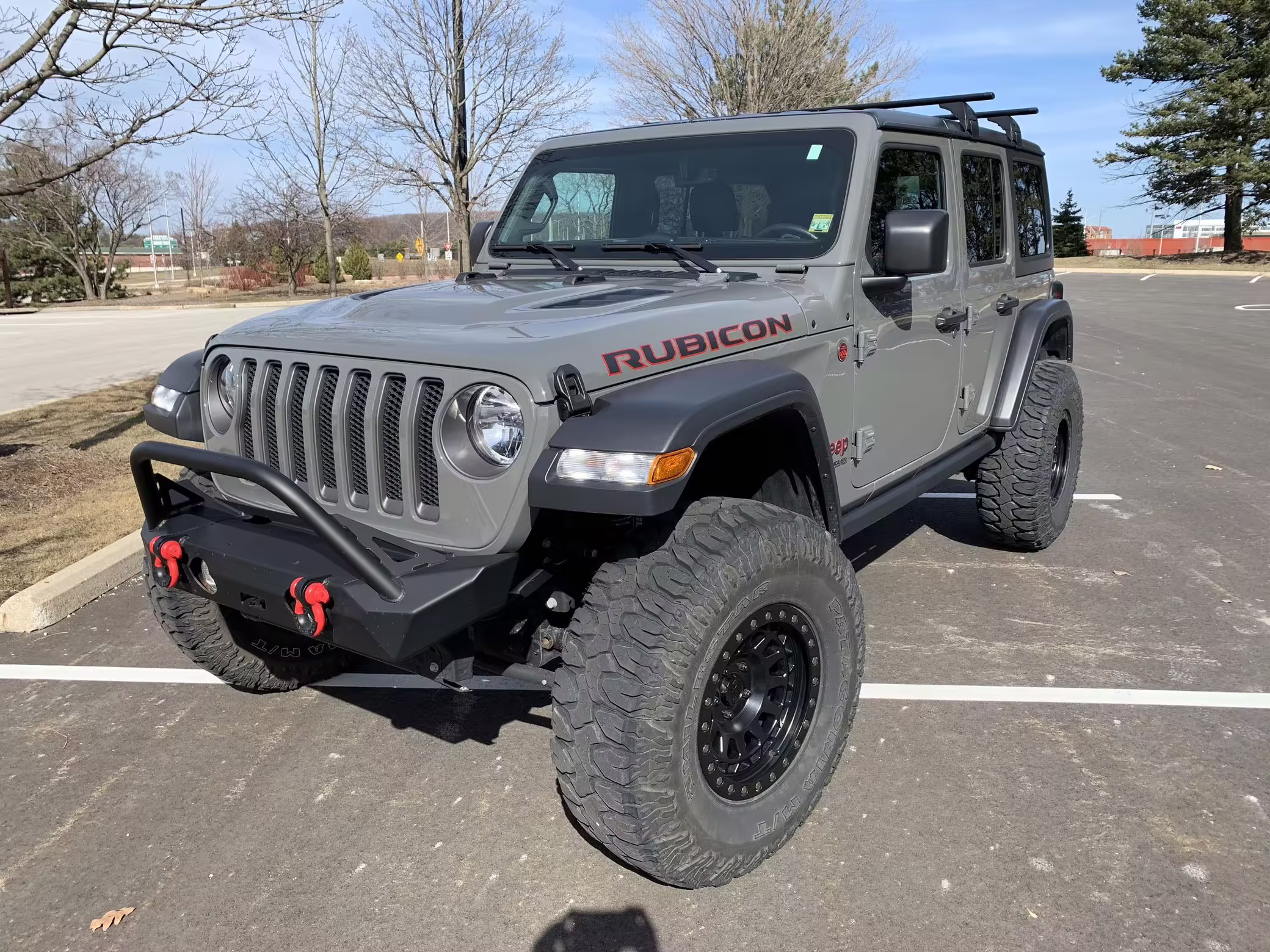 2018 Jeep Wrangler Unlimited Rubicon 4×4, finished in Sting Gray Clear Coat with a black leather interior.