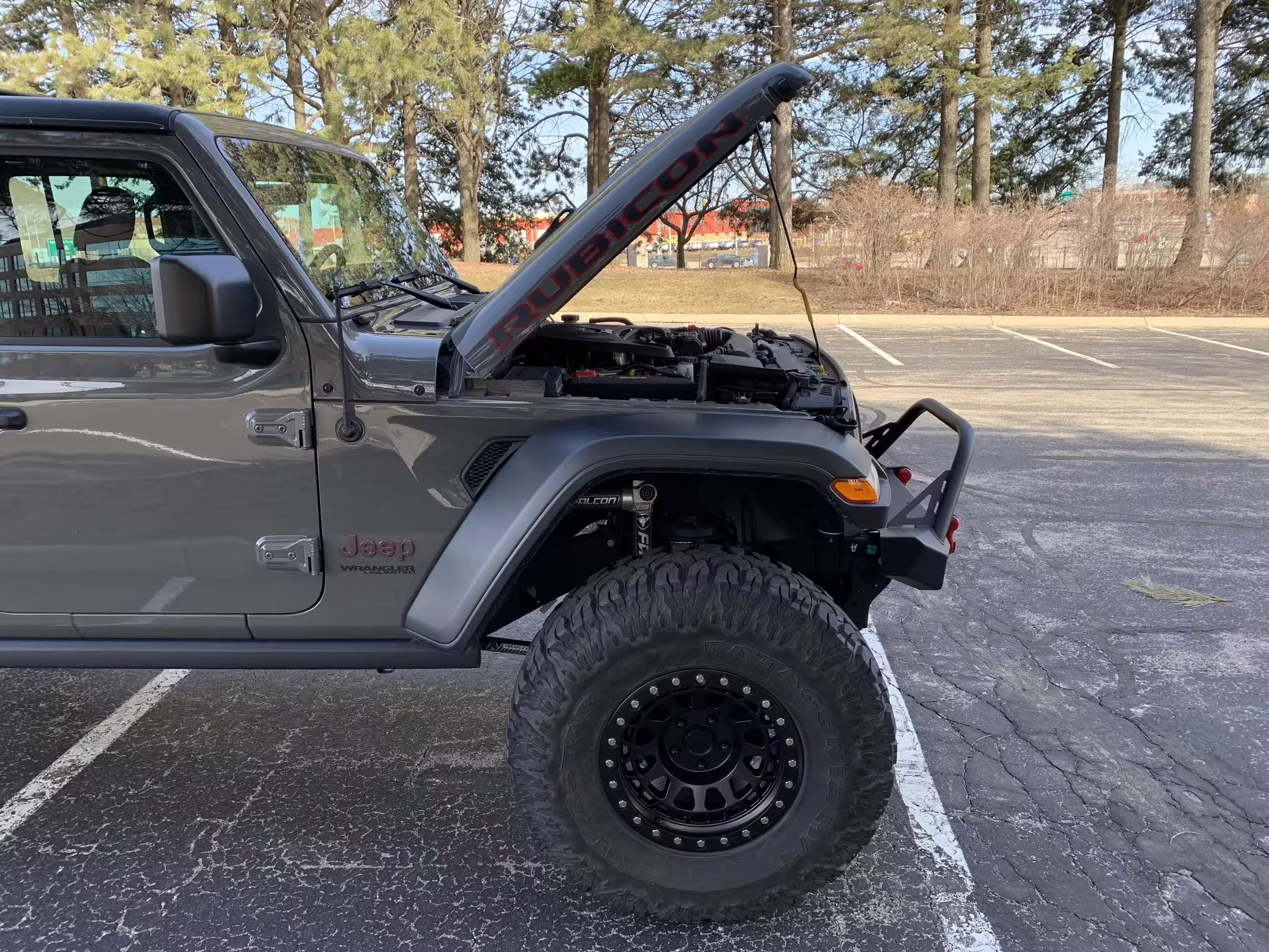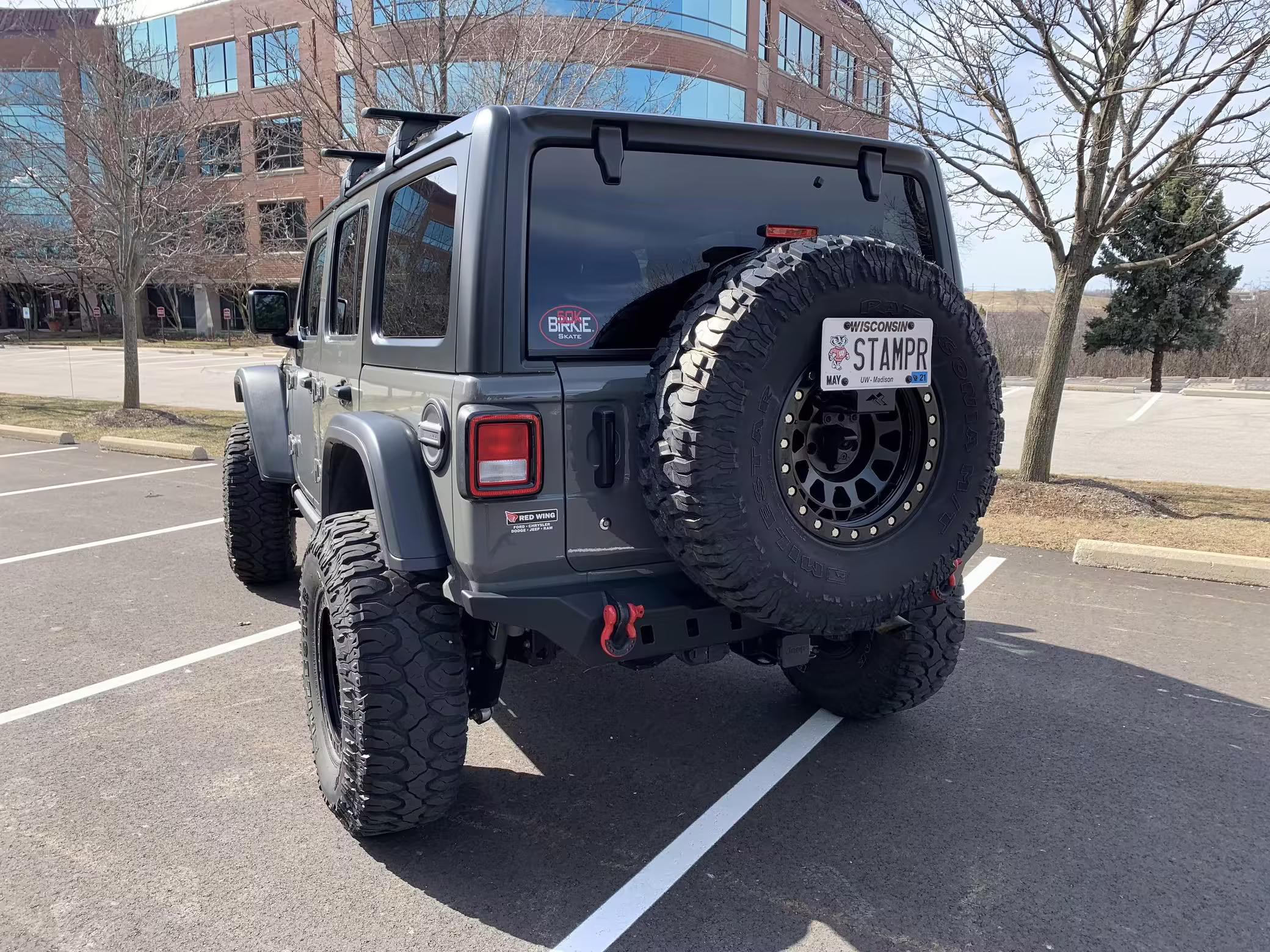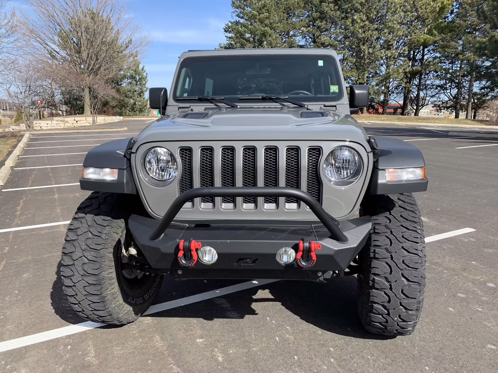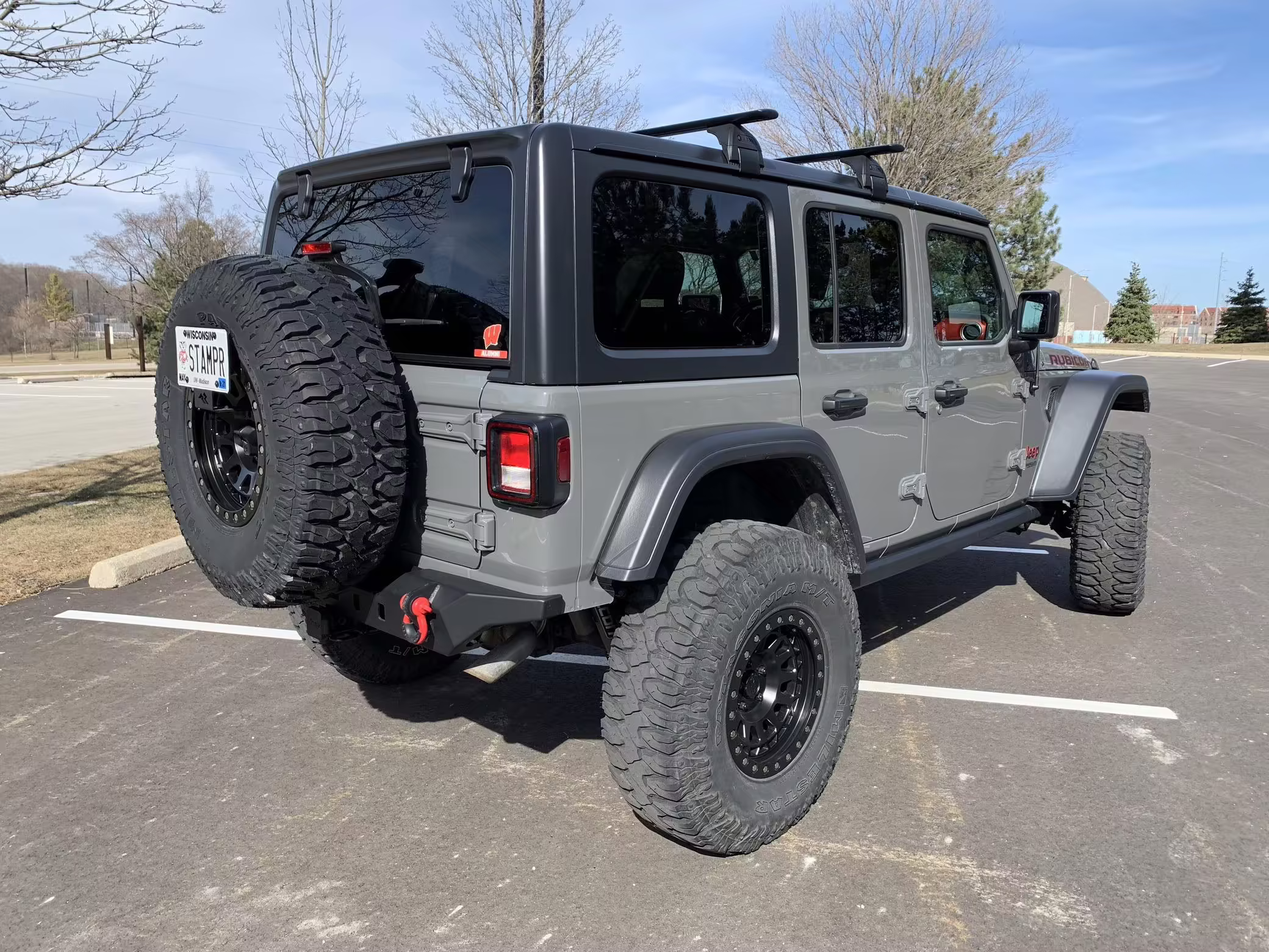 2018 Jeep Wrangler Unlimited Rubicon 4×4, finished in Sting Gray Clear Coat with a black leather interior.