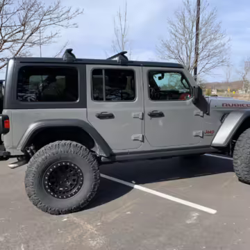 Now this is a cool Jeep! It’s a JL model, the newest Wrangler, which is a big deal, as it features better tech and comfort than the earlier JK. But this Wrangler also boasts some excellent modifications, including 37-inch tires and a lift. Other benefits here include 4-wheel drive, the 4-door “Unlimited” body style, and the fact that this Jeep is an off-road-ready Rubicon model.