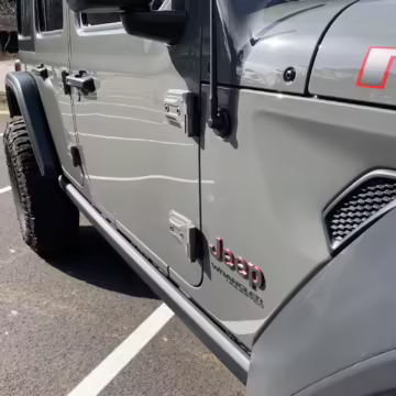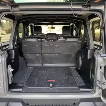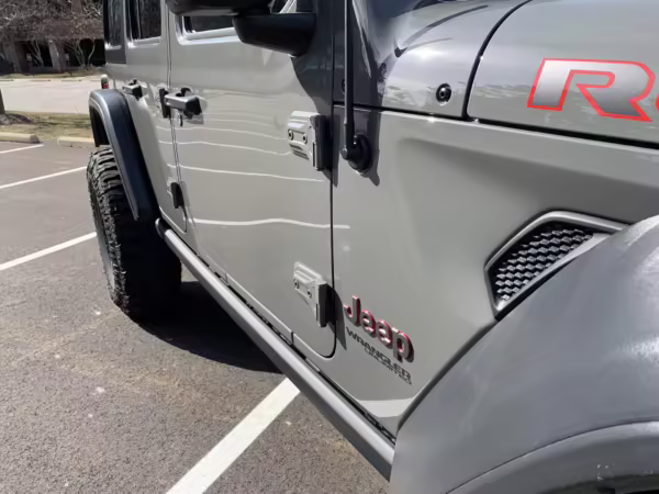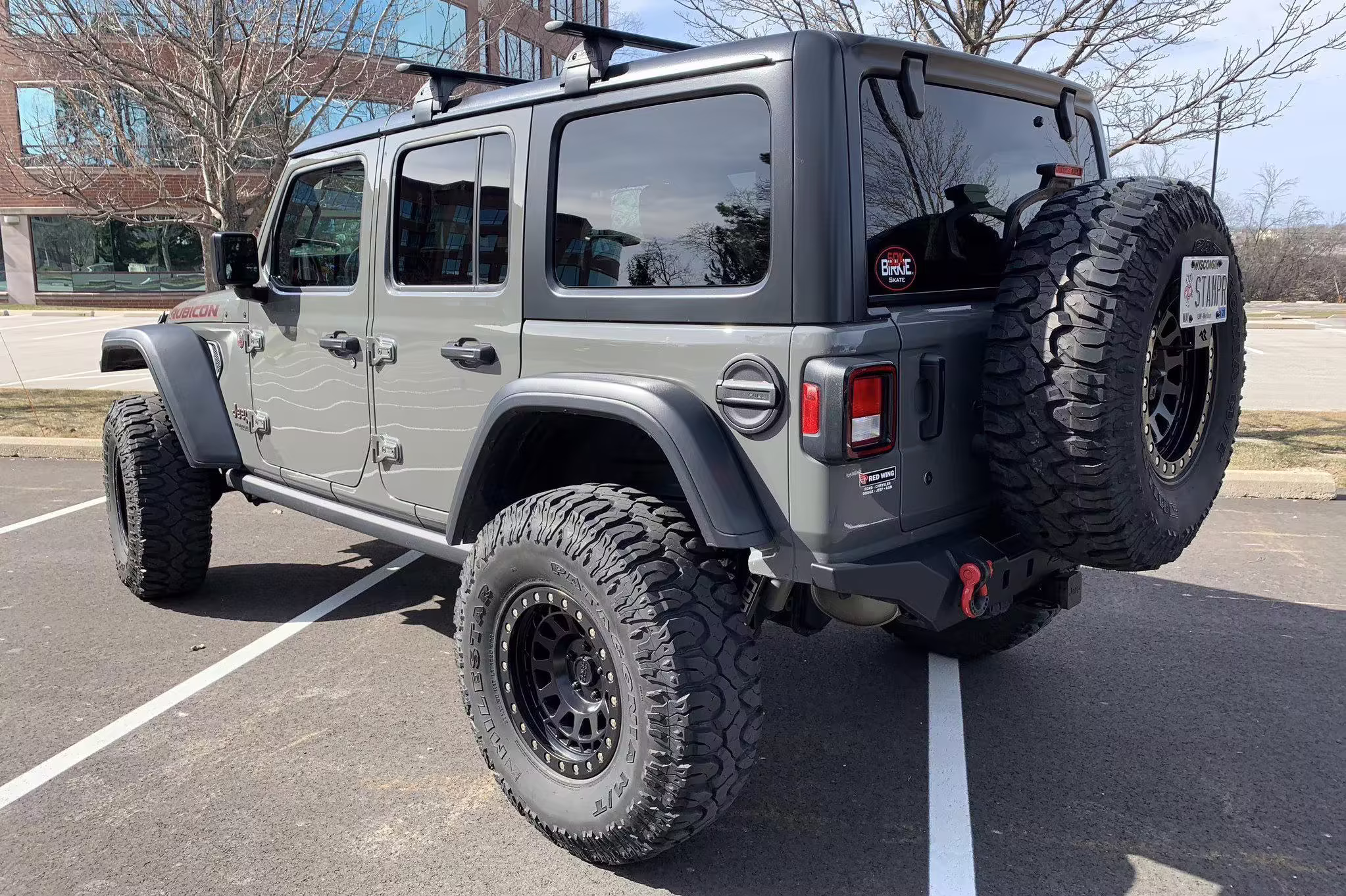 Launched in 2018, the fourth-generation JL Wrangler featured an updated exterior and interior design as well as a new optional 8-speed automatic transmission. The off-road-ready Rubicon trim level came equipped with Dana 44 axles, a front stabilizer-bar disconnect system, electronic locking differentials, rock rails, and high clearance fenders.