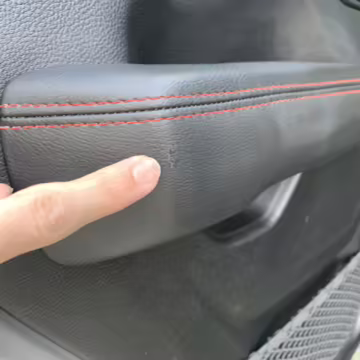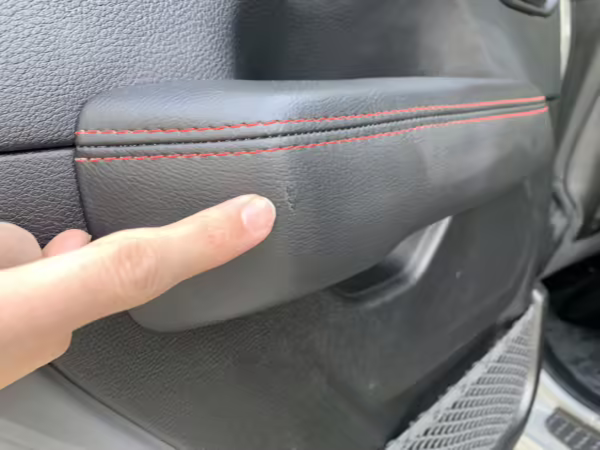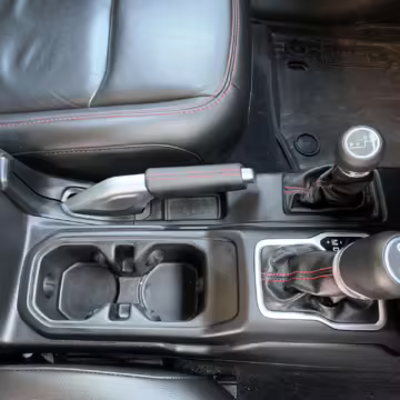 Leather-trimmed shift knob, park brake handle, center armrest, and door panels