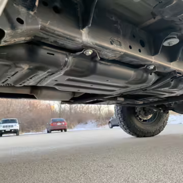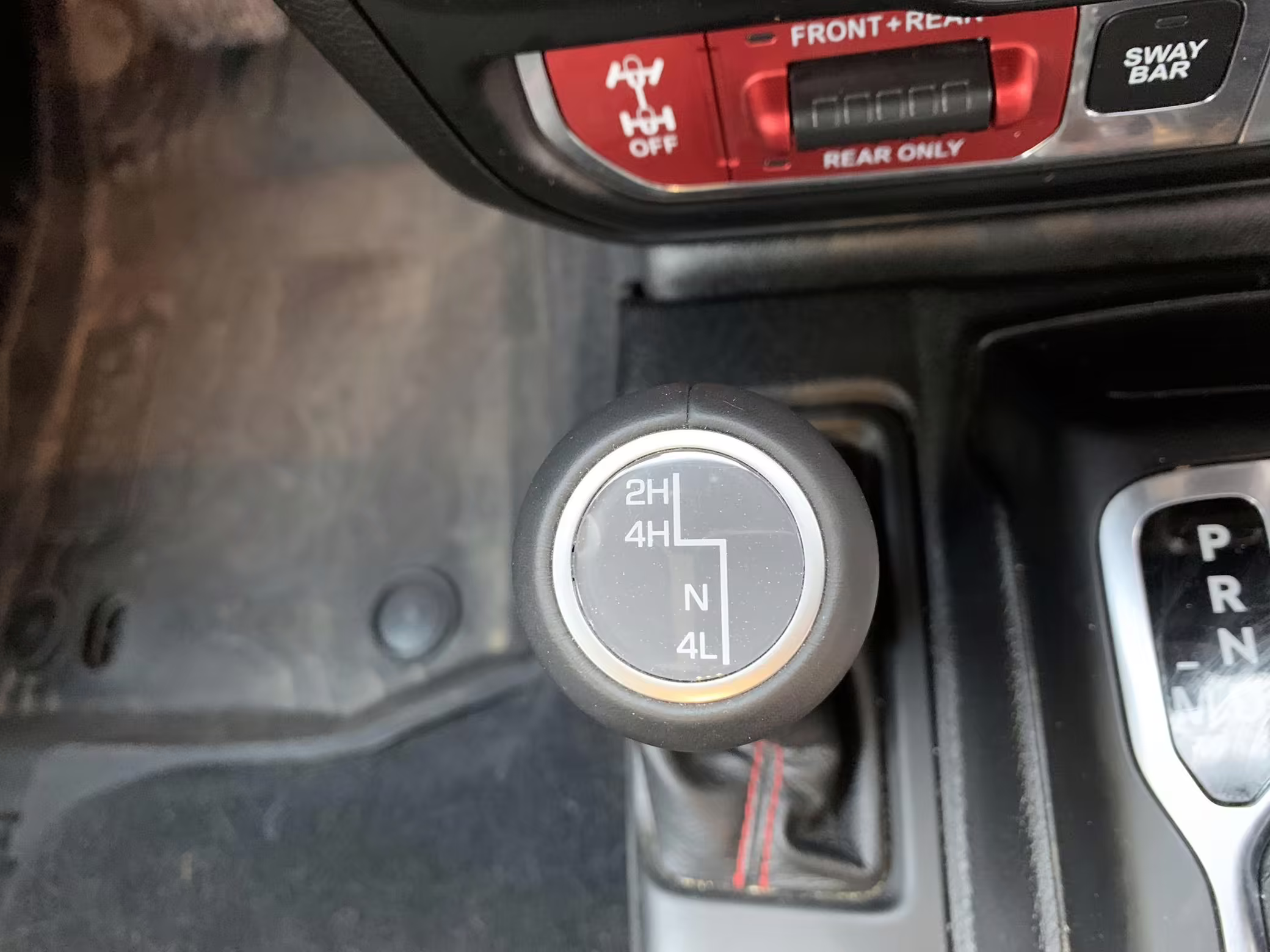 Power comes from a 3.6-liter “Pentastar” V6, which produces 285 horsepower and 260 lb-ft of torque. The engine spins the rear or all four wheels via an 8-speed automatic transmission and Rock-Trac 4WD system.