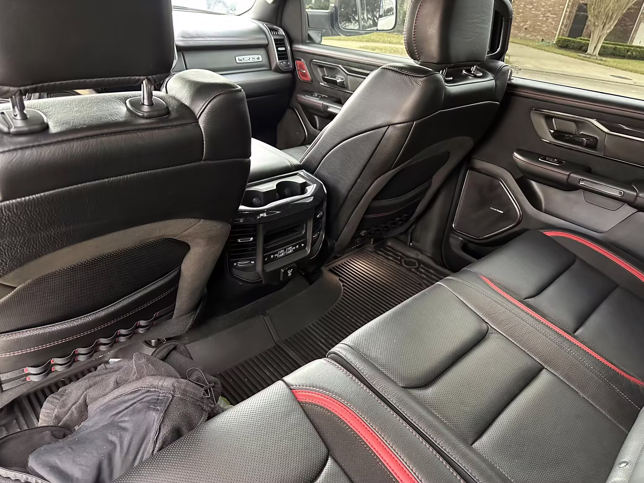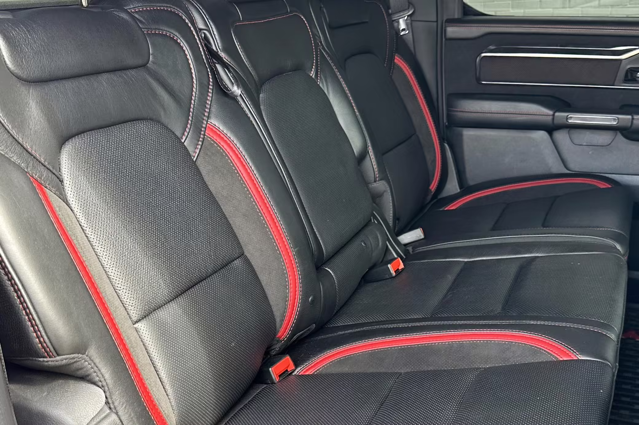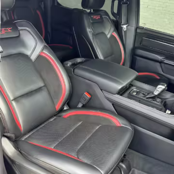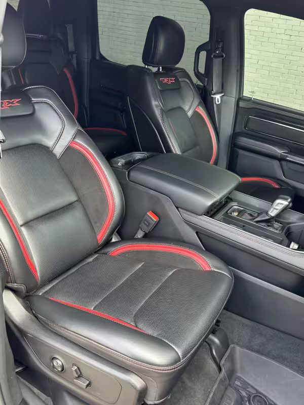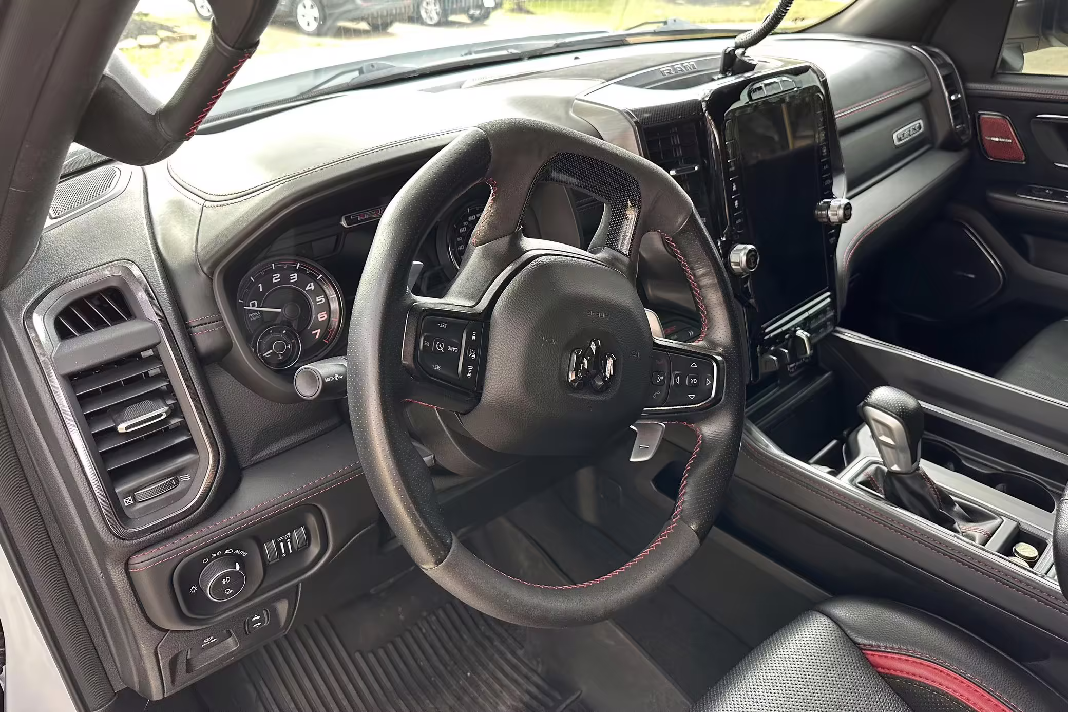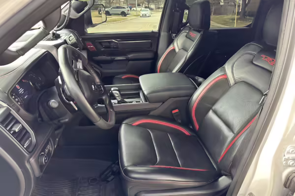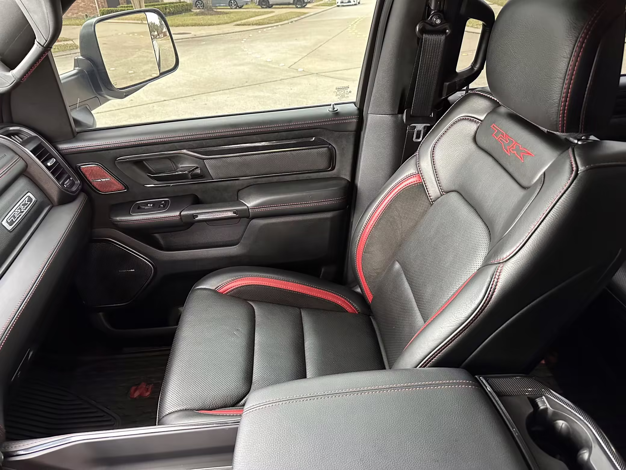 TRX Level 2 Equipment Group (leather-trimmed bucket seats, heated and ventilated front and rear seats, heated steering wheel, luxury front door trim panel, full-length premium upgraded floor console, premium wrapped instrument panel bezel, instrument panel LED ambient light piping, front and rear door accent lighting, memory driver’s seat, mirrors, pedals, and radio, power-adjustable lumbar support for the front seats, trailer brake controller, blind-spot monitoring with cross-path detection, front and rear park assist, LED box lighting, rain-sensing wipers, rear under-seat storage compartment, remote start, power tailgate, 60/40 split folding and reclining rear seats)