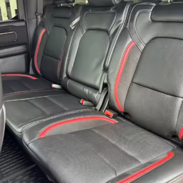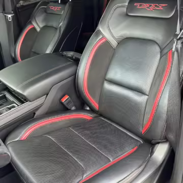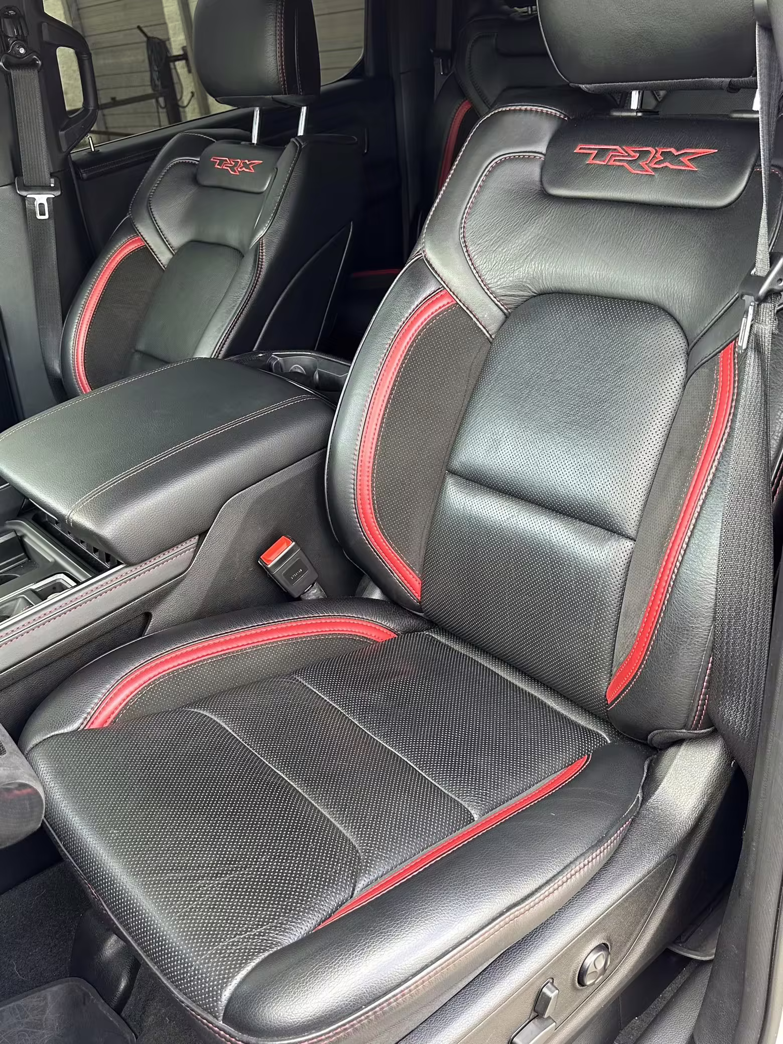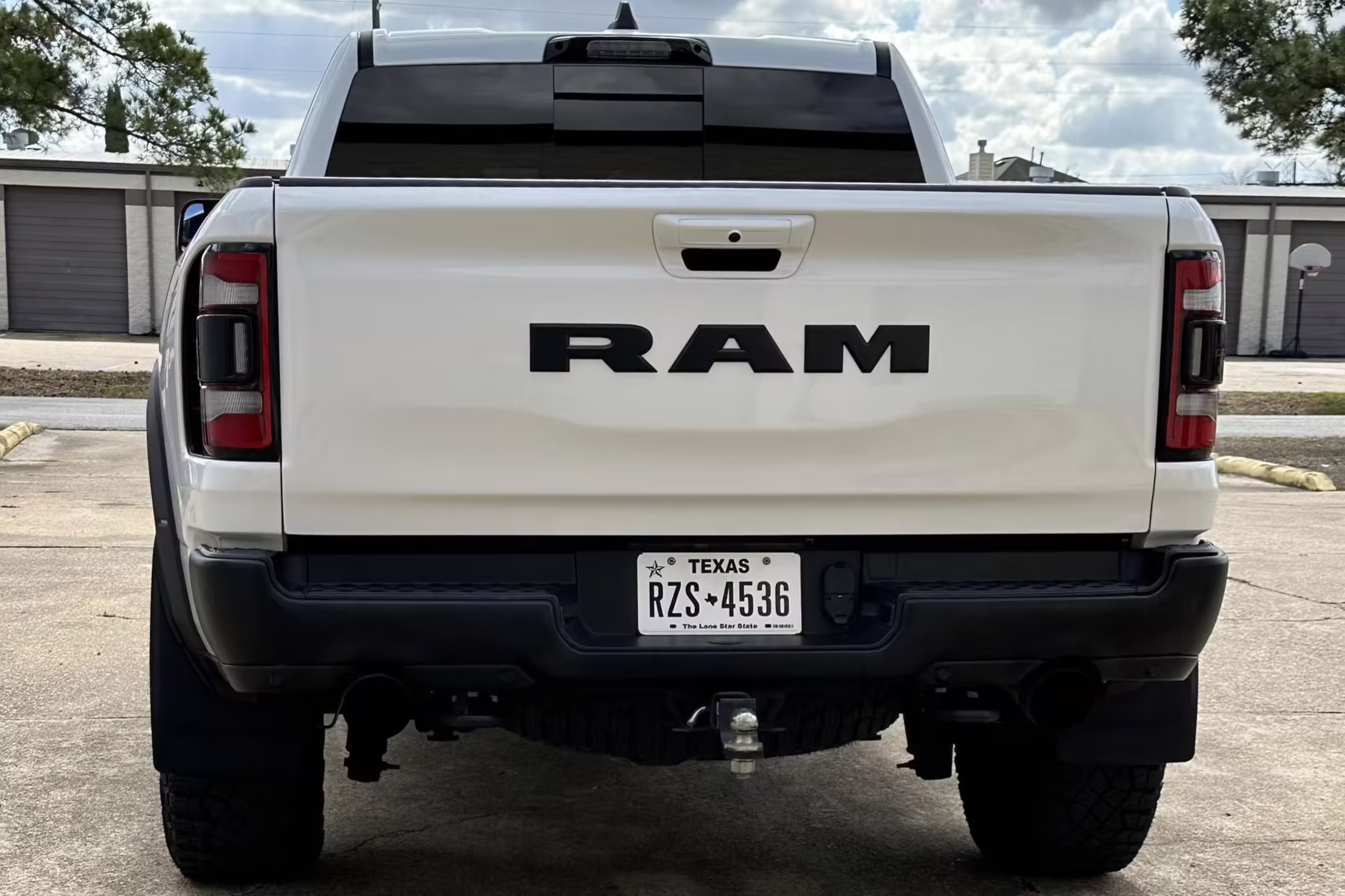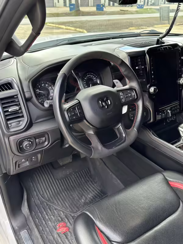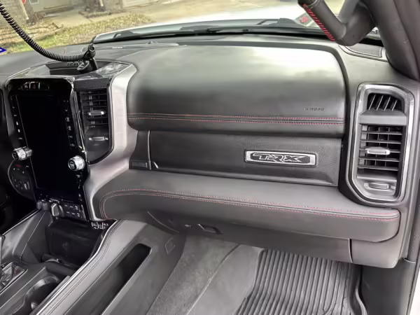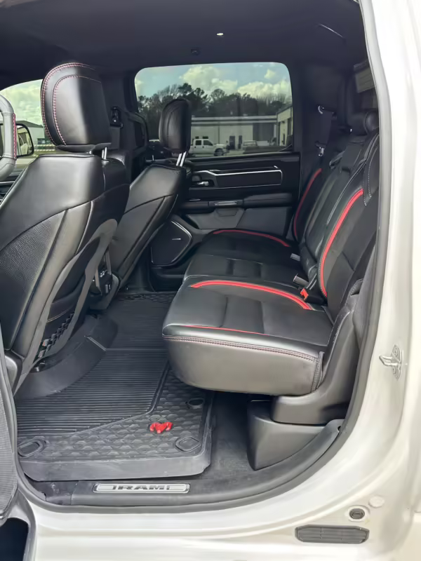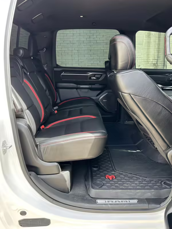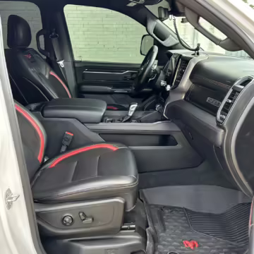 TRX Level 2 Equipment Group (leather-trimmed bucket seats, heated and ventilated front and rear seats, heated steering wheel, luxury front door trim panel, full-length premium upgraded floor console, premium wrapped instrument panel bezel, instrument panel LED ambient light piping, front and rear door accent lighting, memory driver’s seat, mirrors, pedals, and radio, power-adjustable lumbar support for the front seats, trailer brake controller, blind-spot monitoring with cross-path detection, front and rear park assist, LED box lighting, rain-sensing wipers, rear under-seat storage compartment, remote start, power tailgate, 60/40 split folding and reclining rear seats)