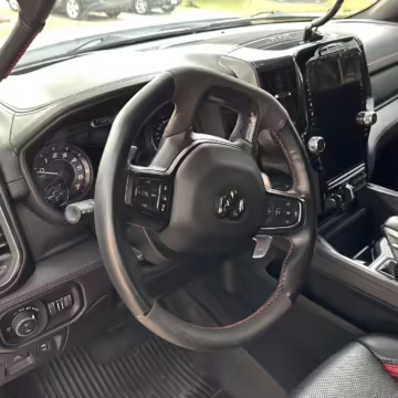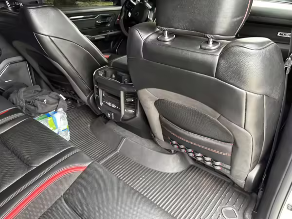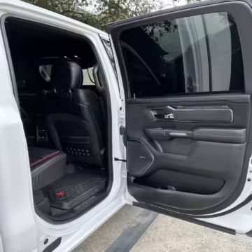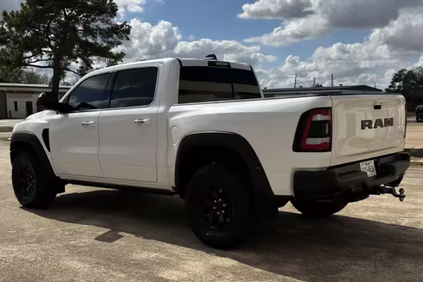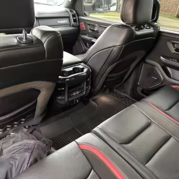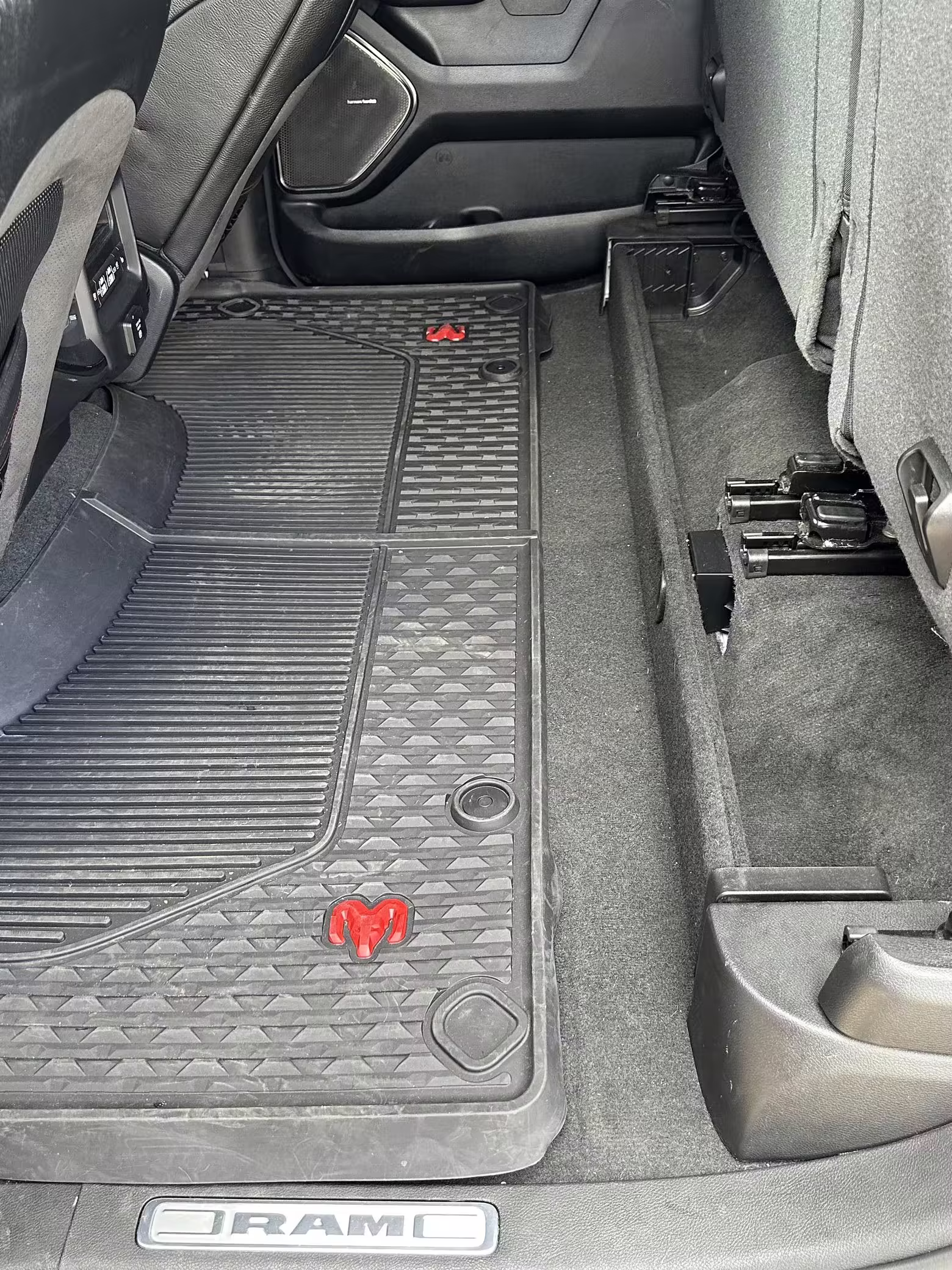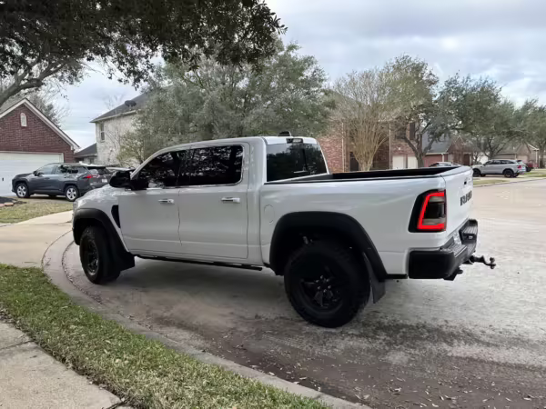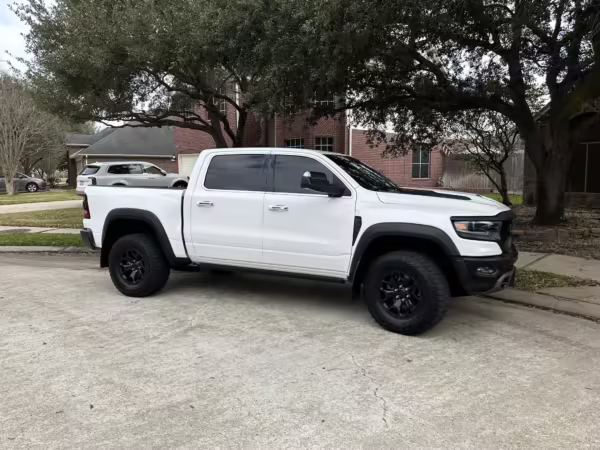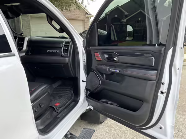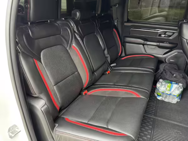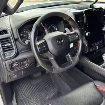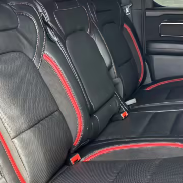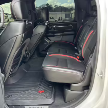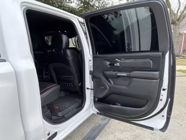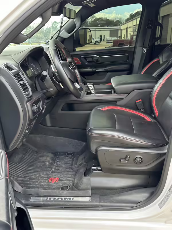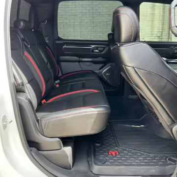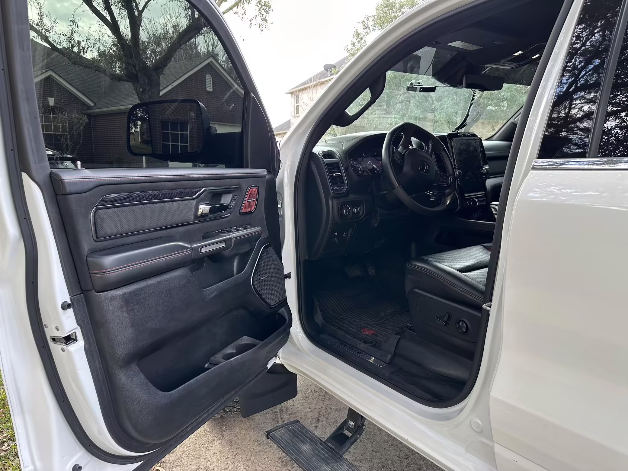 TRX Level 2 Equipment Group (leather-trimmed bucket seats, heated and ventilated front and rear seats, heated steering wheel, luxury front door trim panel, full-length premium upgraded floor console, premium wrapped instrument panel bezel, instrument panel LED ambient light piping, front and rear door accent lighting, memory driver’s seat, mirrors, pedals, and radio, power-adjustable lumbar support for the front seats, trailer brake controller, blind-spot monitoring with cross-path detection, front and rear park assist, LED box lighting, rain-sensing wipers, rear under-seat storage compartment, remote start, power tailgate, 60/40 split folding and reclining rear seats)