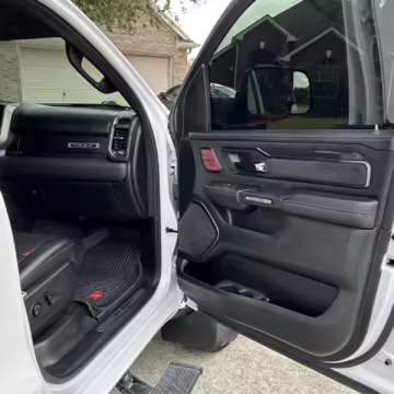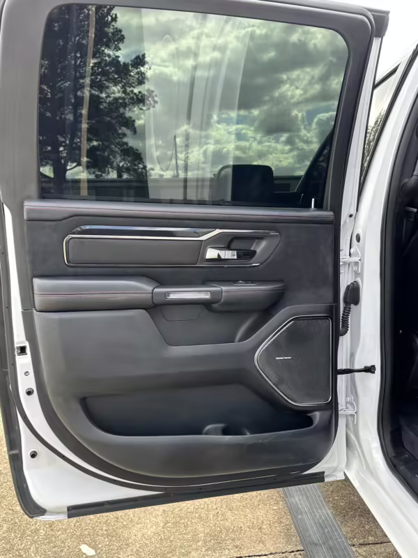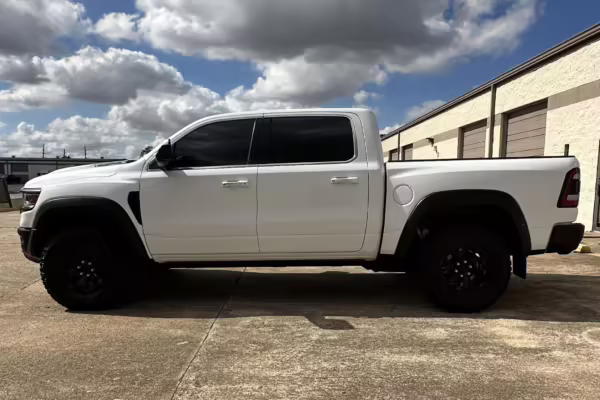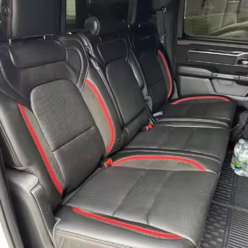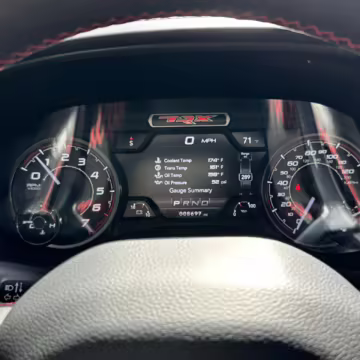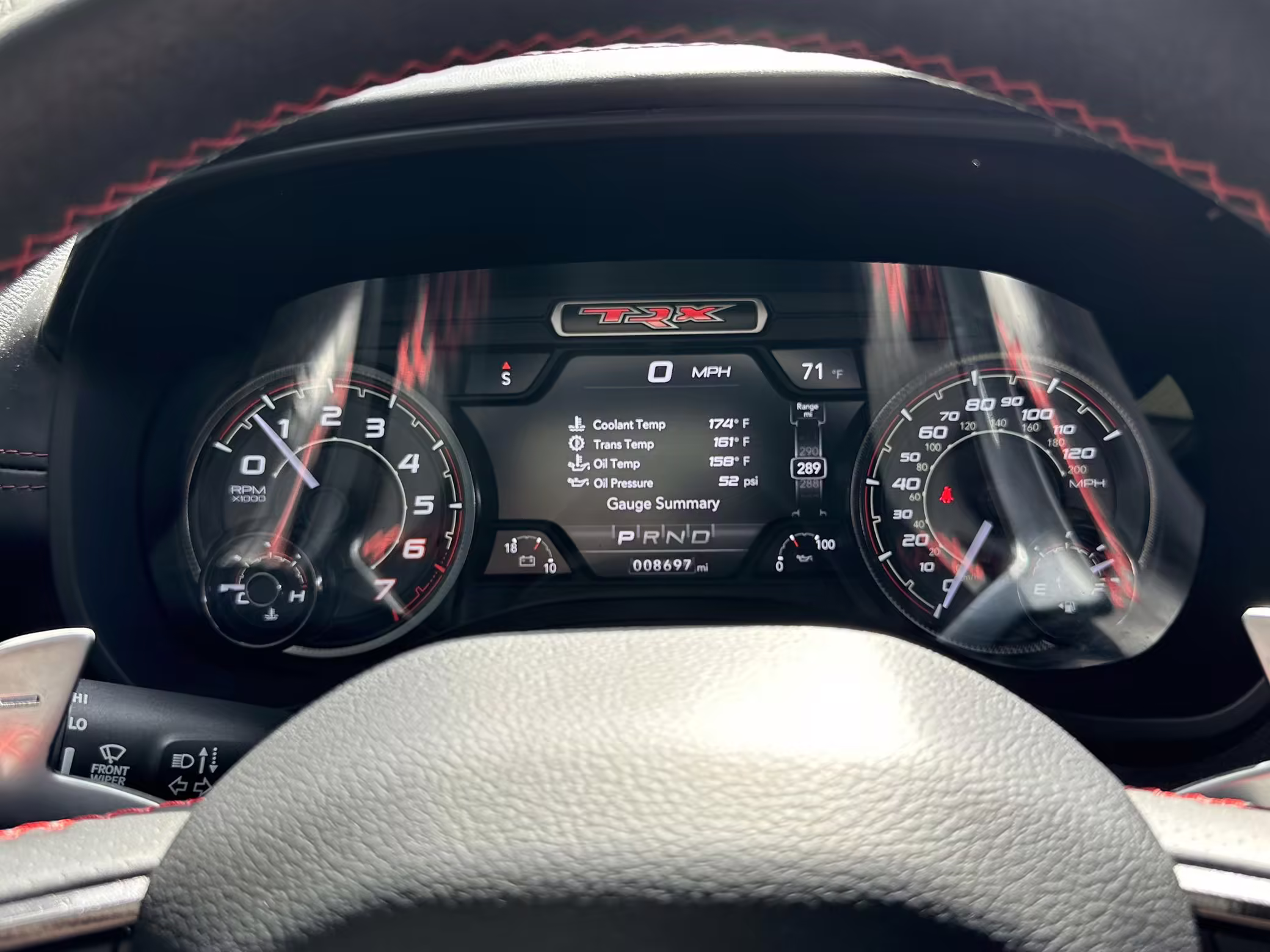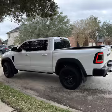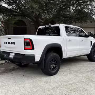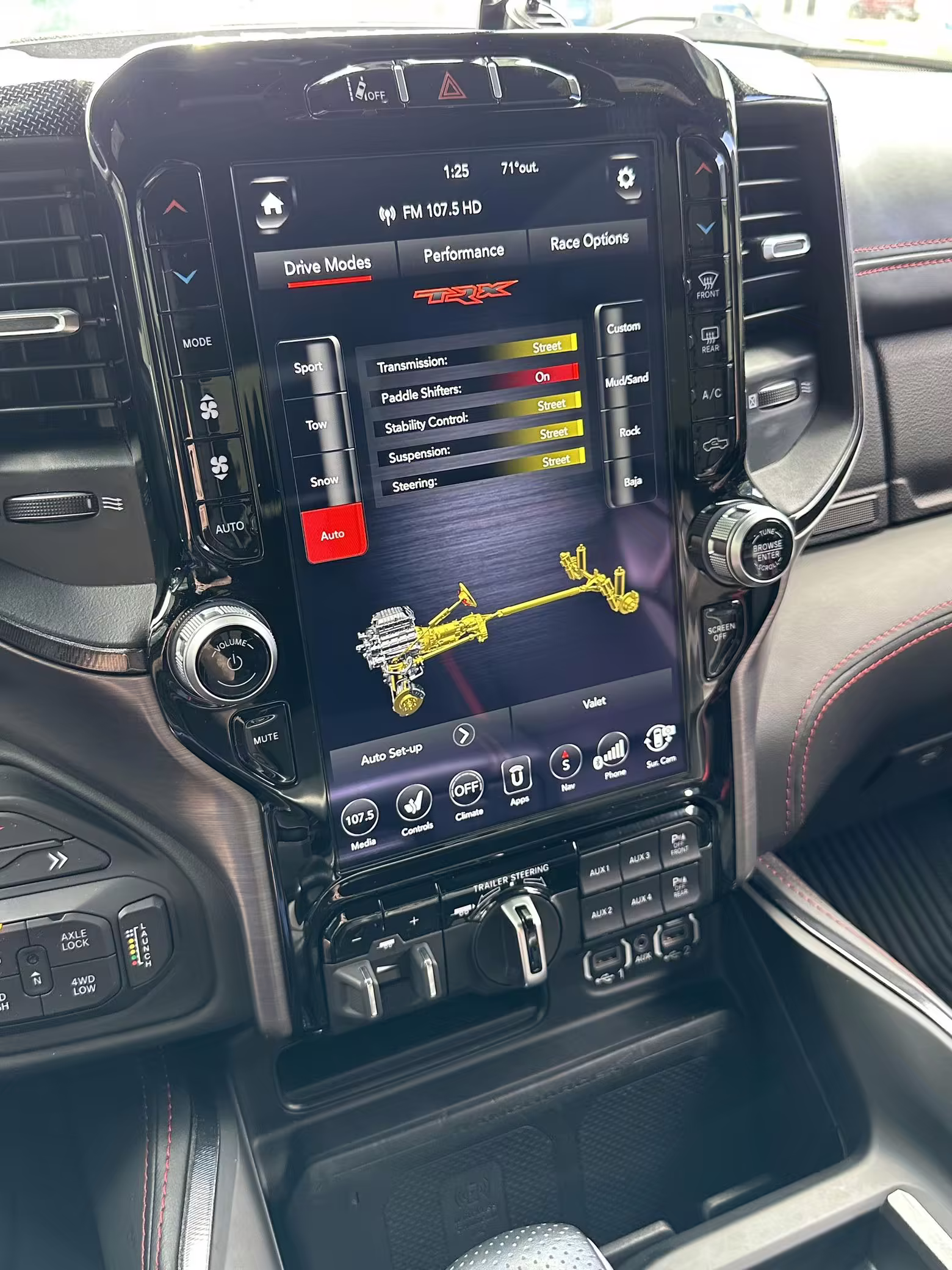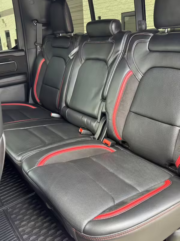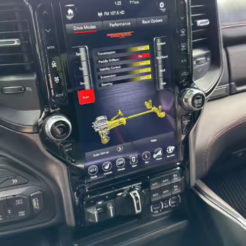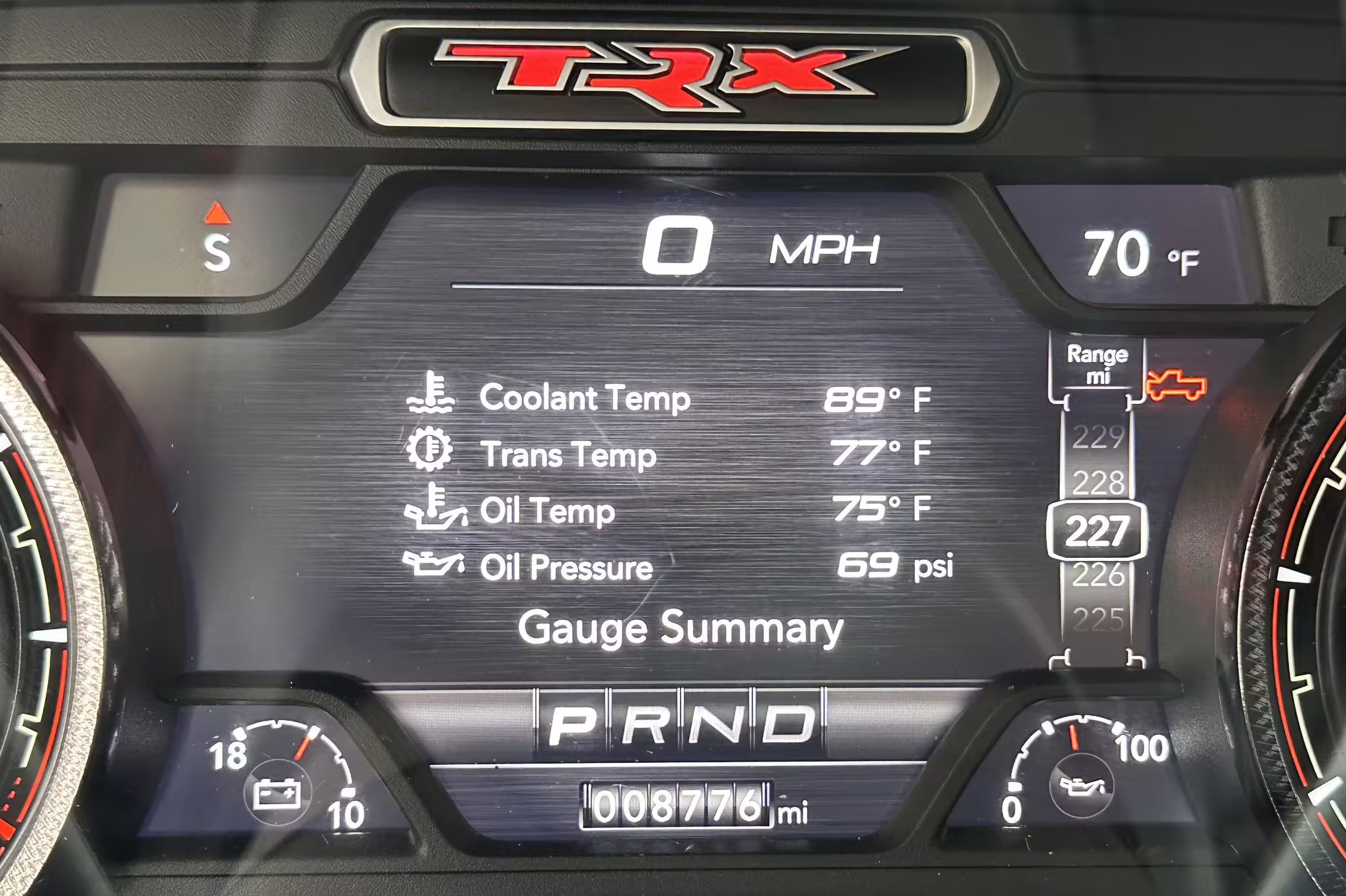 TRX Level 2 Equipment Group (leather-trimmed bucket seats, heated and ventilated front and rear seats, heated steering wheel, luxury front door trim panel, full-length premium upgraded floor console, premium wrapped instrument panel bezel, instrument panel LED ambient light piping, front and rear door accent lighting, memory driver’s seat, mirrors, pedals, and radio, power-adjustable lumbar support for the front seats, trailer brake controller, blind-spot monitoring with cross-path detection, front and rear park assist, LED box lighting, rain-sensing wipers, rear under-seat storage compartment, remote start, power tailgate, 60/40 split folding and reclining rear seats)