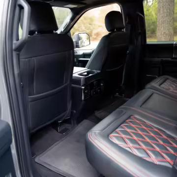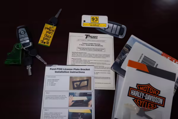 The Ford F-150 is a popular pickup truck with impressive capabilities and a wide array of available models intended to suit all needs. This particular F-150 has been modified as a Harley-Davidson Edition by Tuscany Motor Company, and it boasts an array of added equipment to enhance its looks and performance. Highlights include a supercharger, a BDS suspension lift with Fox Performance shocks, 22-inch “Fatboy Style” wheels, a Harley-Davidson tonneau cover, custom leather upholstery with orange diamond-pattern stitching, and so much more!