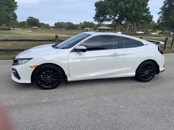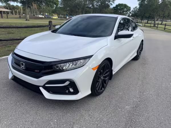 2020 Honda Civic Si Coupe, finished in Platinum Pearl White with a black interior.