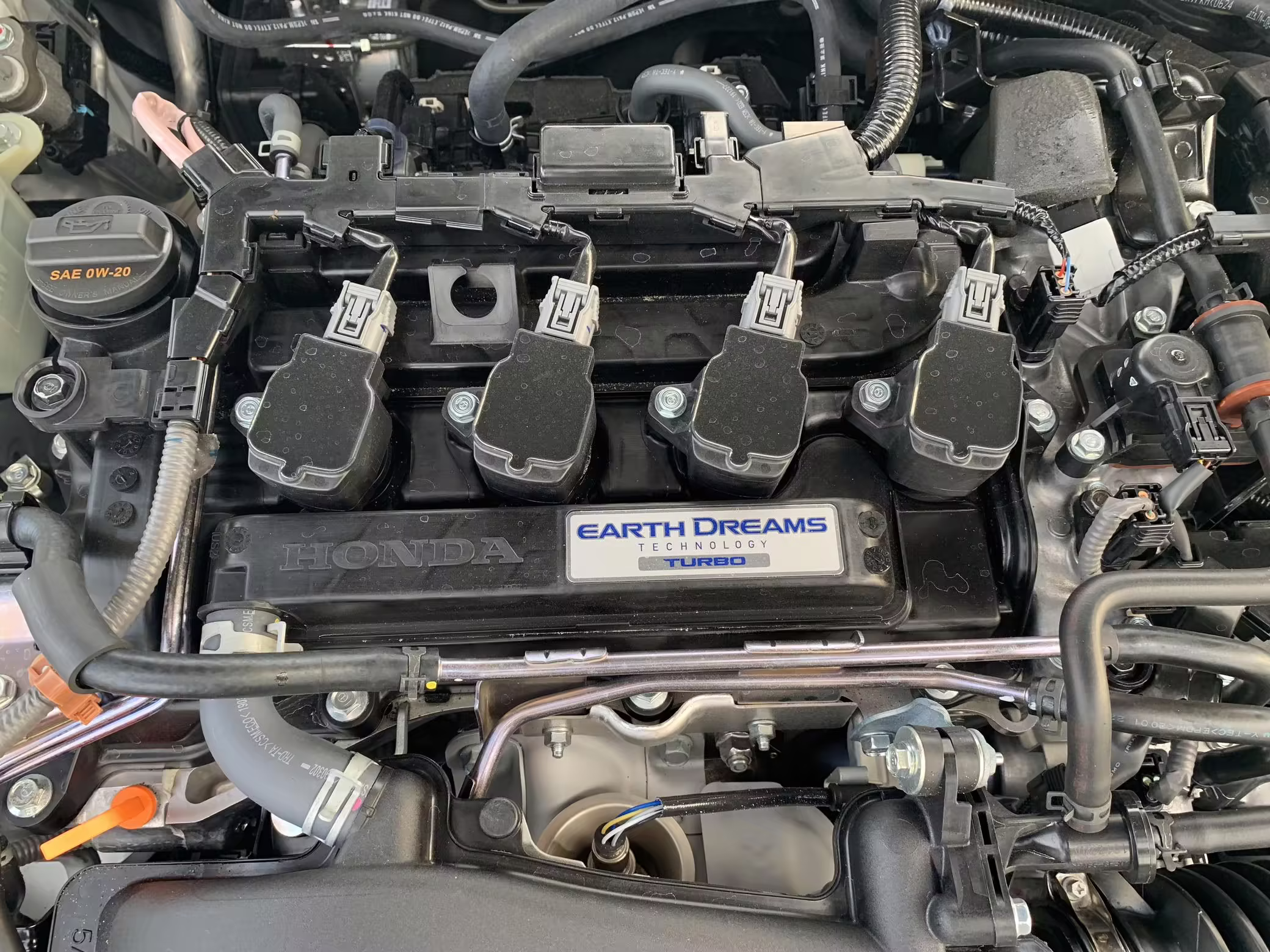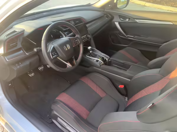 Power for this Civic Si comes from a 1.5-liter turbocharged 4-cylinder engine, which produces 205 horsepower and 192 lb-ft of torque. Part of the L-Series family of engines, it spins the front wheels via a 6-speed manual transmission.