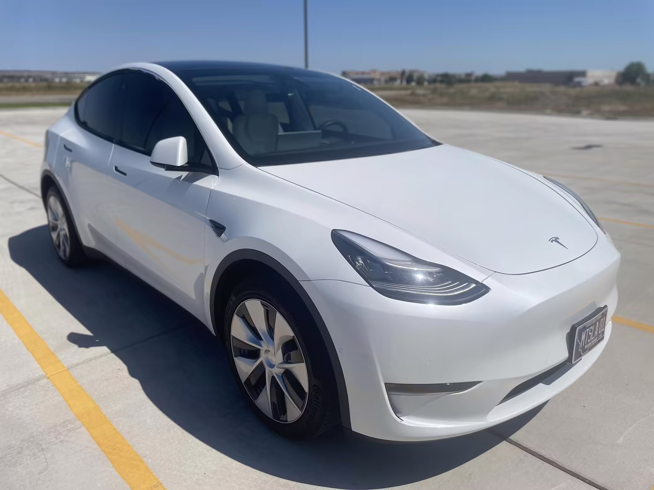 2020 Tesla Model Y Long Range AWD, finished in Pearl White Multi-Coat with a white and black interior.