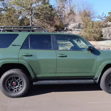 In fact, I consider this one of the best SUVs on sale – and, frankly, the North American version of the 70-Series Land Cruiser that everyone says they want, except this is better. I say that because it’s similarly capable – but it touts more equipment, and it’s still relatively simple to own, ensuring reliability. The TRD Pro is especially desirable, boasting some fantastic off-roading accessories and cosmetic upgrades compared to the standard model. This 4Runner is also finished in maaaaaybe the best TRD Pro color – wonderful Army Green, which helps this SUV stand out further.