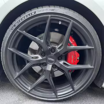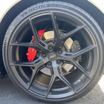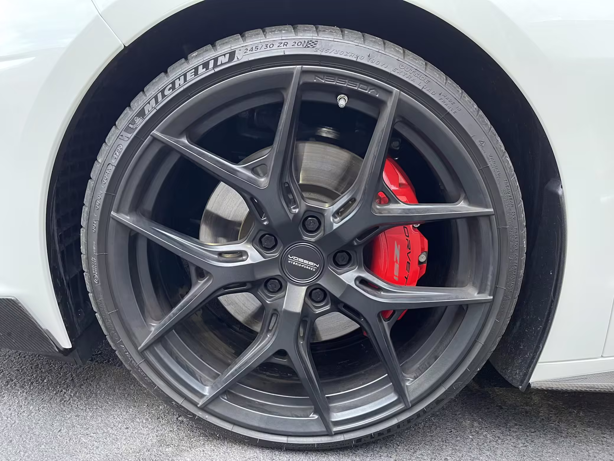 The seller has modified this modified with a staggered set of Vossen HF-5 wheels, paint protection film in the high-impact areas, and a limited edition Hennessey Performance exhaust.