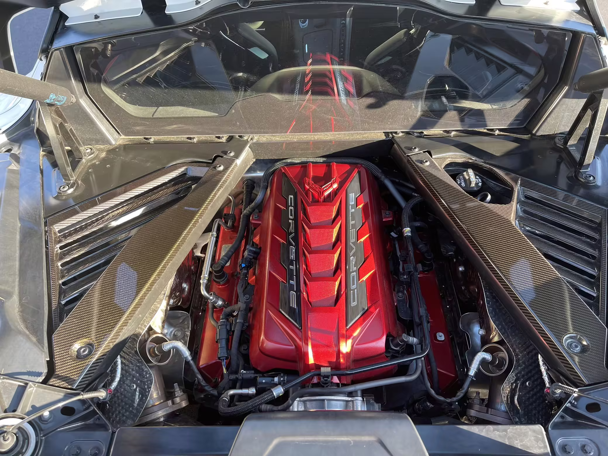 Power comes from a 6.2-liter “LT2” V8, rated at 495 horsepower and 470 lb-ft of torque. Due to the modifications performed to this Corvette, it may produce more power, but a dyno sheet was not provided to confirm. It spins the rear wheels via an 8-speed dual-clutch automatic transmission.