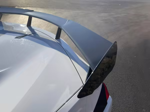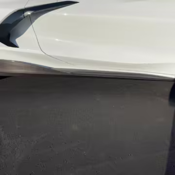 Paint protection film applied to the front bumper, hood, front fenders, side mirrors, A-pillars, the bottom half of each door, behind the rear wheels, and on the wing.