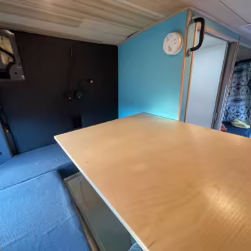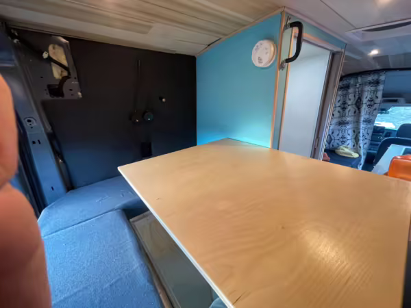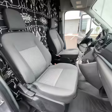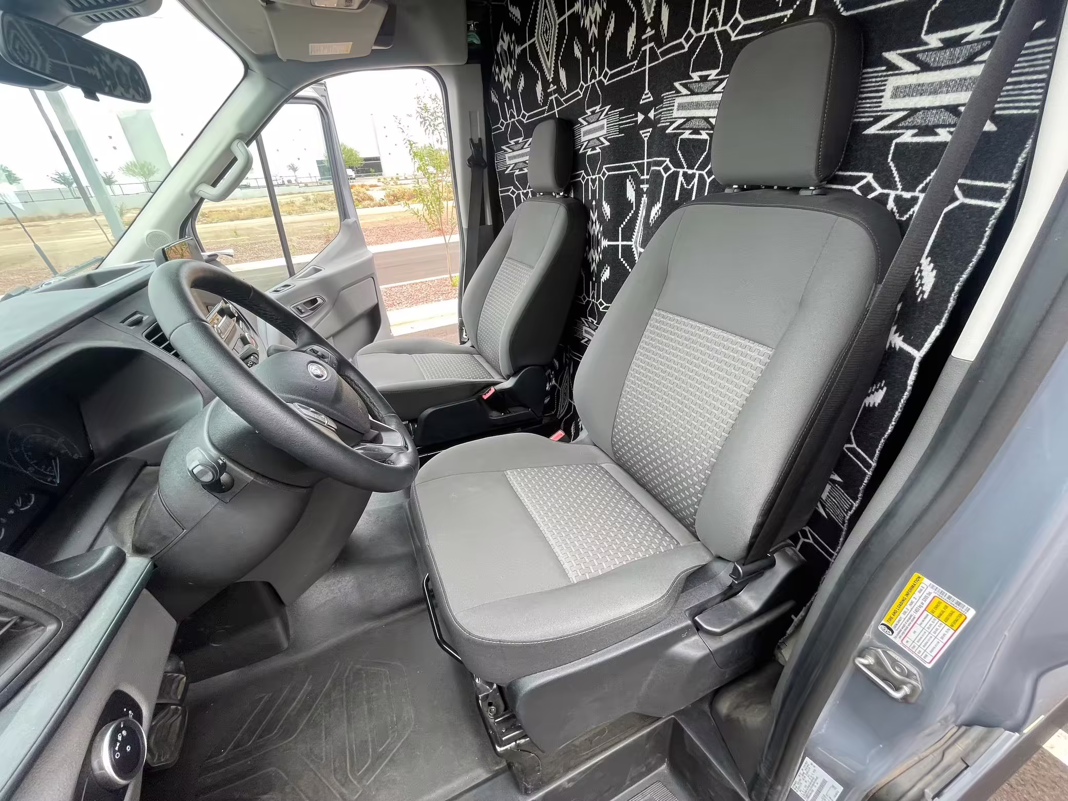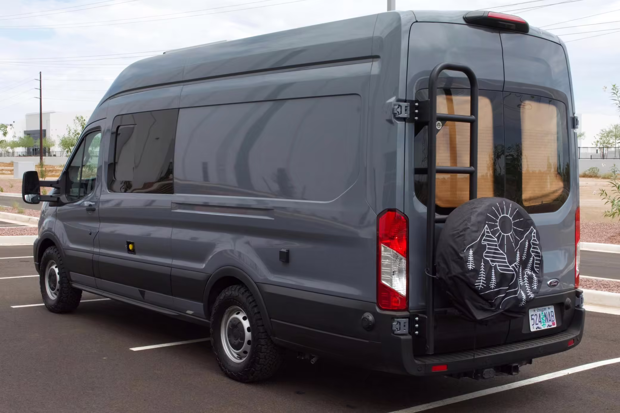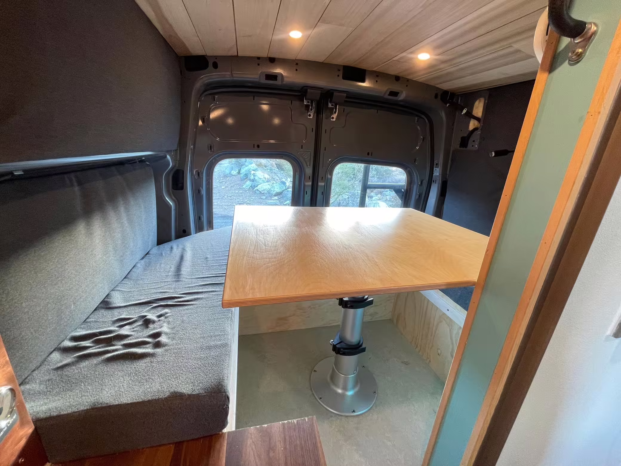 This Transit has been converted to a custom camper van. Modifications reported by the seller include 2 100-watt solar panels, a 12.5-foot wide and 7-foot extending Fiamma F80s awning, a rear sleeping and dining area with convertible 6-foot queen-size bed, a 6-drawer kitchen galley with hold-down straps, a CAN Campervan two-burner propane cooktop with sink, and more as detailed below.
