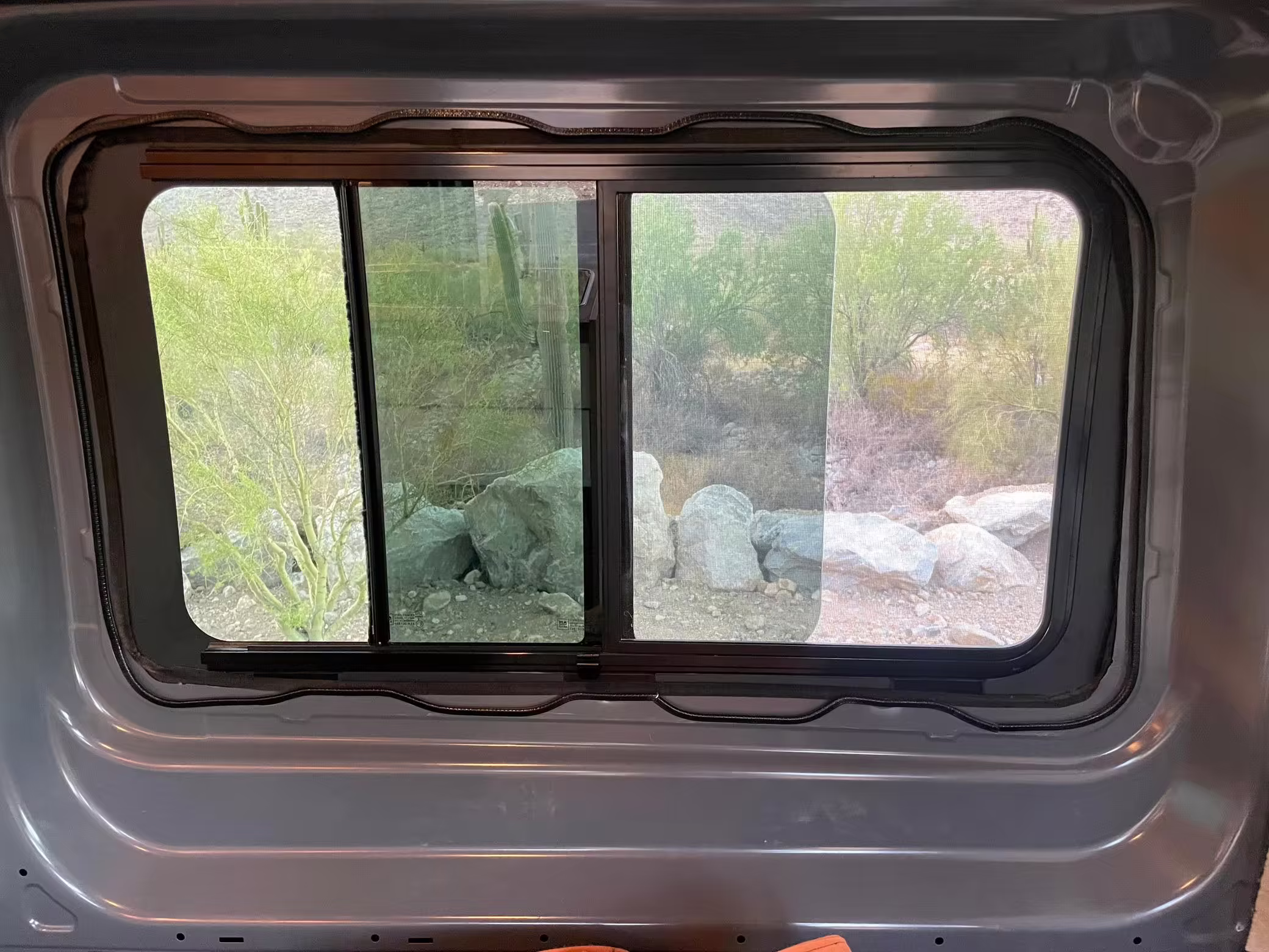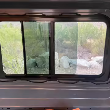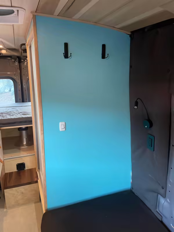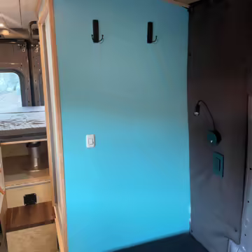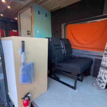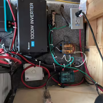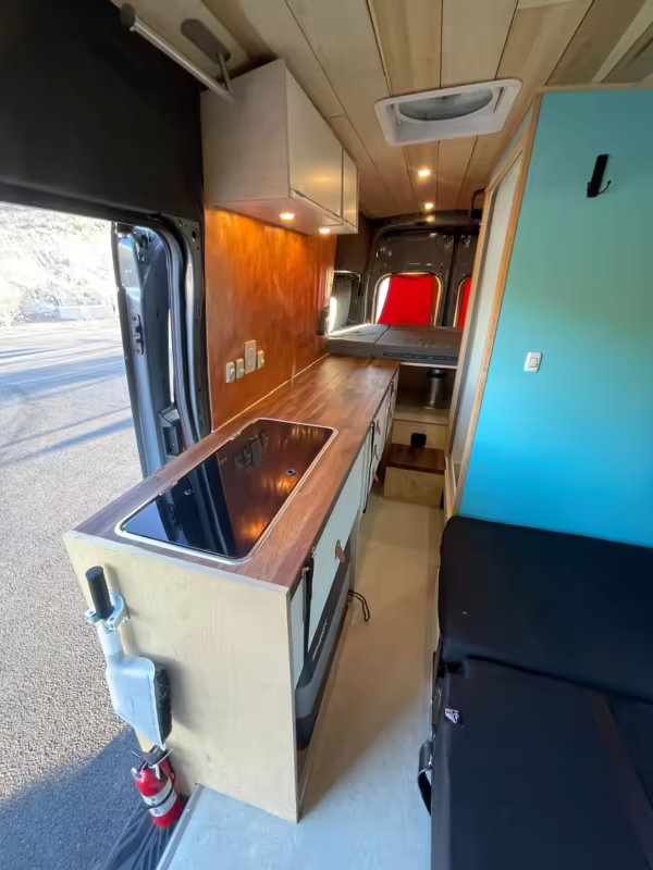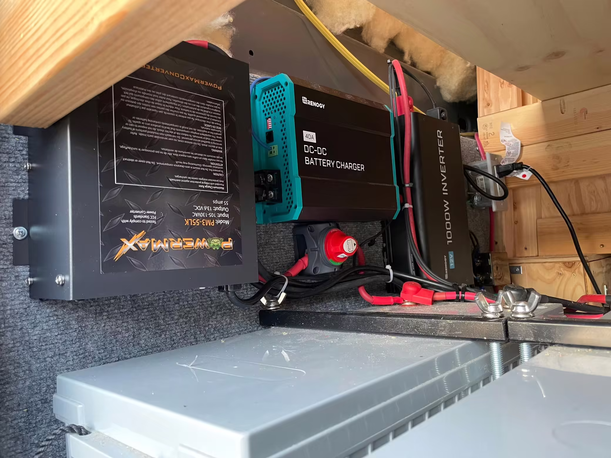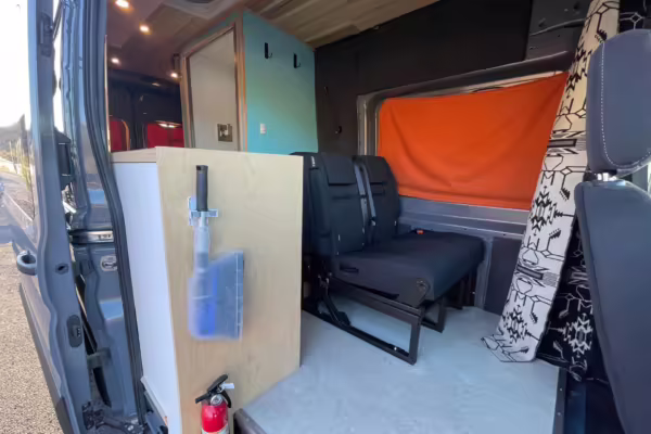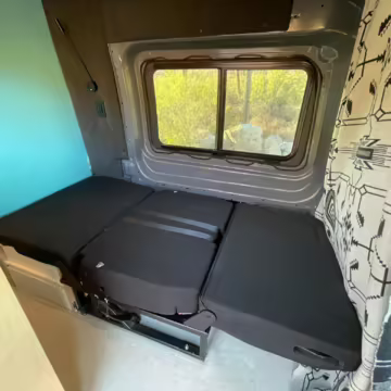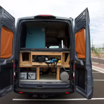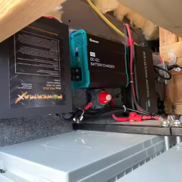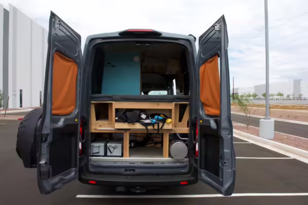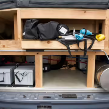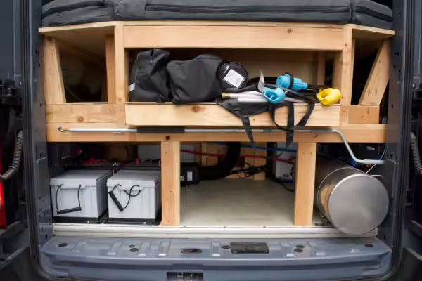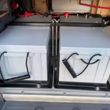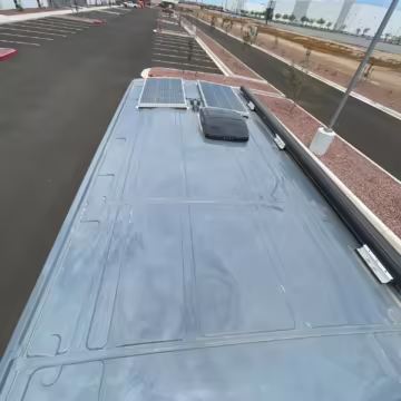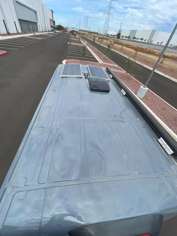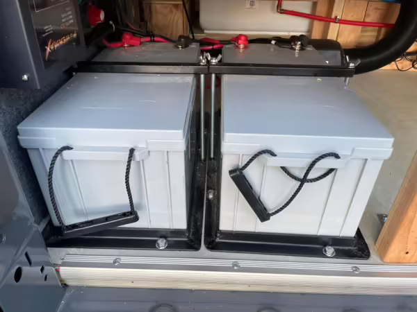 2 100-watt solar panels and 2 200 amp-hour batteries located in the rear of the van