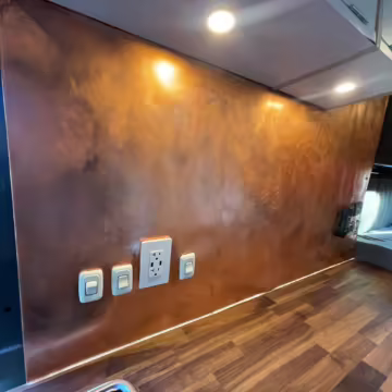 Copper backsplash above cooktop