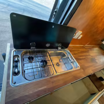 CAN Campervan two-burner propane cooktop with sink
