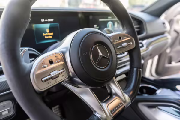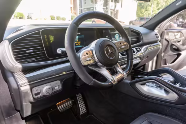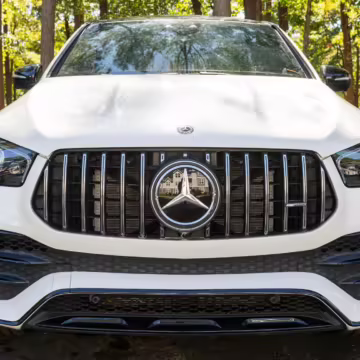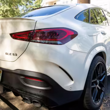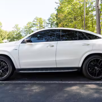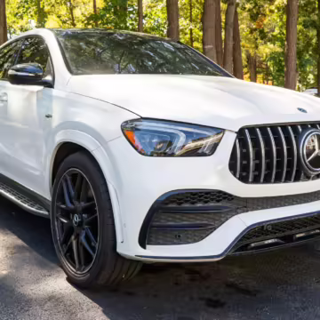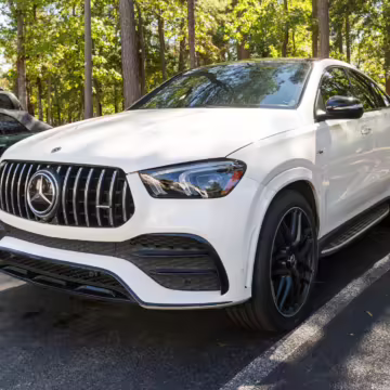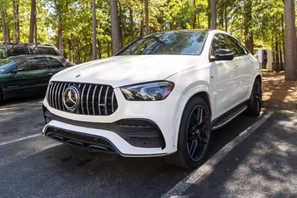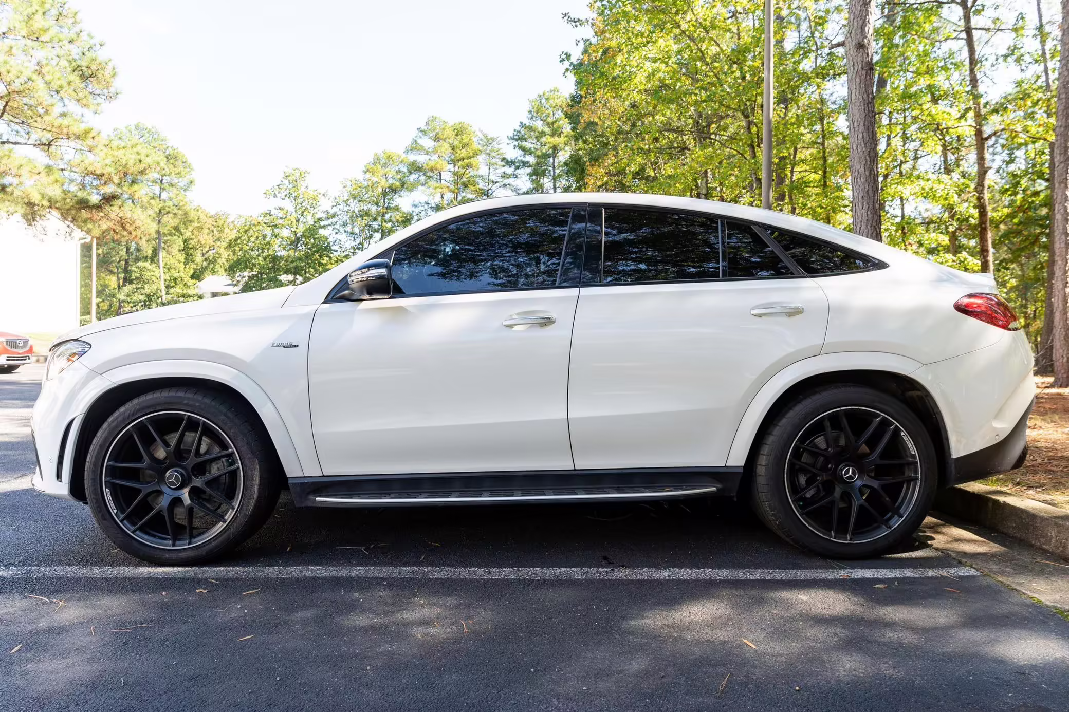2021 Mercedes-AMG GLE53 Coupe, finished in Diamond White Metallic with a black interior.