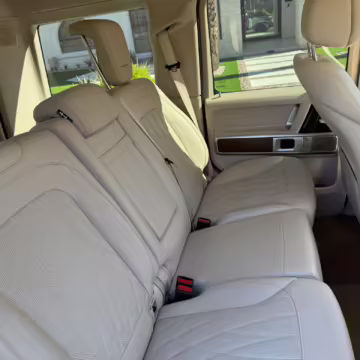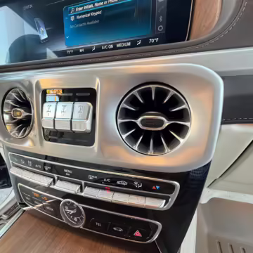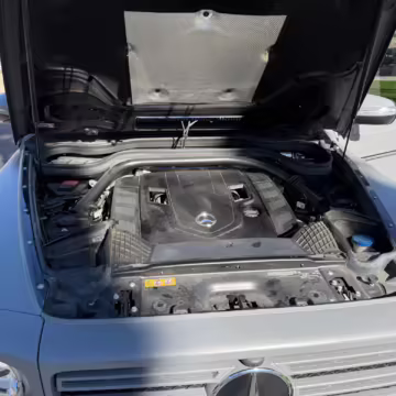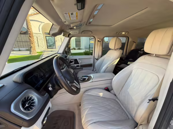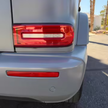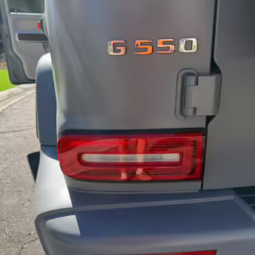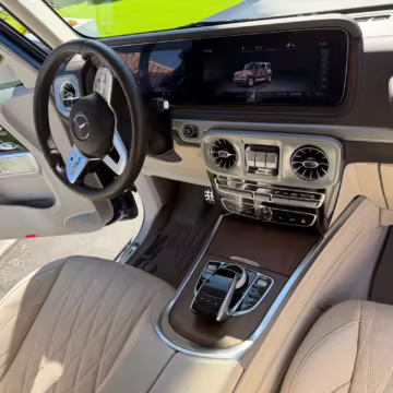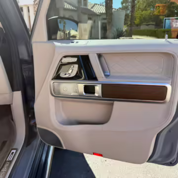 This particular G550 is powered by a potent twin-turbocharged V8 with 416 horsepower, and it touts a striking gray wrap over a Designo two-tone Nappa leather interior. It also boasts some excellent factory equipment, including the trademark triple locking differentials, adaptive dampers, heated and ventilated front seats with massage function, and a Burmester surround sound system.