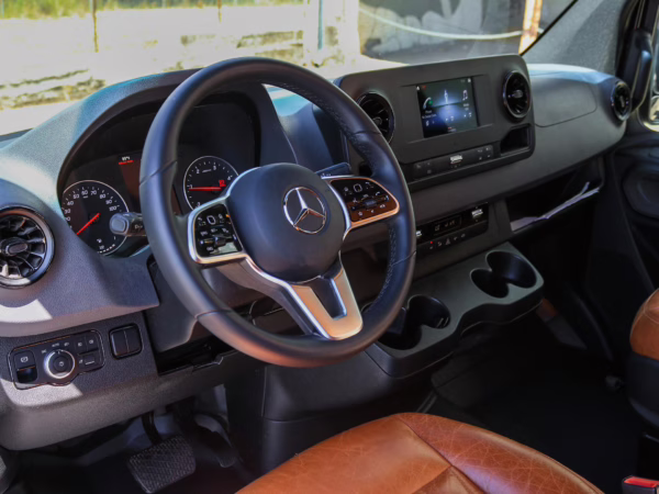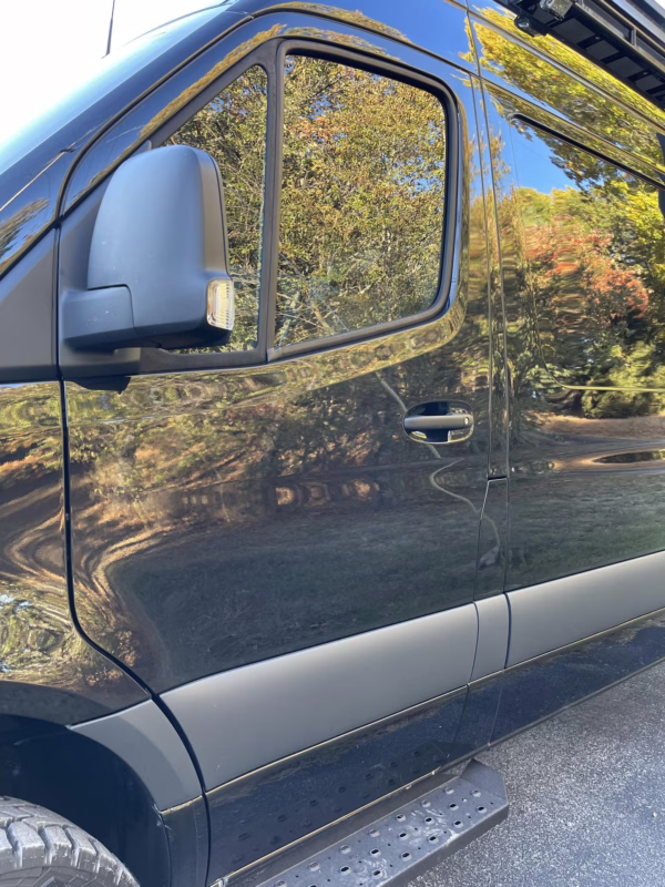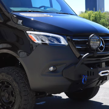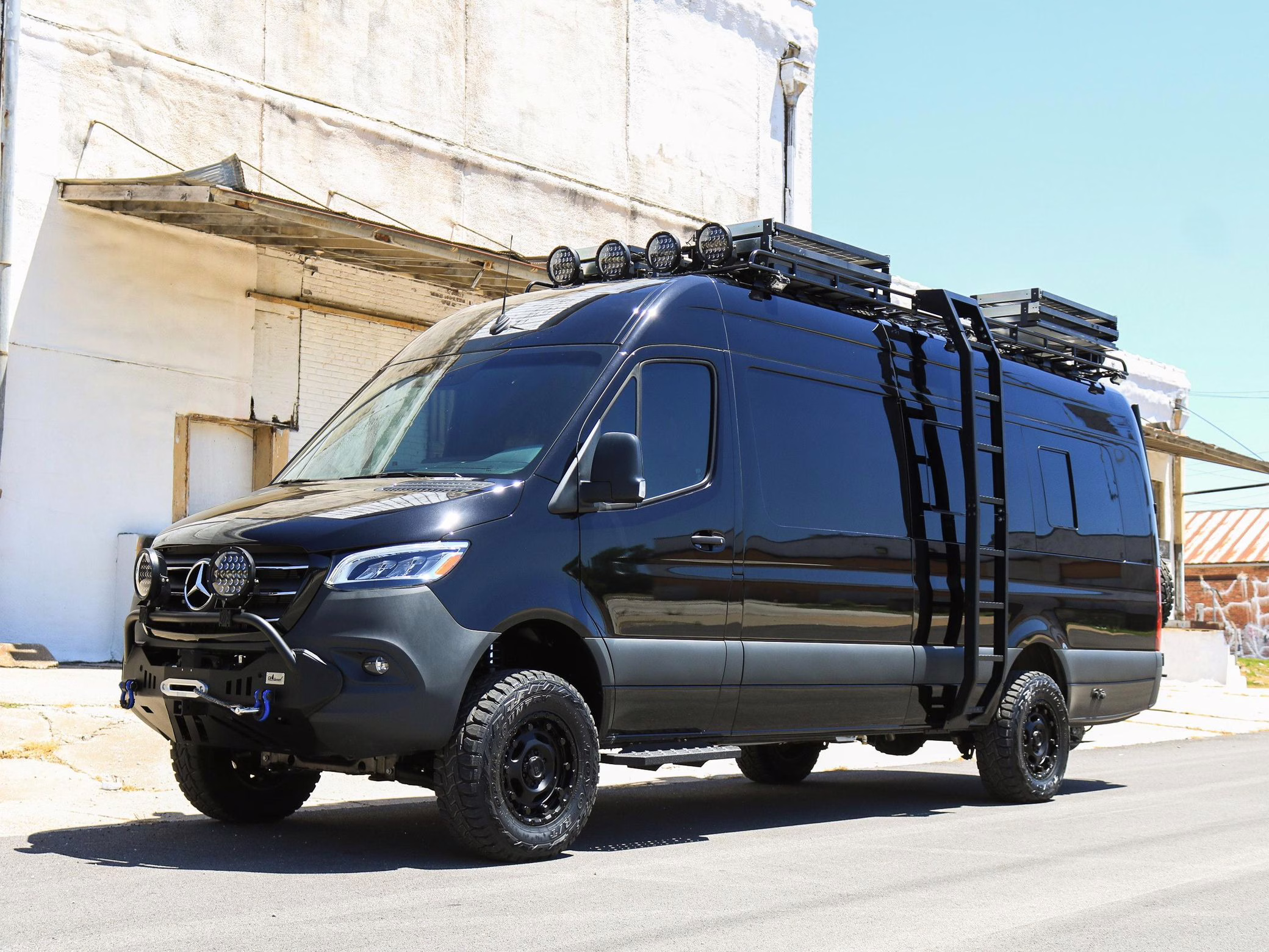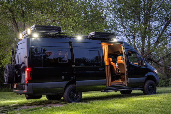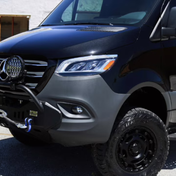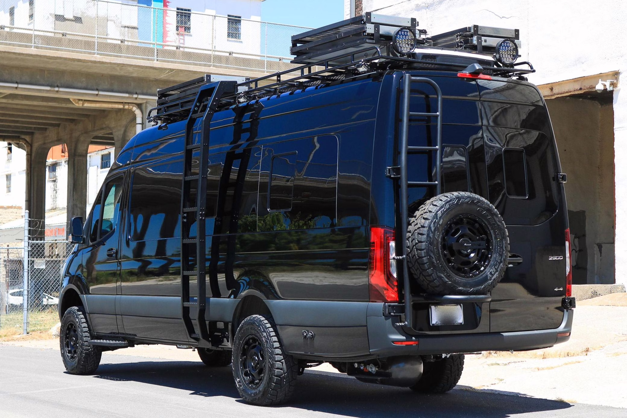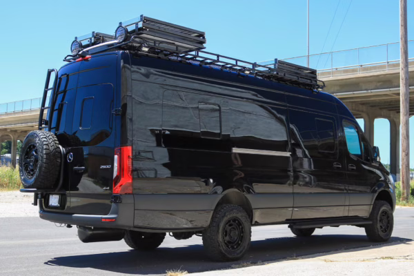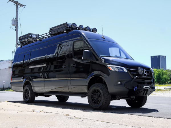 2021 Mercedes-Benz Sprinter 2500 4×4, finished in Obsidian Black Metallic with a brown interior.