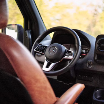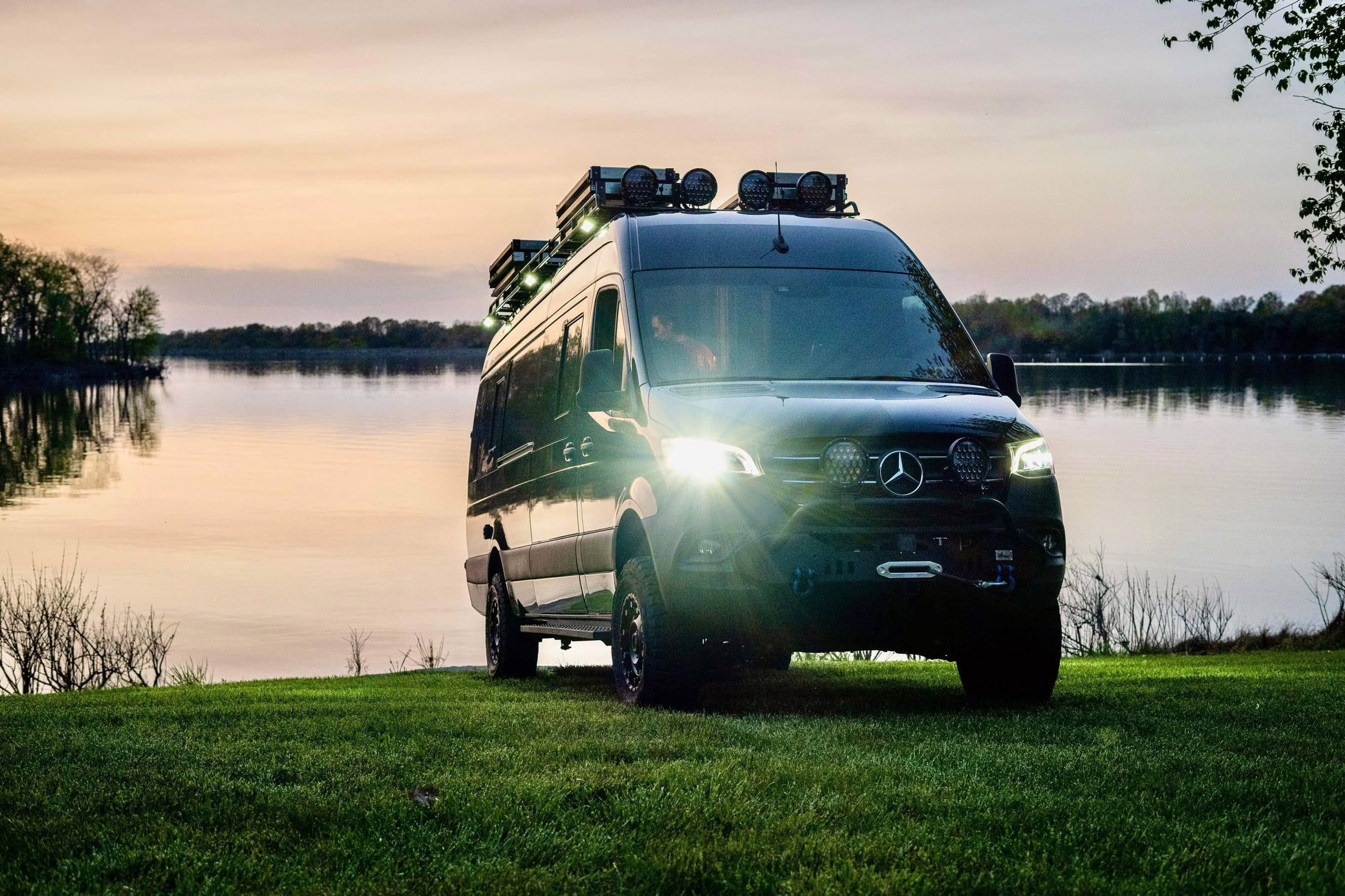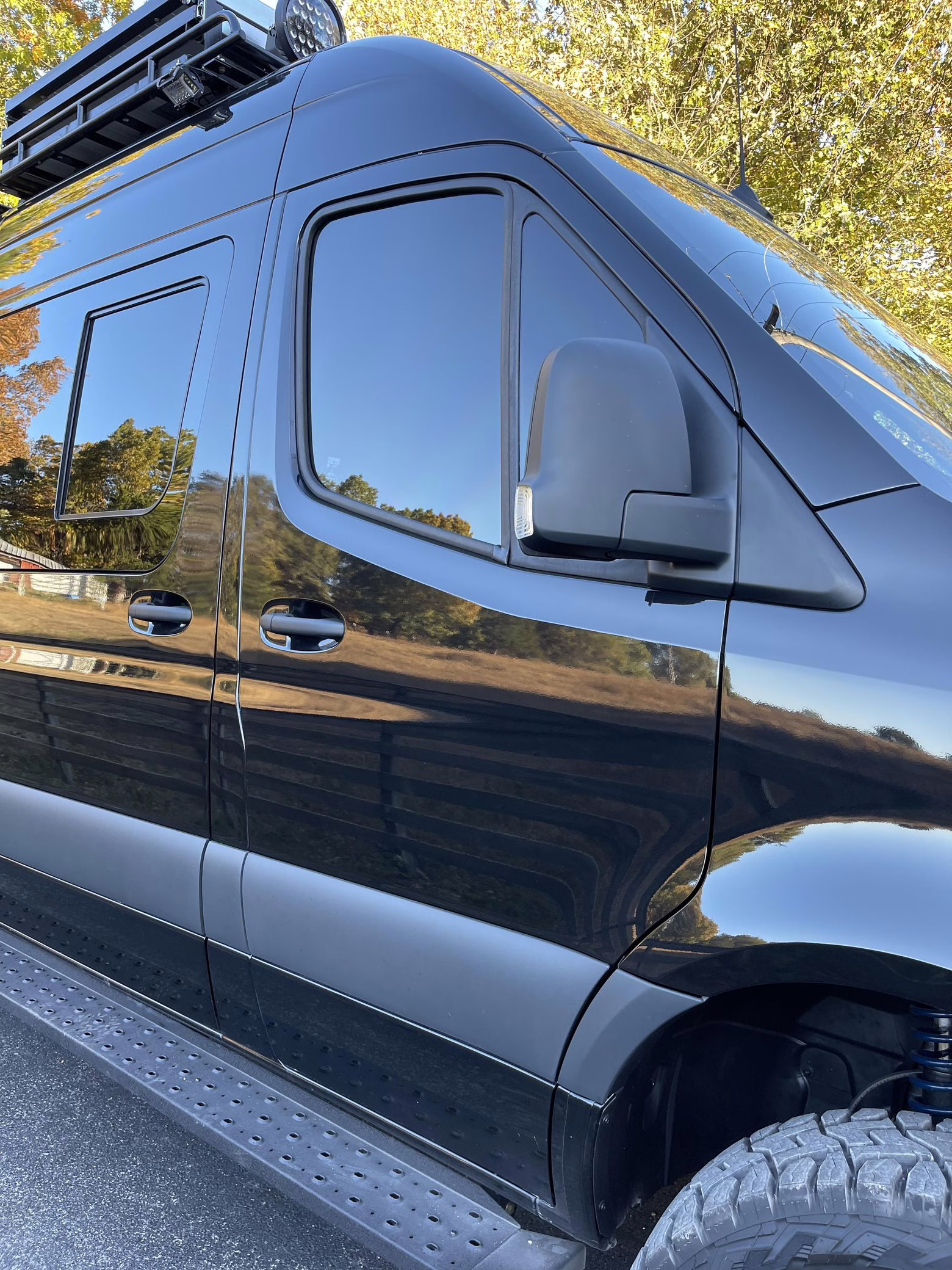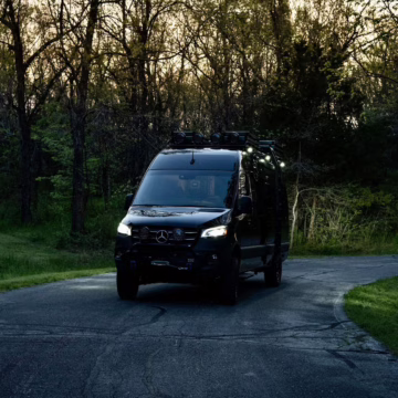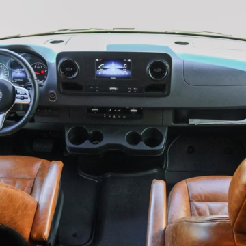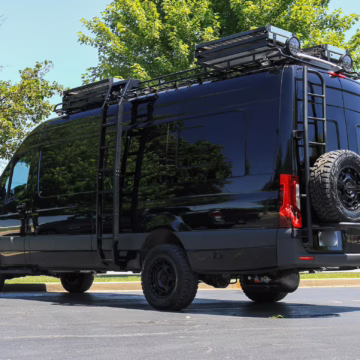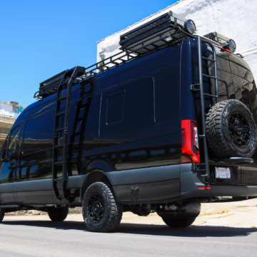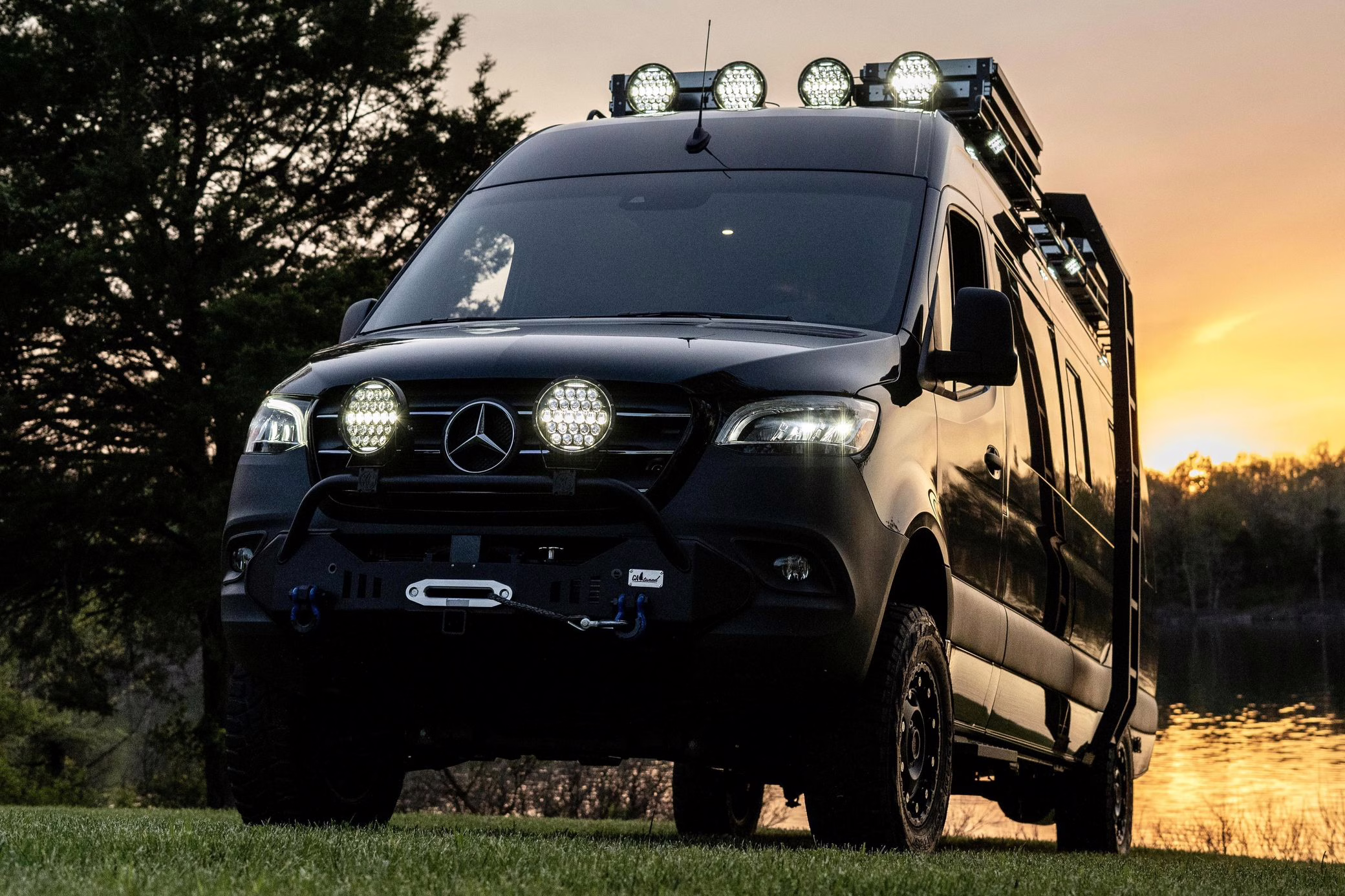 2021 Mercedes-Benz Sprinter 2500 4×4, finished in Obsidian Black Metallic with a brown interior.