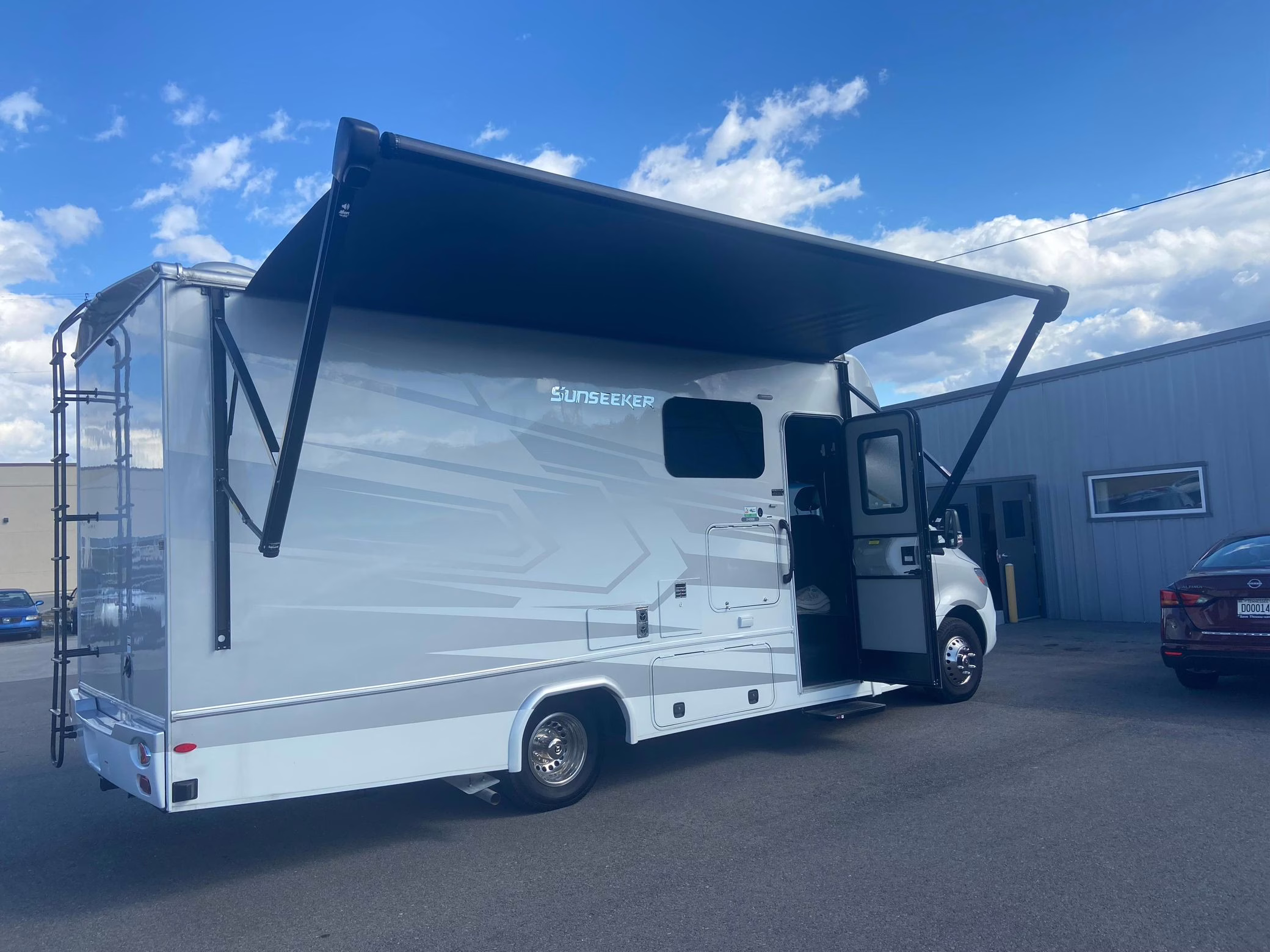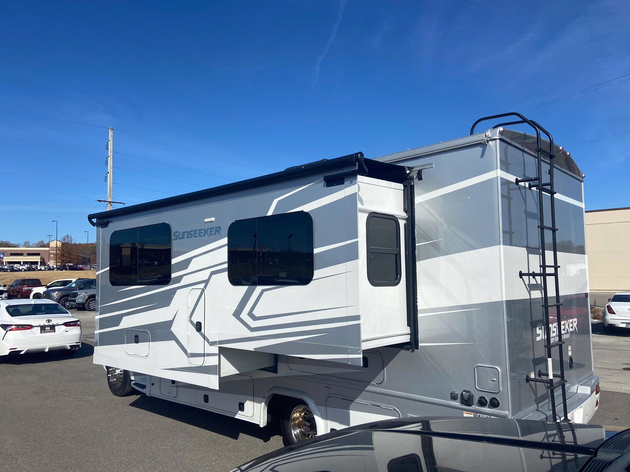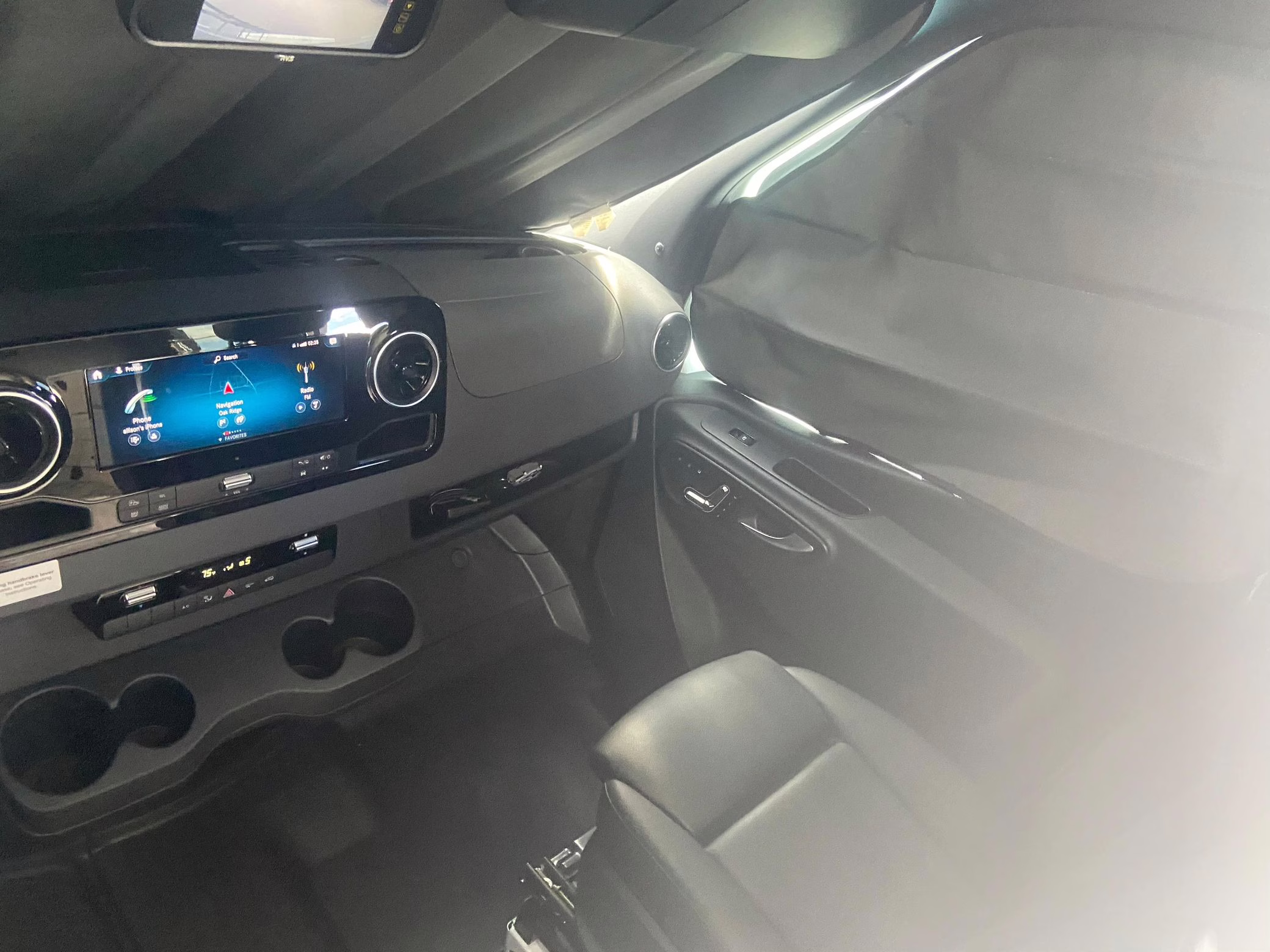 2021 Mercedes-Benz Sprinter 3500XD Sunseeker, finished in white and silver with a black and beige interior.