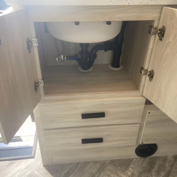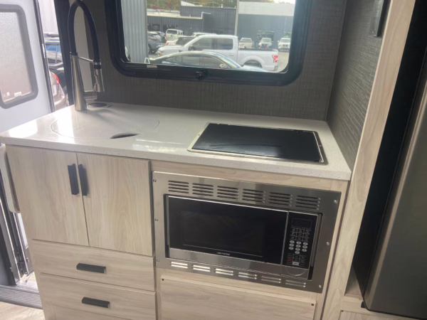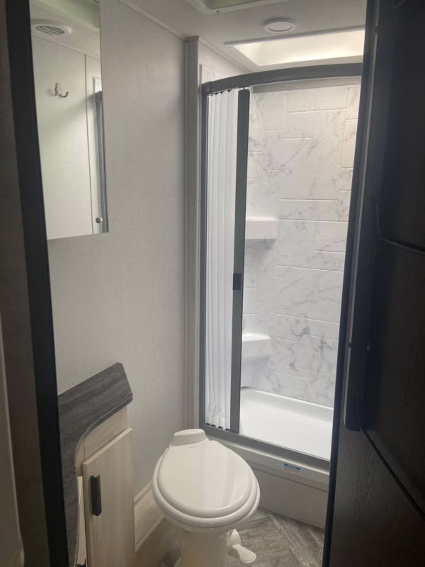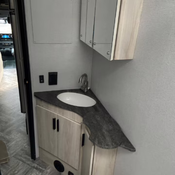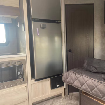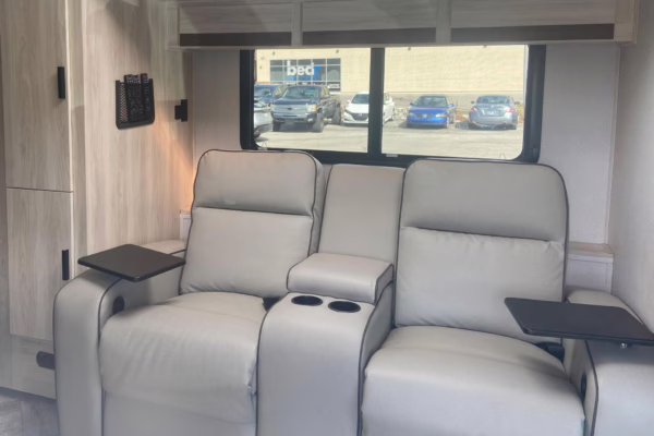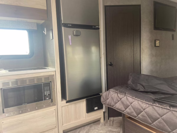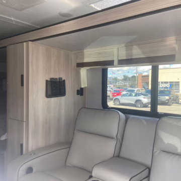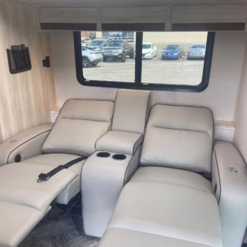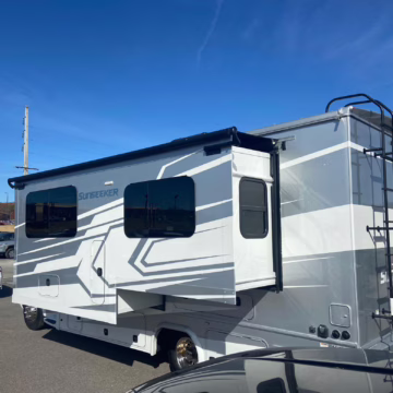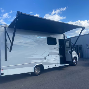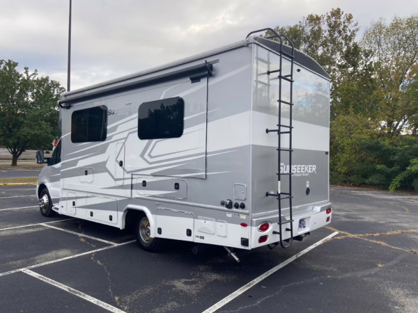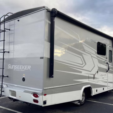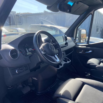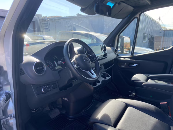 The Mercedes-Benz Sprinter is an excellent starting point for a motorhome conversion, and this one has everything you need to live on the road as you explore the country. It’s a Class C model with side-facing rear seats, a queen-size bed (!), a small kitchen, AND a bathroom – and you can travel without ever having to stop by a hotel. There are also many entertainment features, including three televisions – and driving aids like Crosswind Assist technology should make long drives more relaxing.