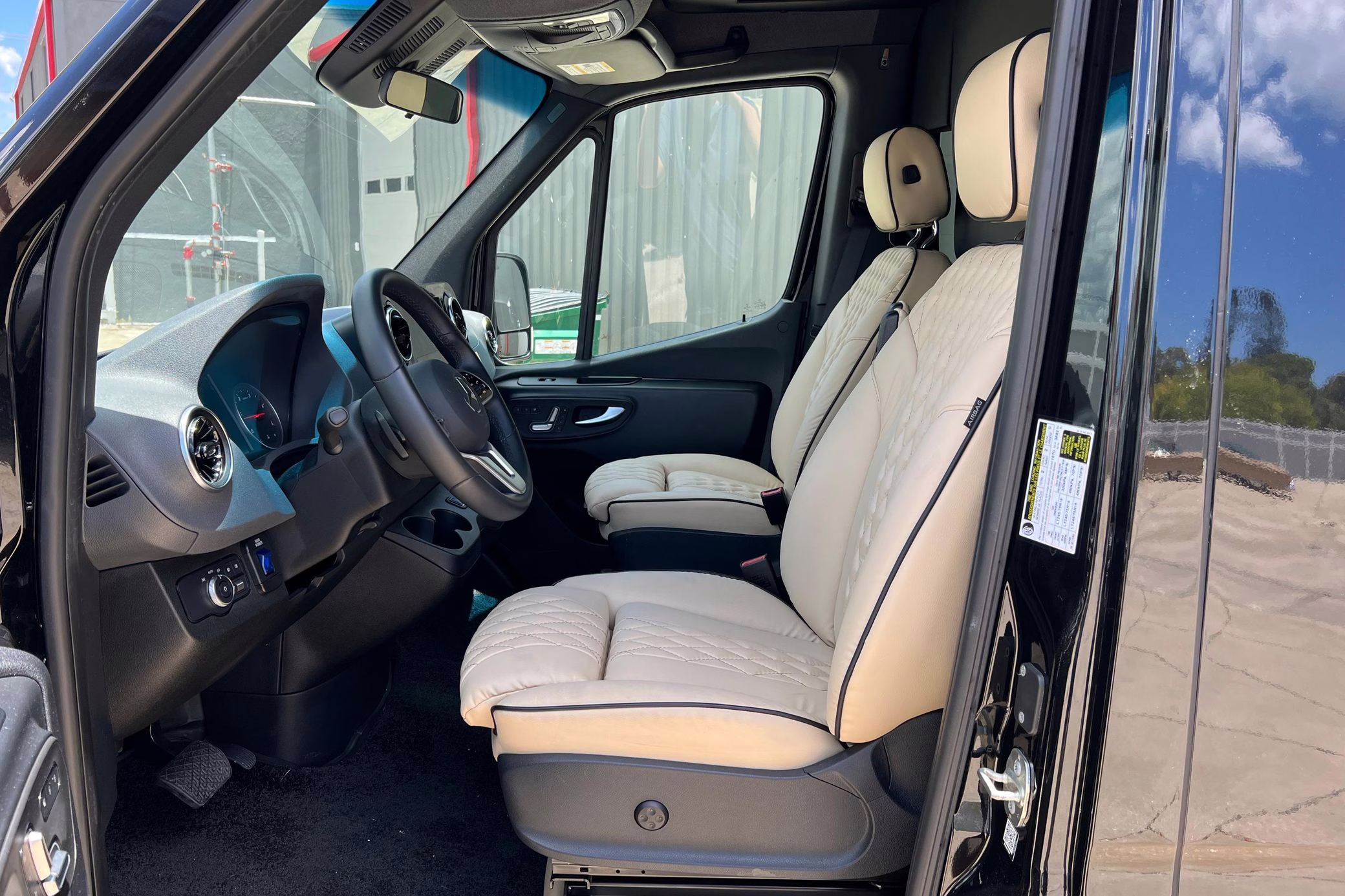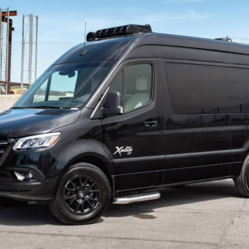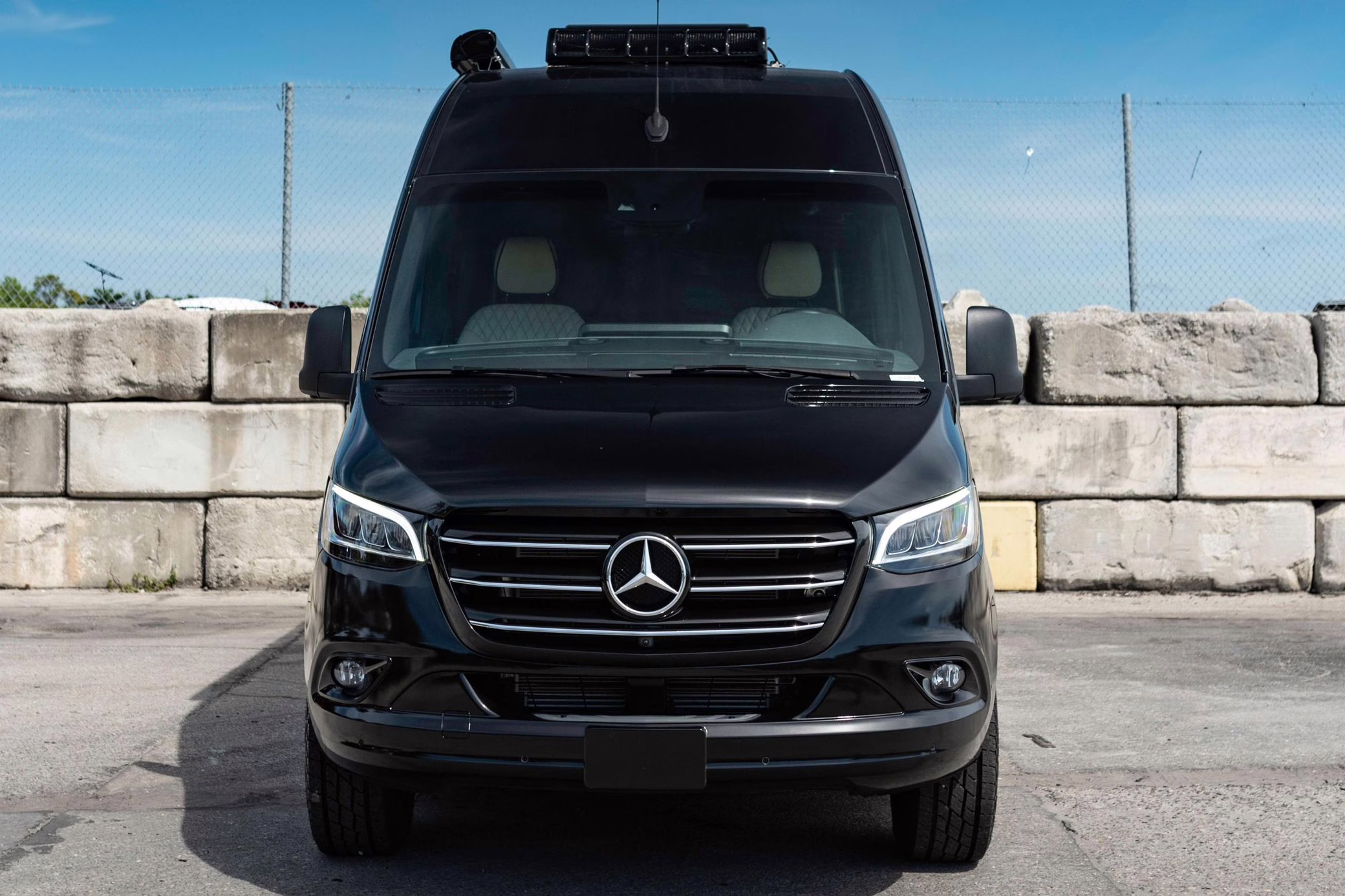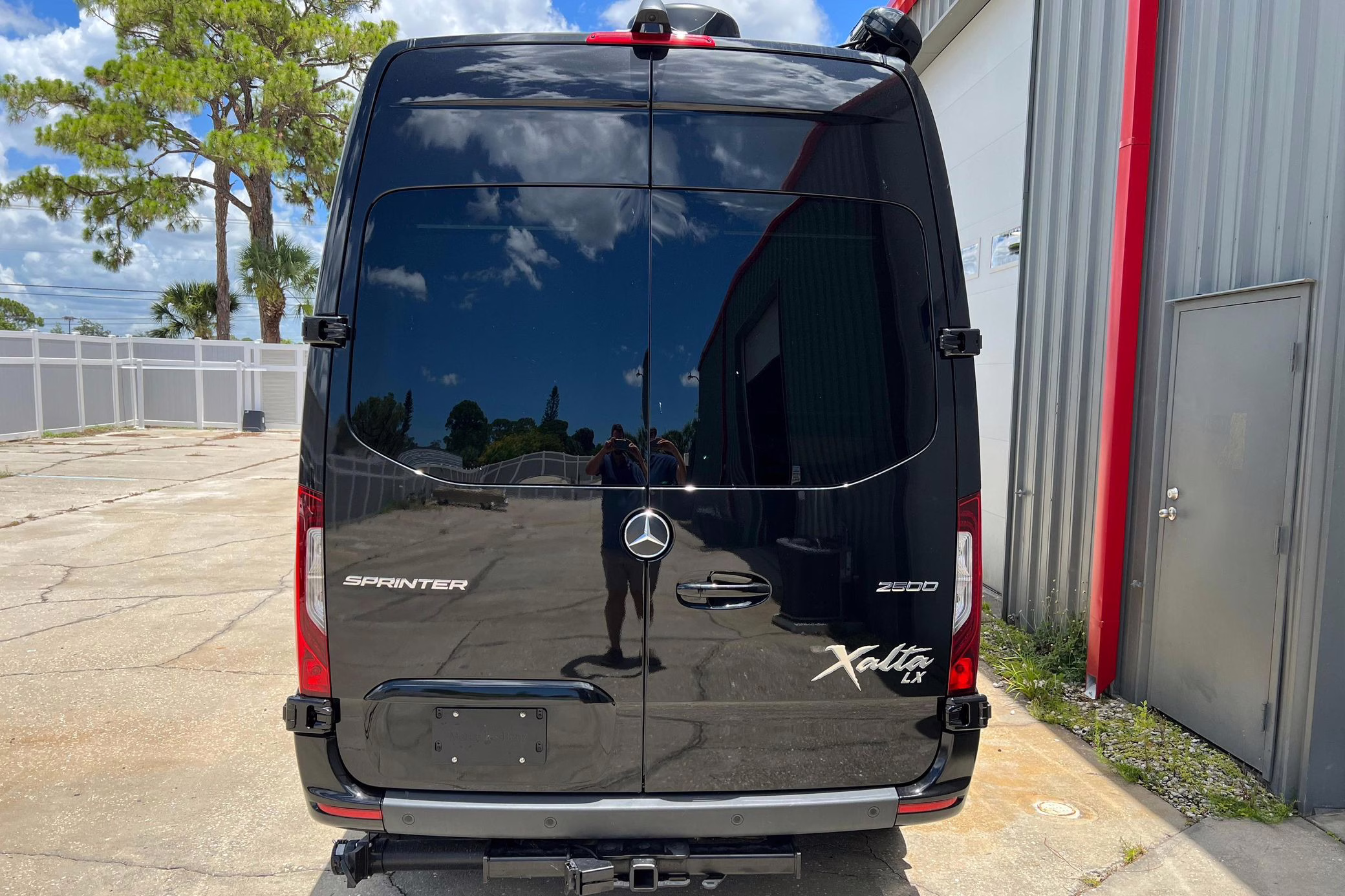 2022 Mercedes-Benz Sprinter 2500 Regency Xalta LX Tour, finished in black with a tan and black interior.