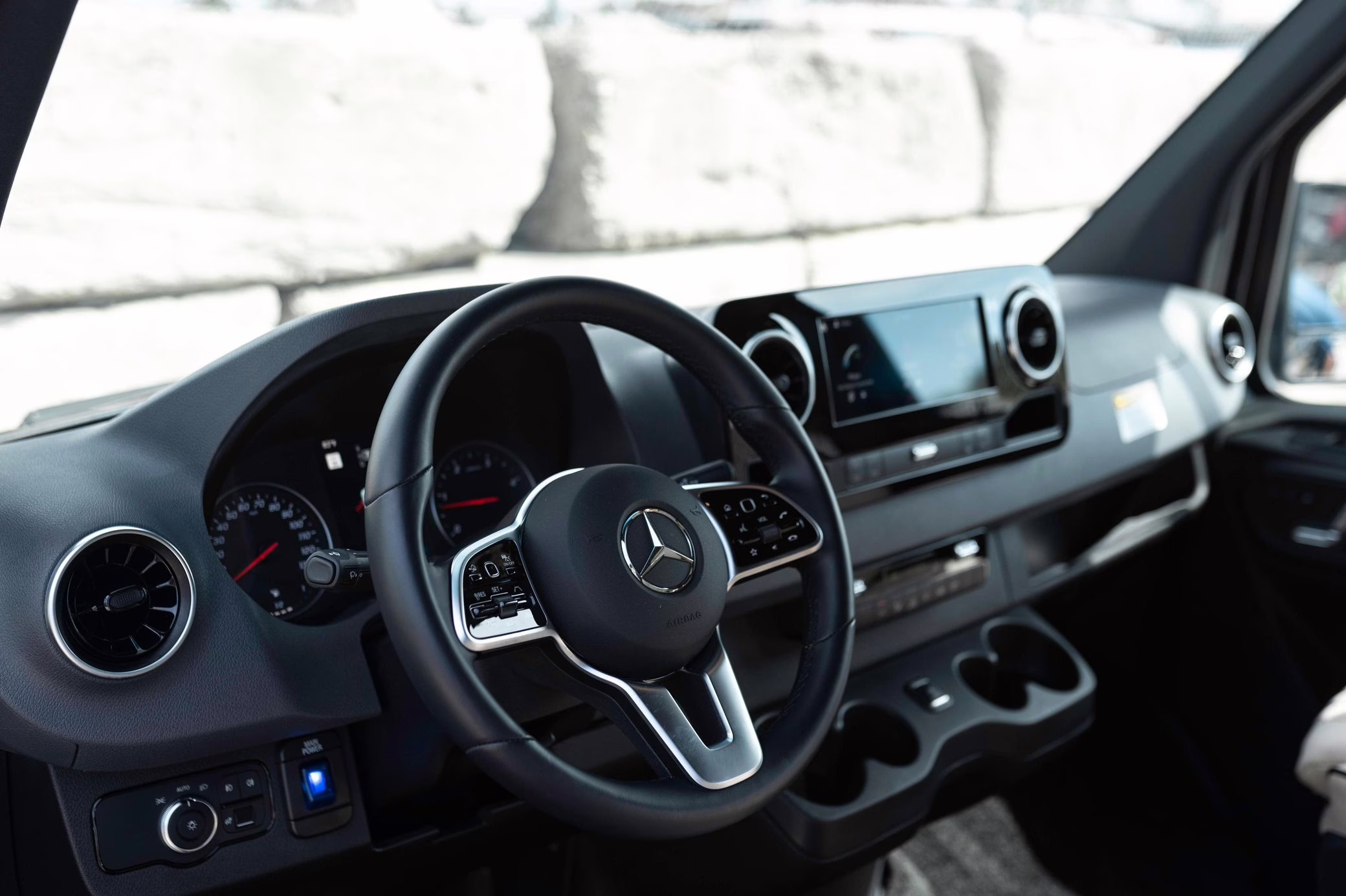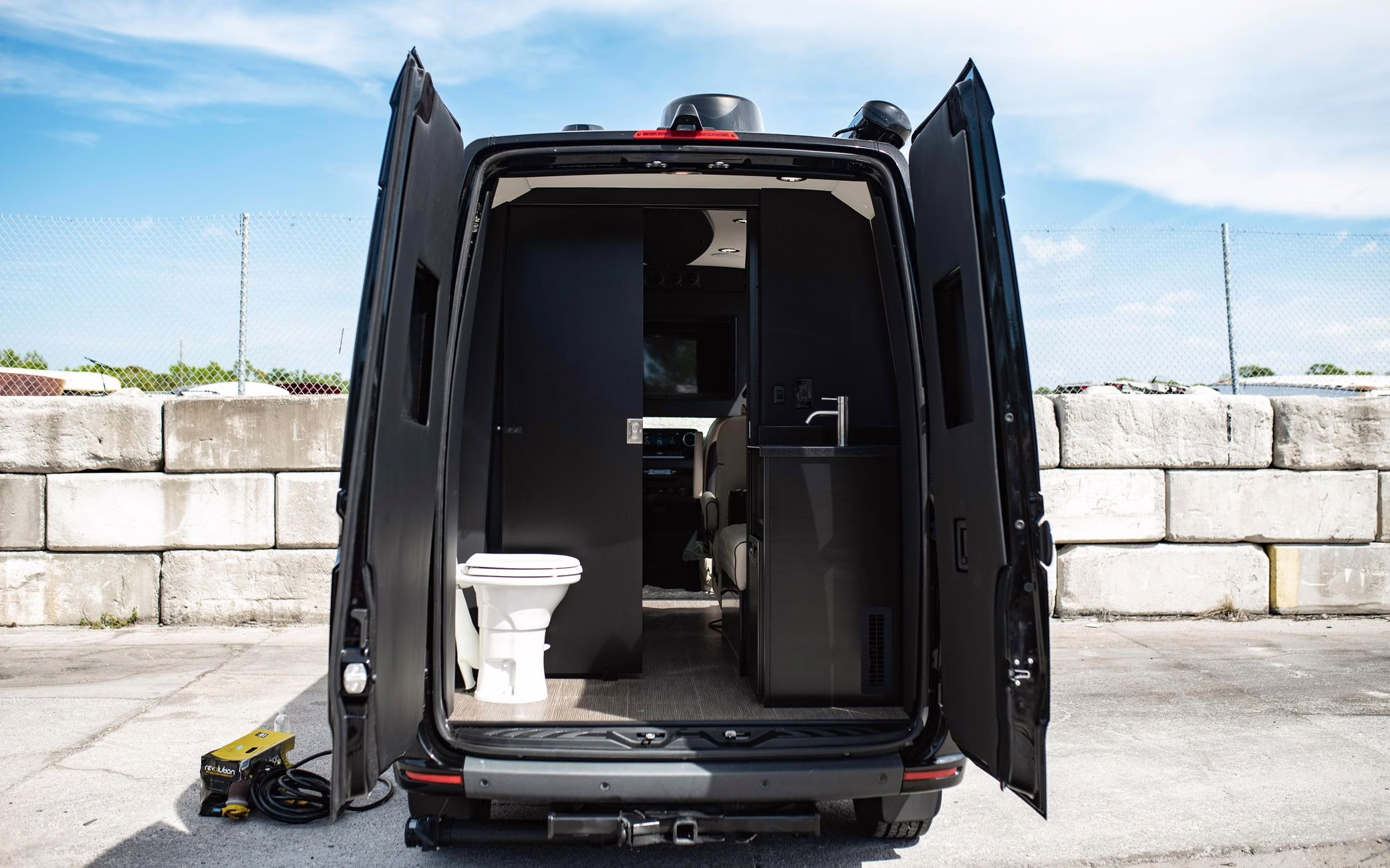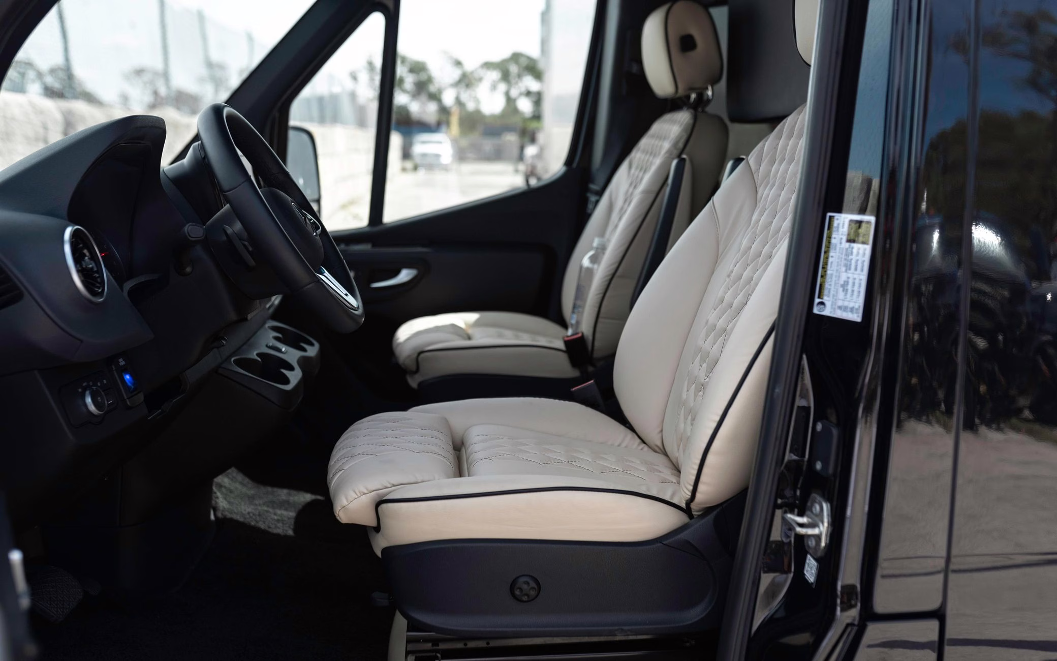 2022 Mercedes-Benz Sprinter 2500 Regency Xalta LX Tour, finished in black with a tan and black interior.