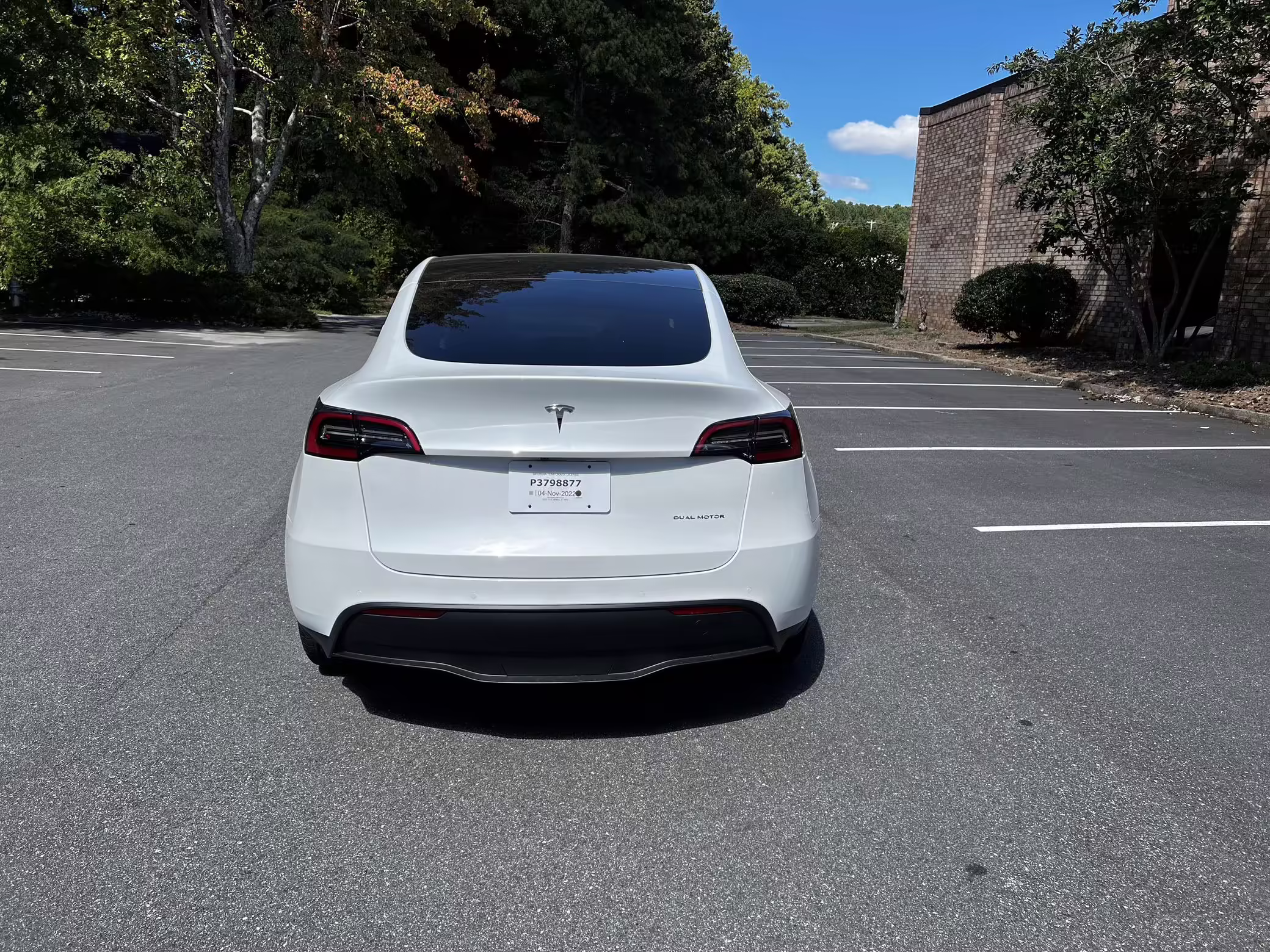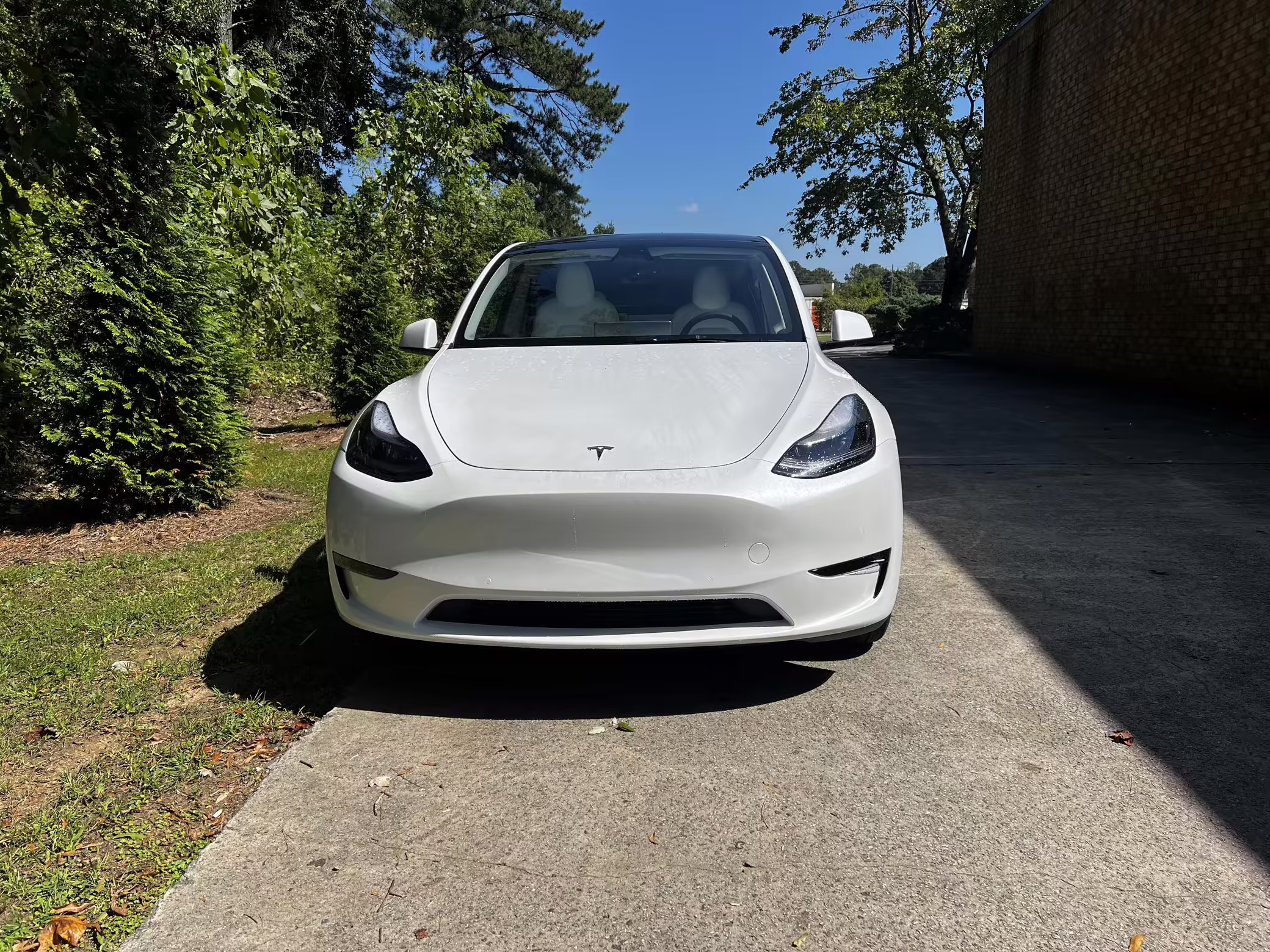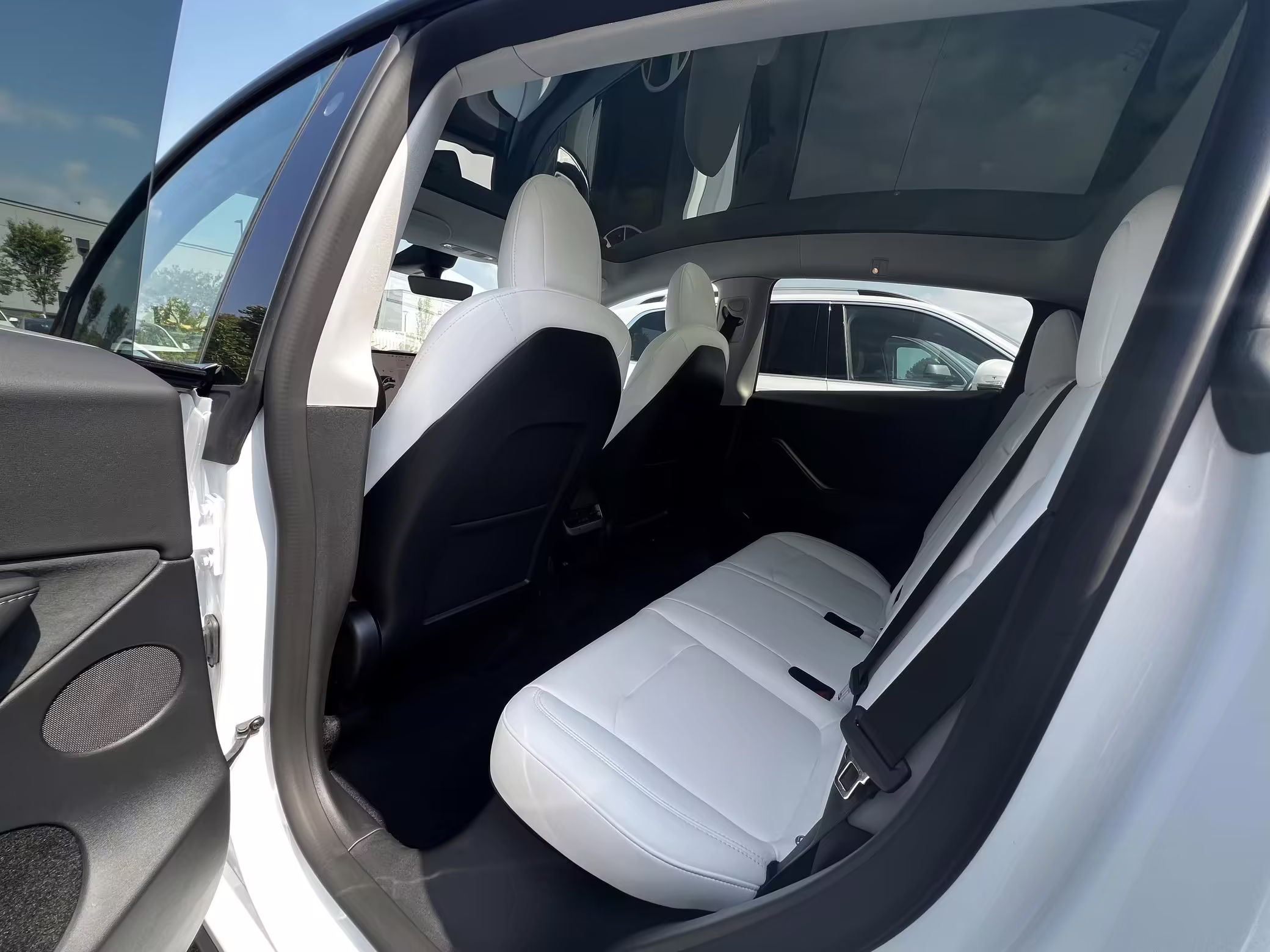 2022 Tesla Model Y Long Range AWD, finished in Pearl White with a white and black interior.